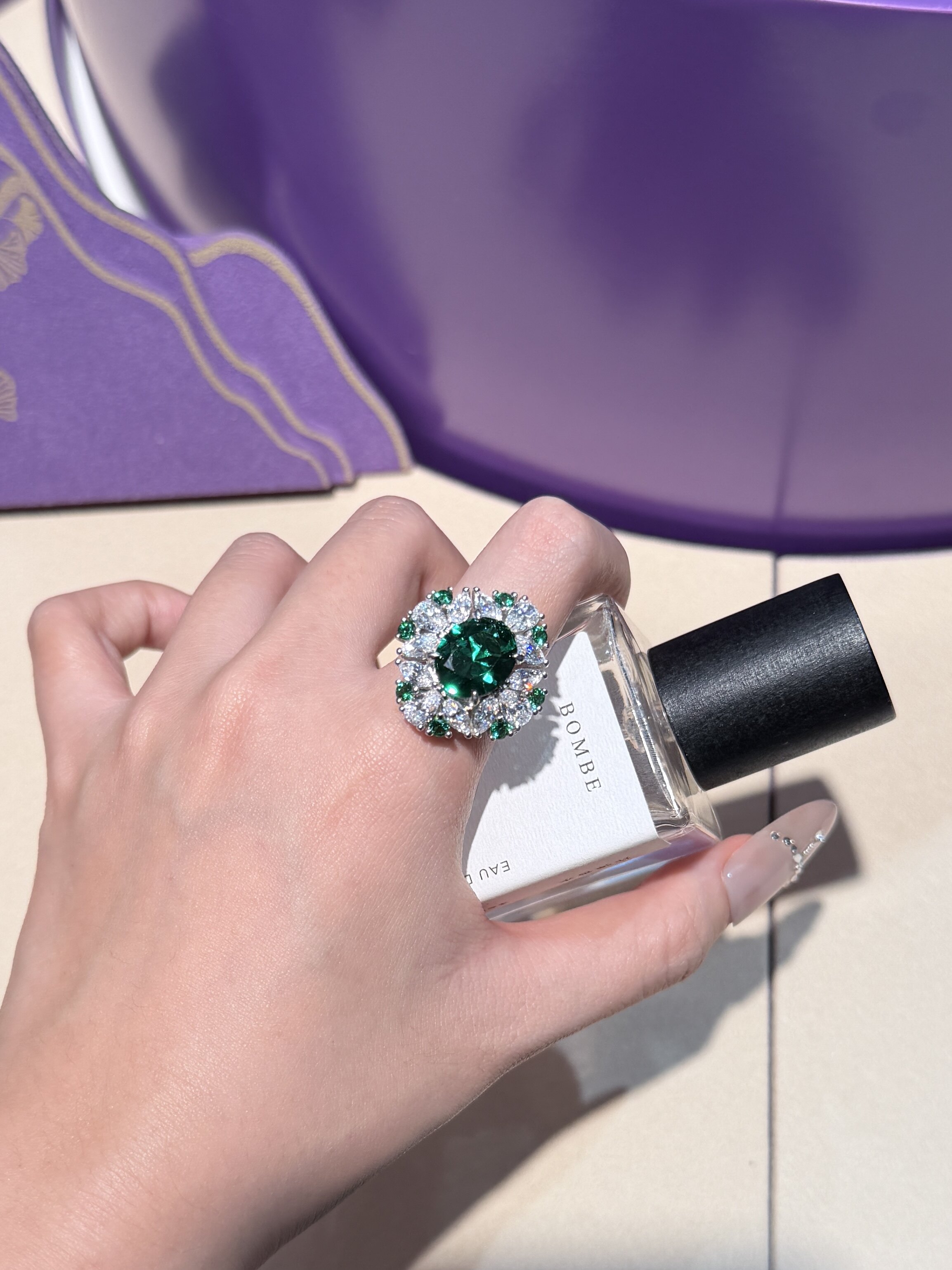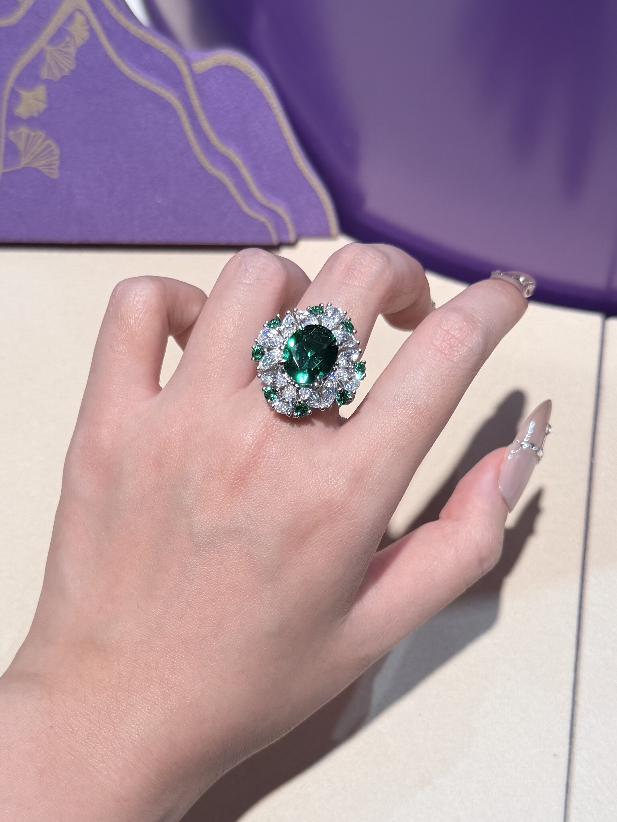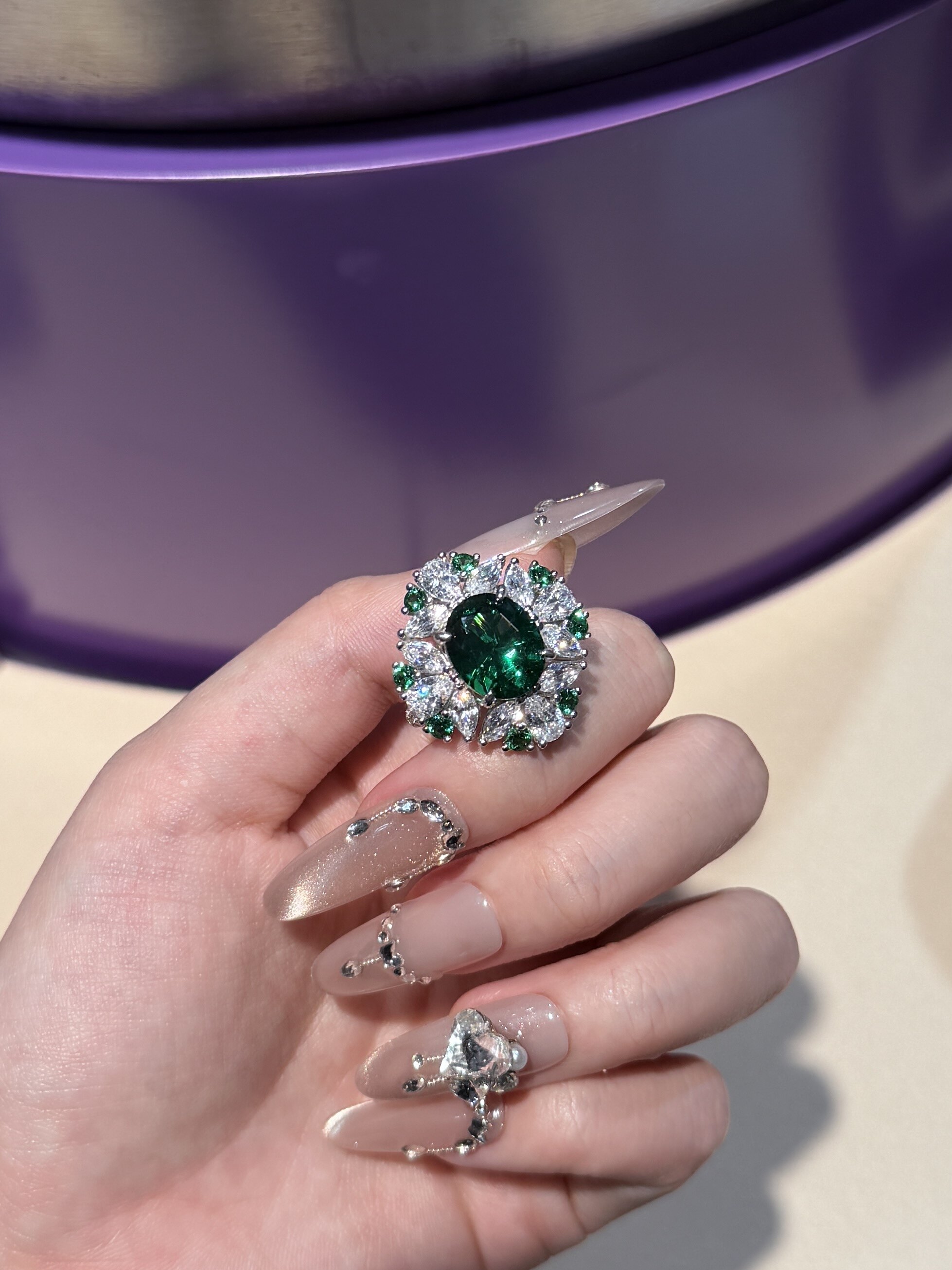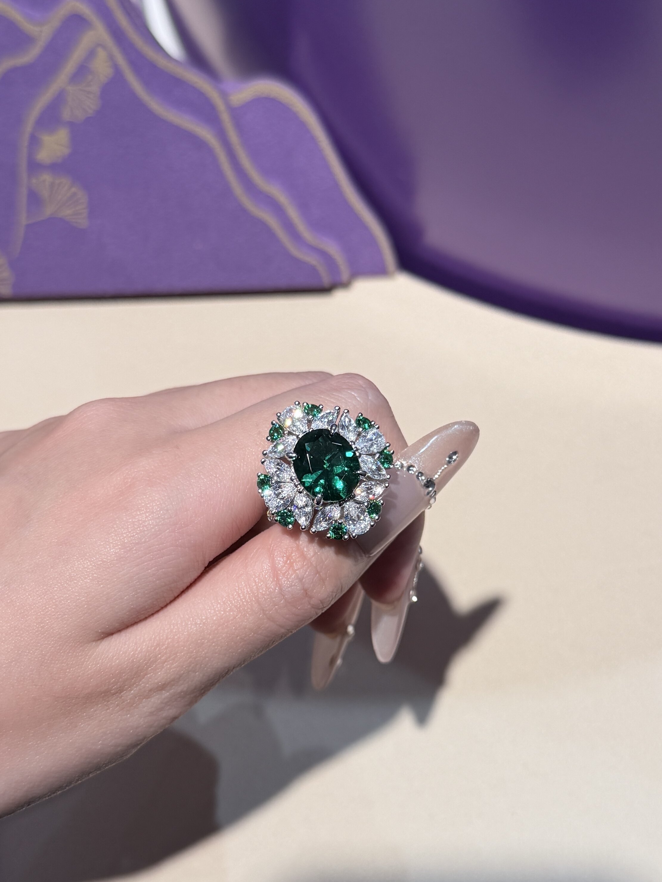 S925 Silver Needle Zircon Emerald Rhombus Ring, Elegant, Fashionable, Retro, High-End, Versatile, Super Shiny Ring