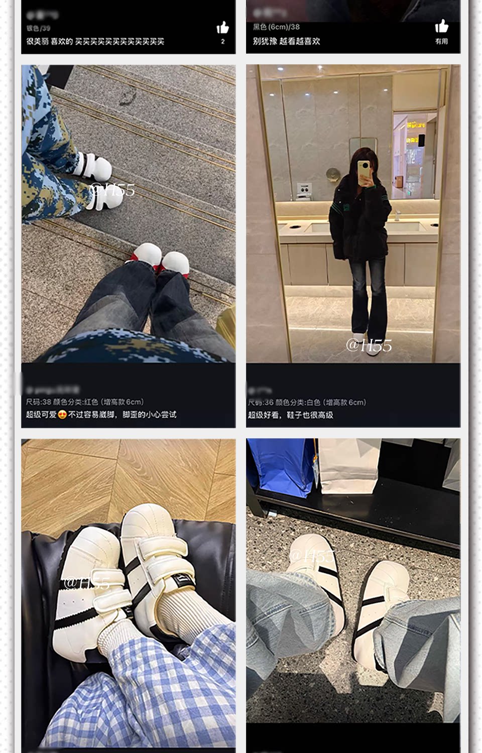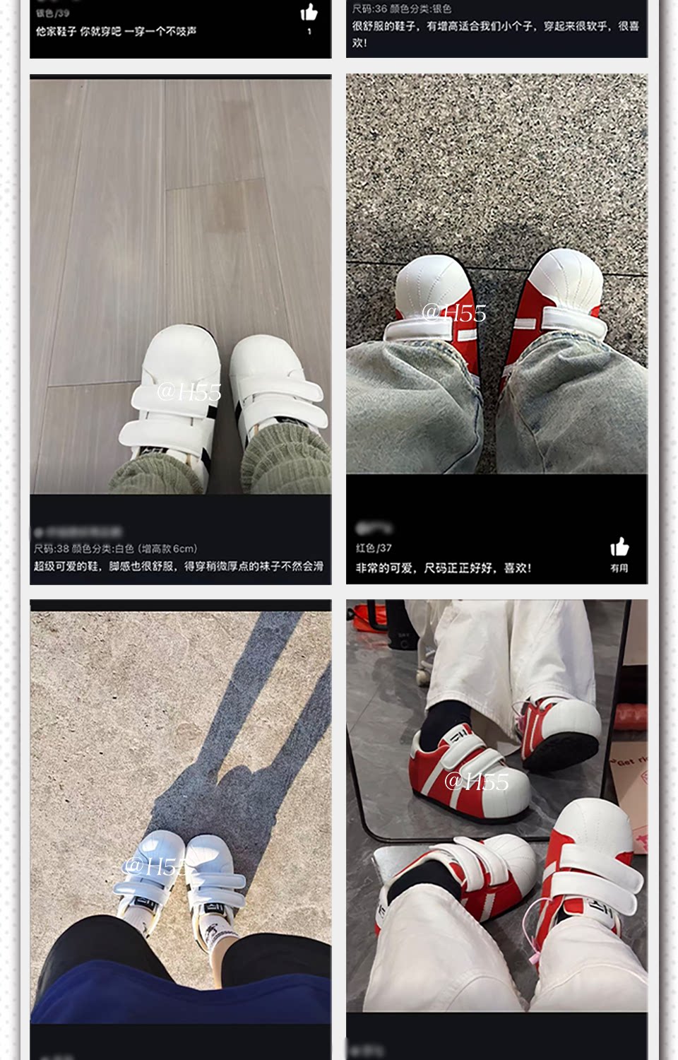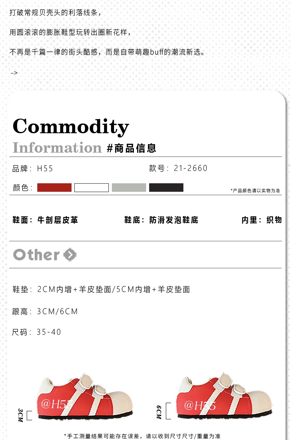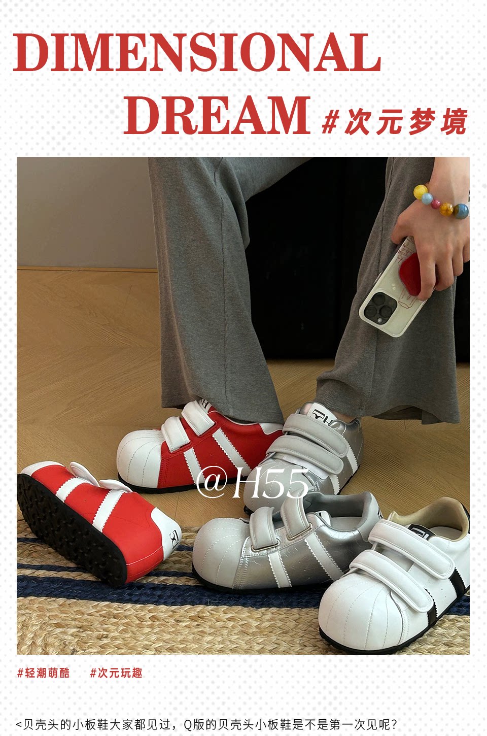 H55 Women's Shoes, Dreamy Bubble Shell Casual Cartoon Sneakers, 6cm Hidden Heel with Velcro, Platform Trendy Shoes for Women