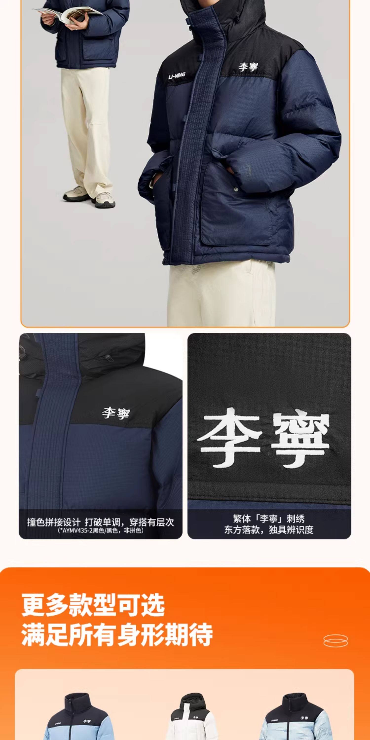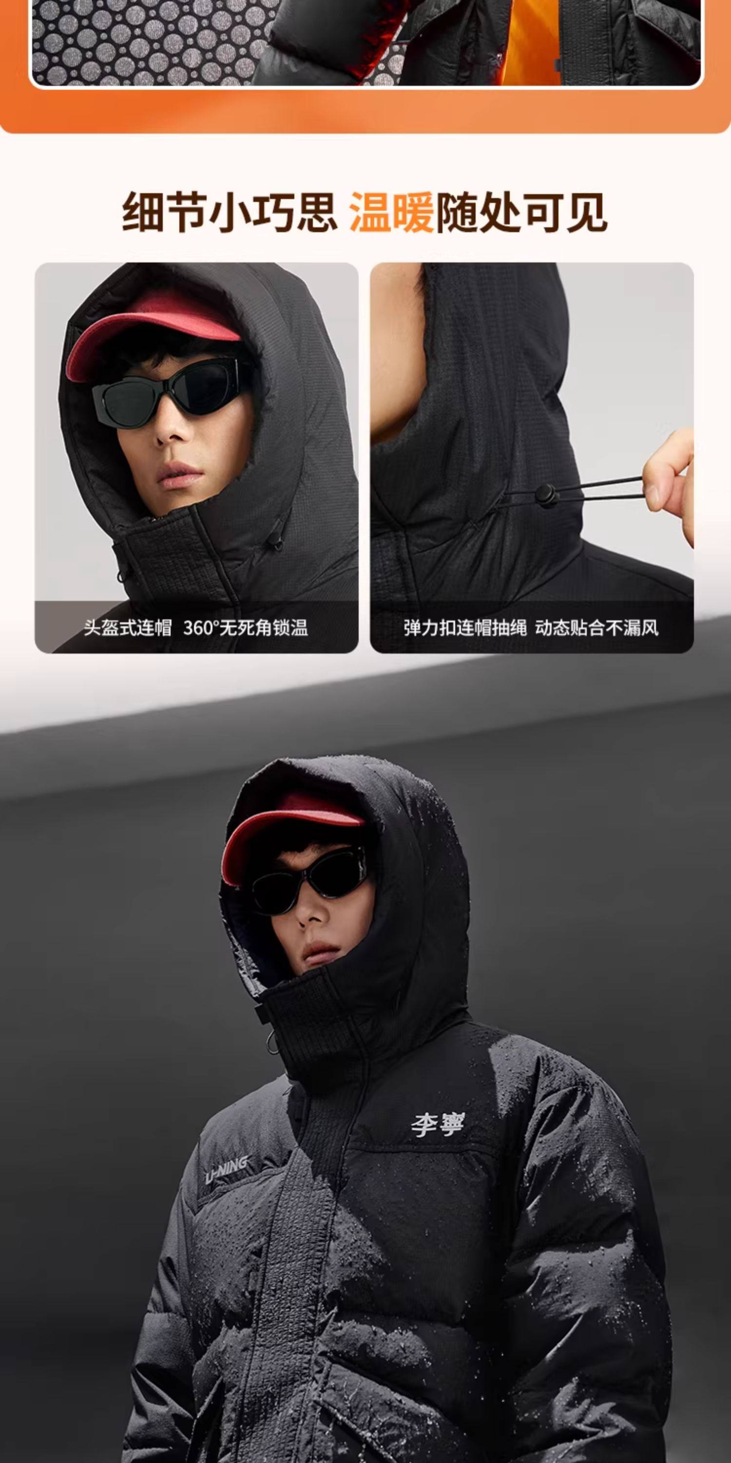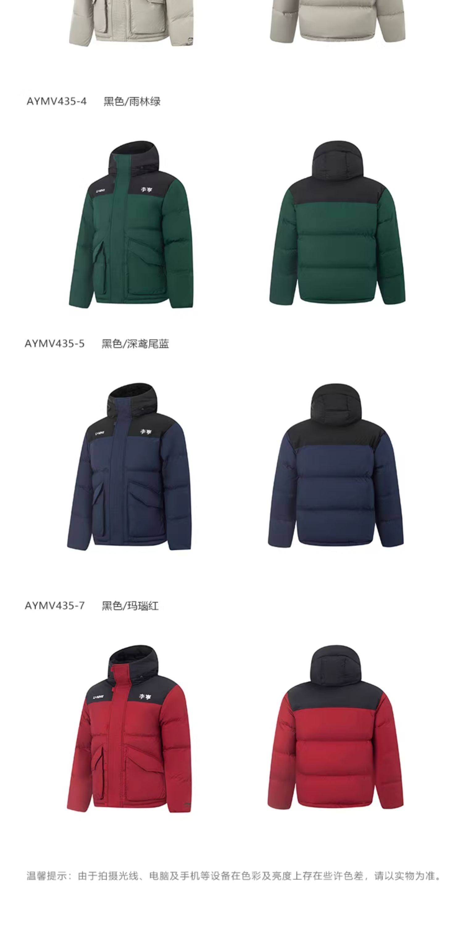Xiao Zhan Style Li-Ning Hot Pot down Jacket | Couple's Winter Parka Workwear Women's Red Warm Sports Coat Men's