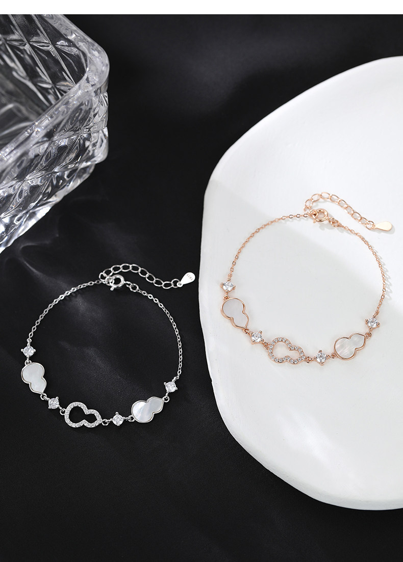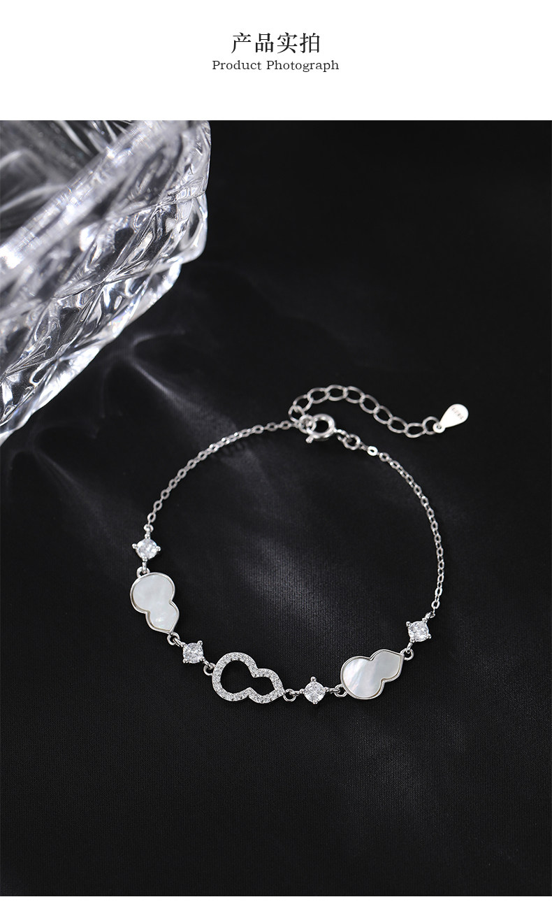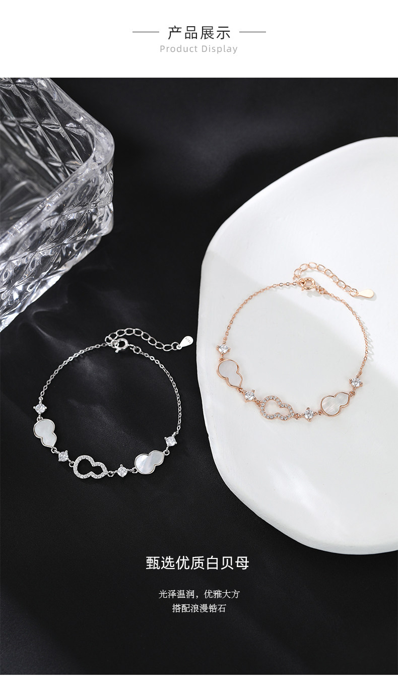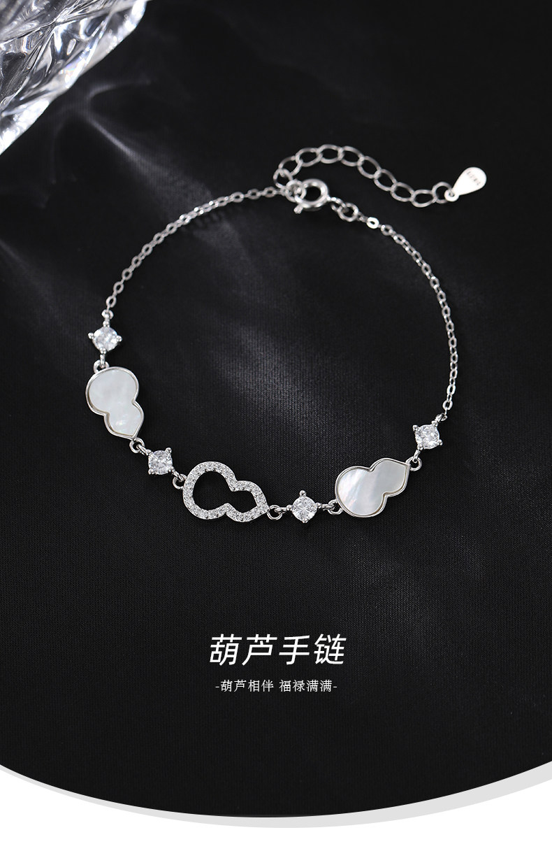 Laomiao Pure Silver White Mother-Of-Pearl Micro-Inlaid Gourd Bracelet for Women, Exquisite and Fashionable Design, New Style, Birthday Gift for Girlfriend