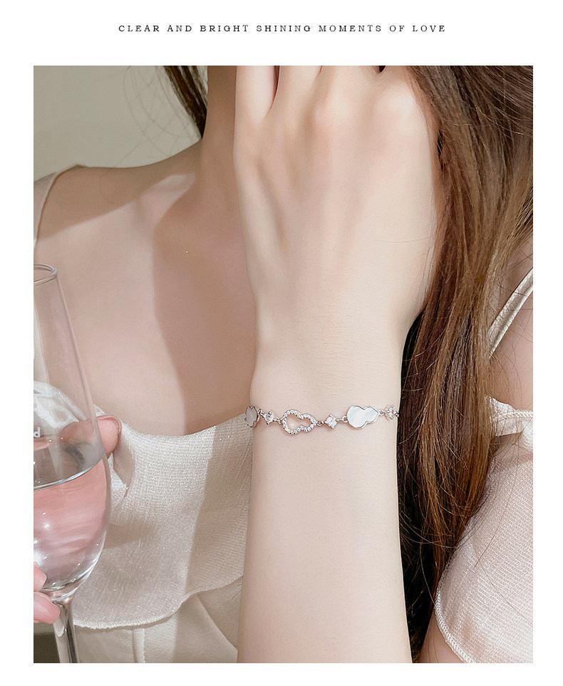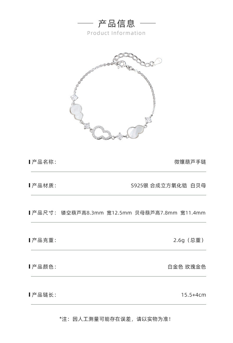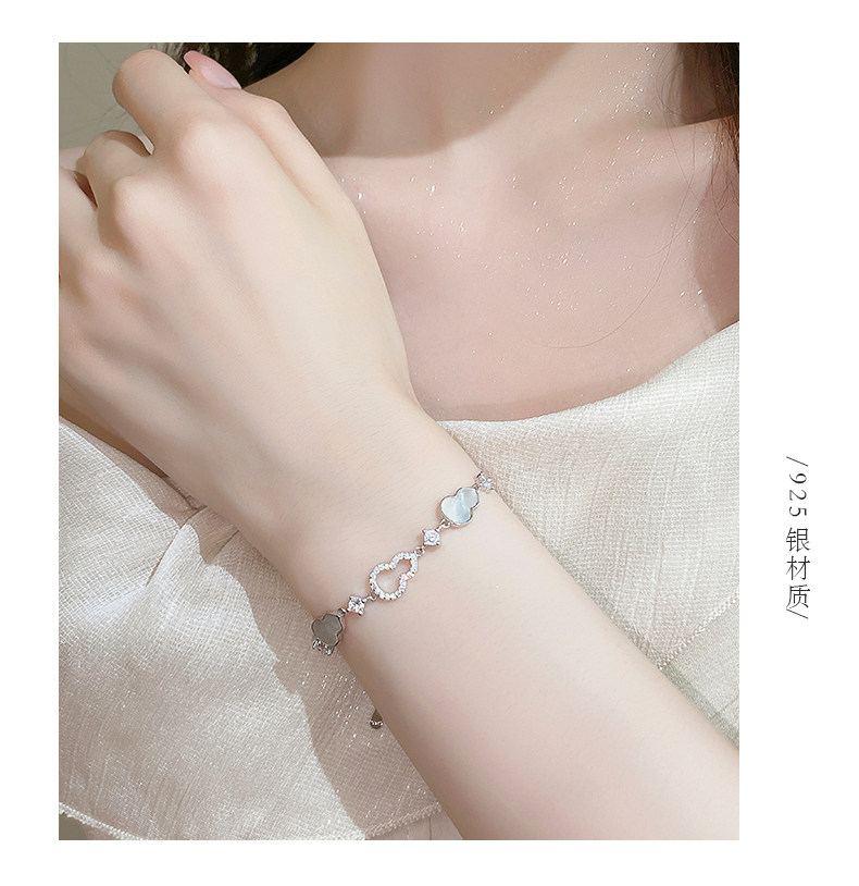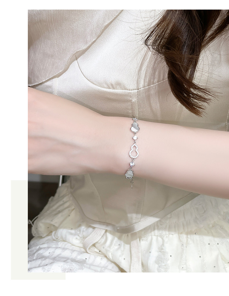 Laomiao Pure Silver White Mother-Of-Pearl Micro-Inlaid Gourd Bracelet for Women, Exquisite and Fashionable Design, New Style, Birthday Gift for Girlfriend