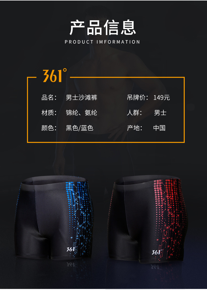 361 Men's Swim Trunks Anti-Embarrassment 2025 New Professional Quick-Dry Boxer Shorts Knee-Length Swim Trunks for Hot Springs