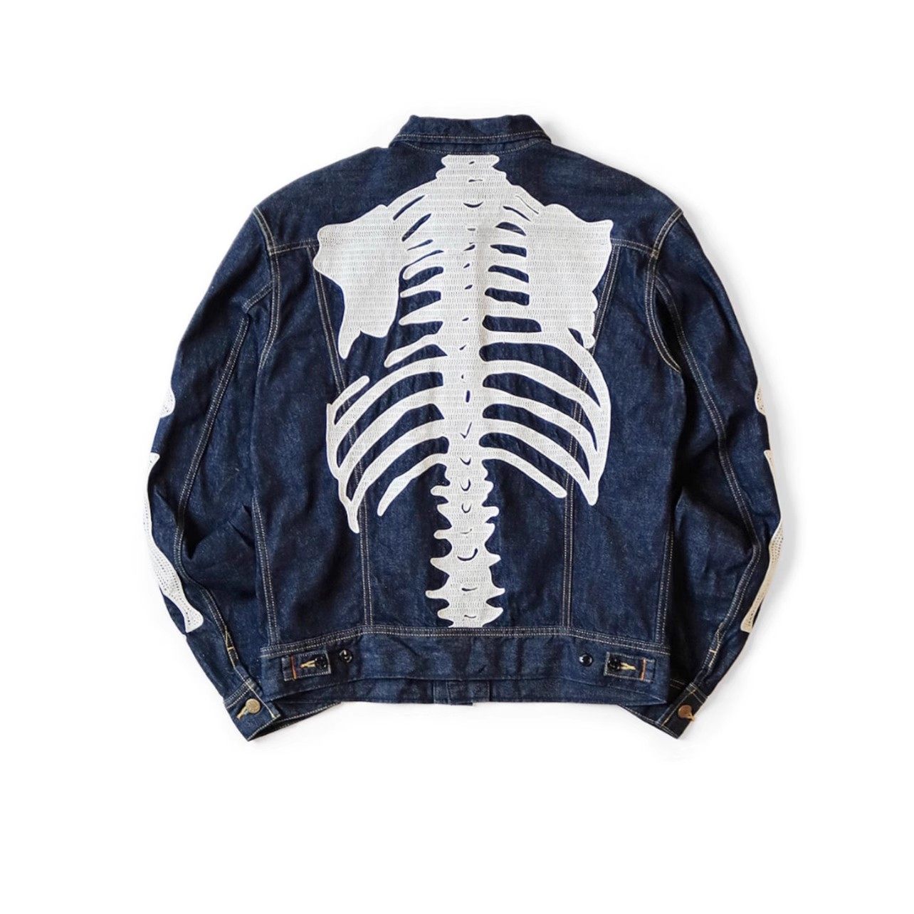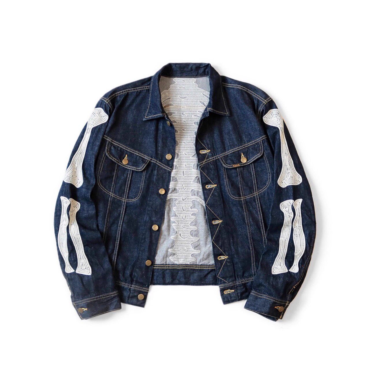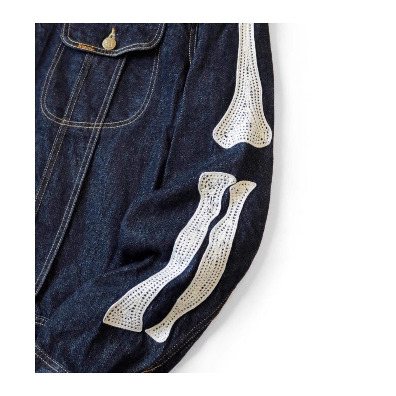 24Ss Kapital Hirata Kazuhiro Japanese Denim Lapel Bone Embroidery Loose Jacket