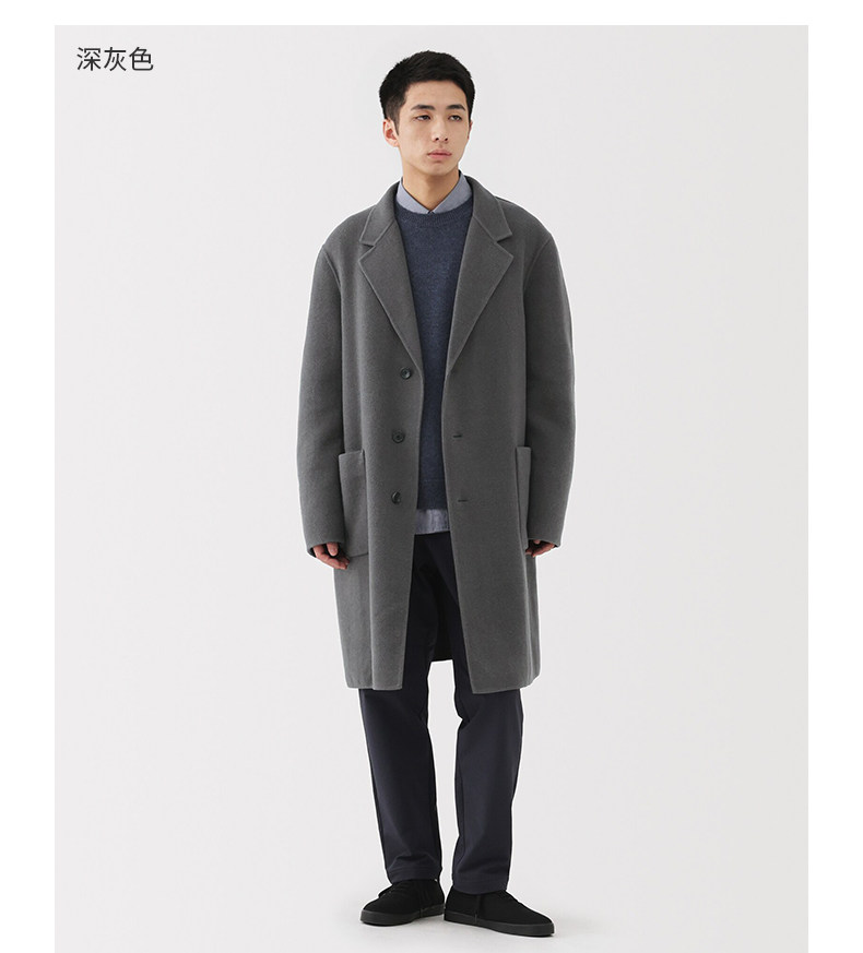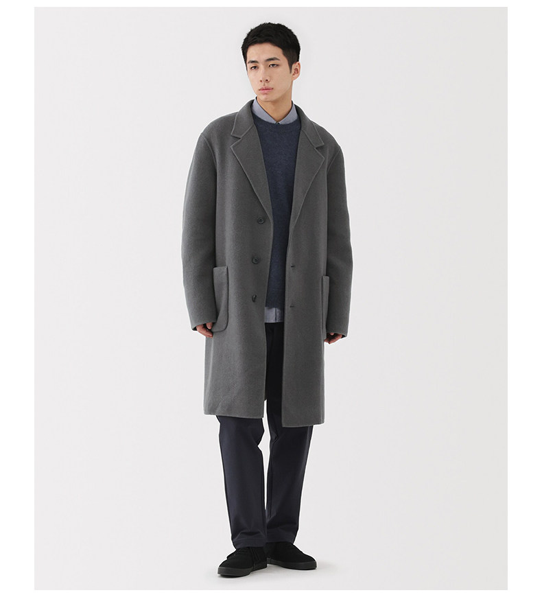 Muji Men's Wool Blend Chester Coat Men's Wool Coat Men's Outerwear Winter