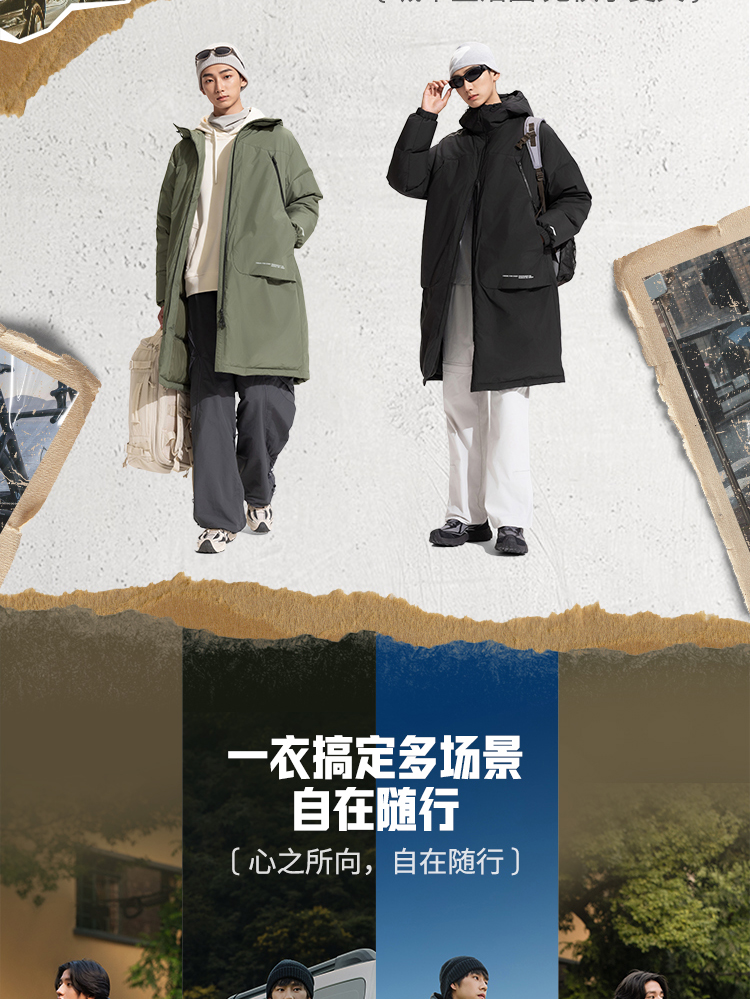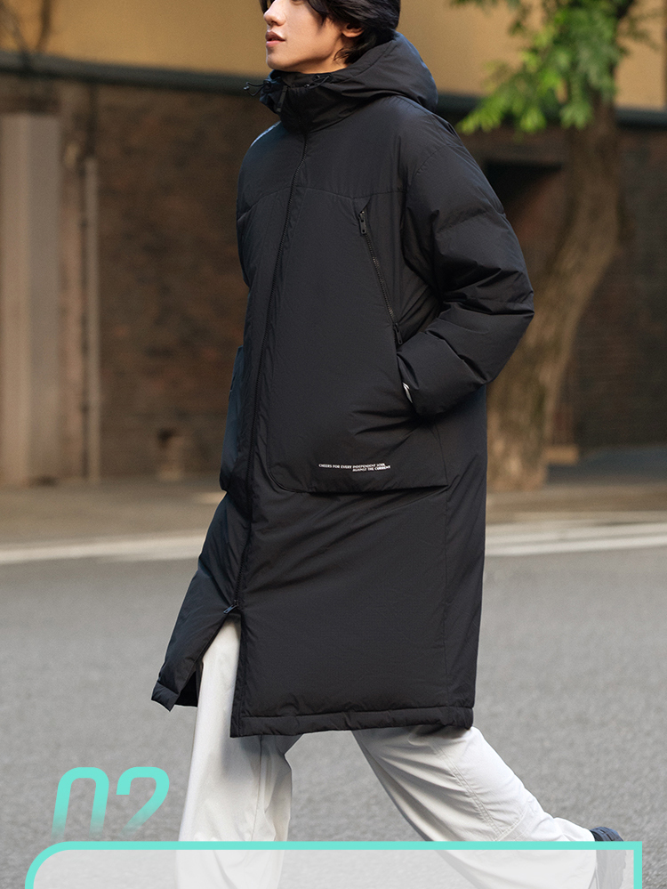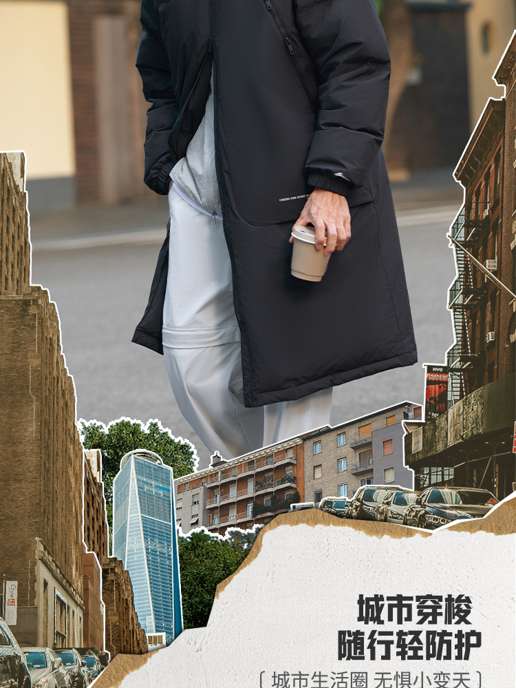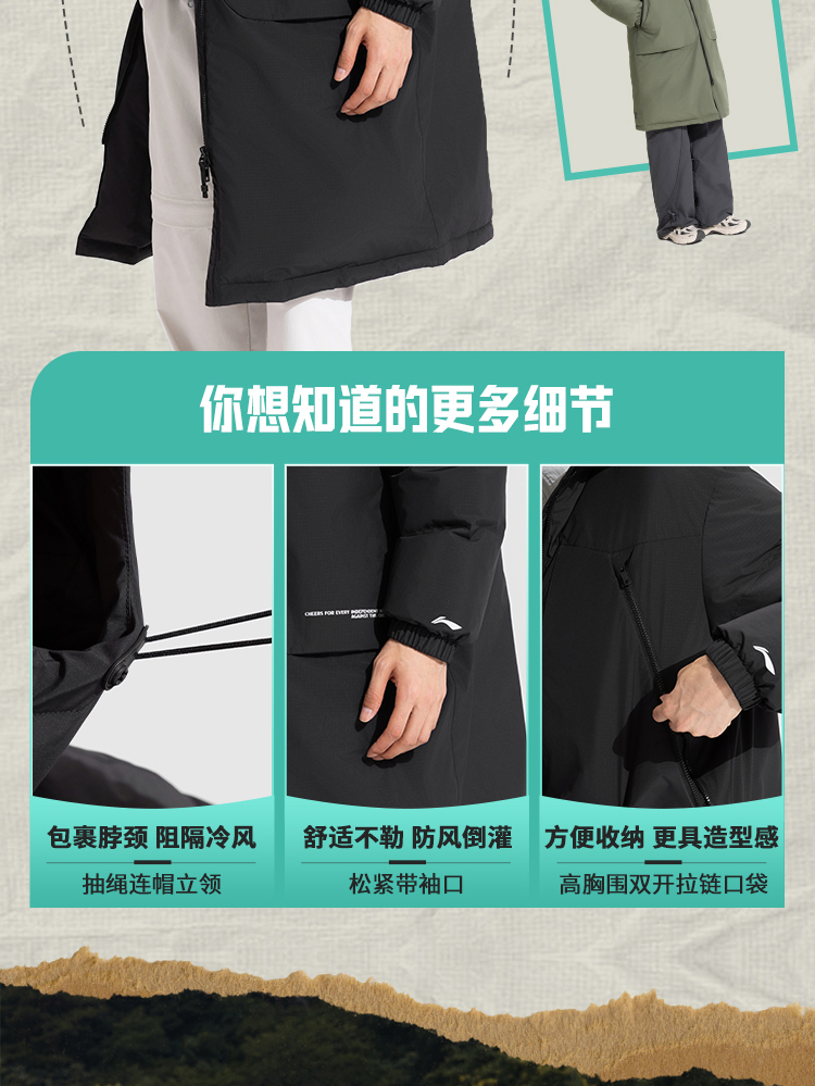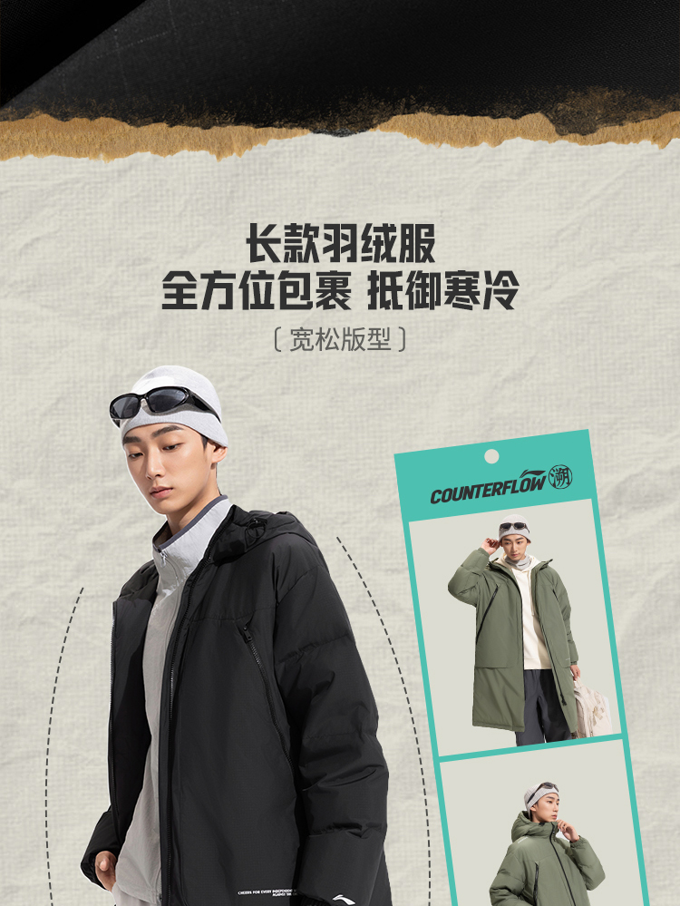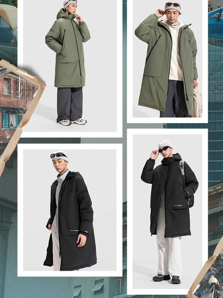 Li-Ning Outdoor Cf Long down Jacket Men's New Hooded Loose Top Autumn and Winter Duck down Sportswear