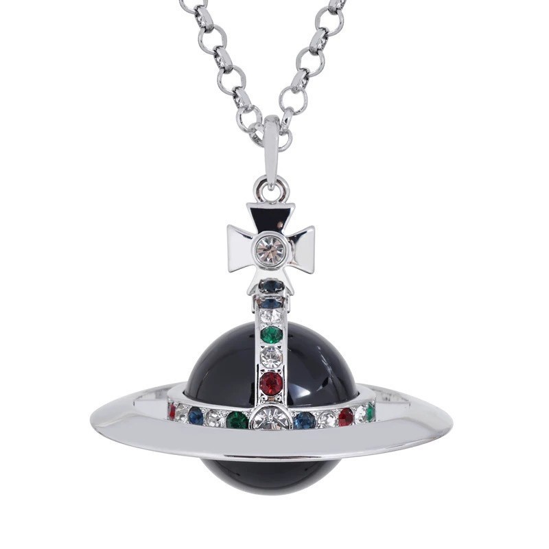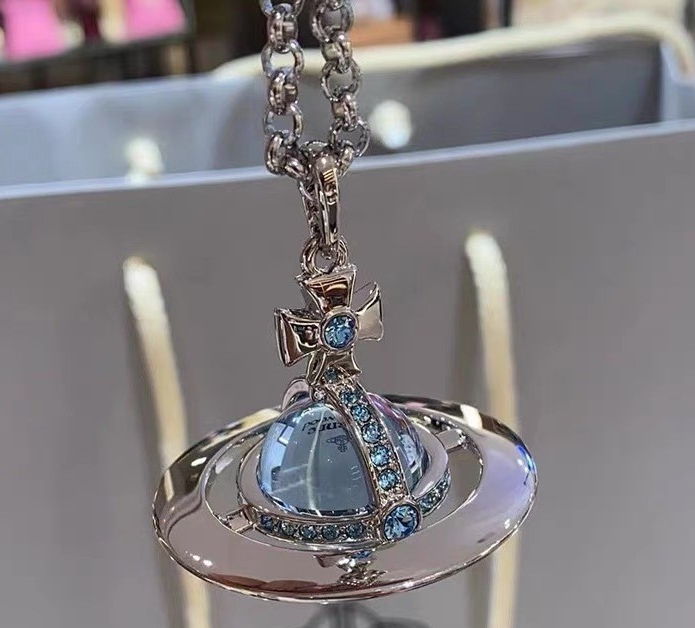High-End Large Orb Three-Dimensional Earth Planet Necklace 20mm Glass Bead Pendant Logo Clasp High-End Sweater Chain