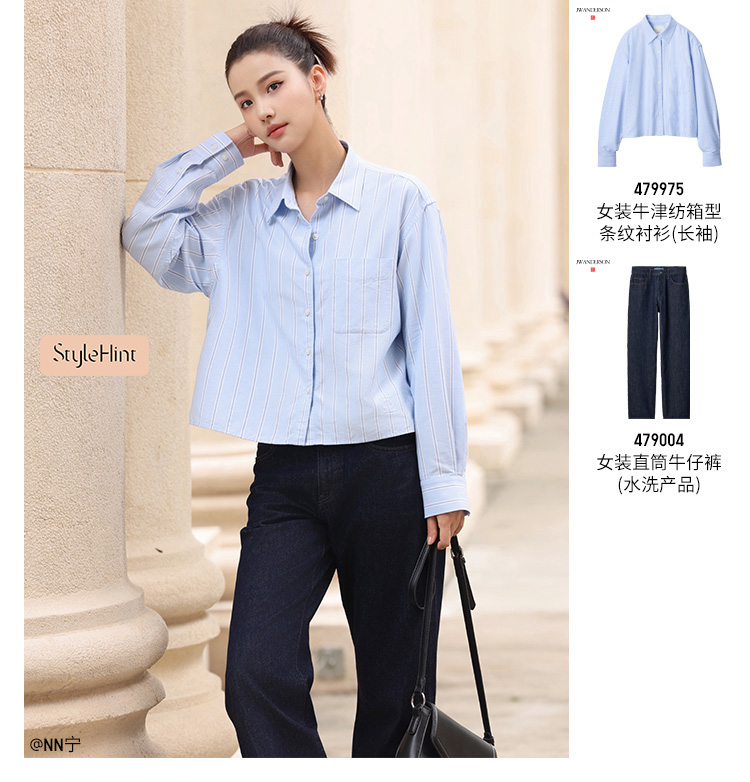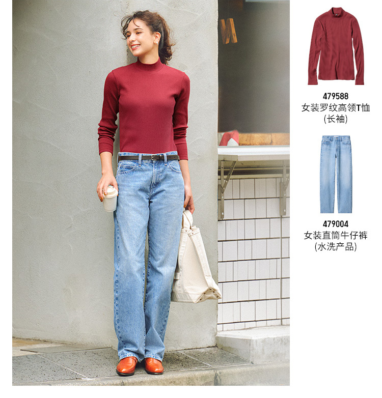 Uniqlo Women's Straight-Leg Jeans/Mid-Waist Washed Casual Pants 25 Autumn and Winter New Style 479004