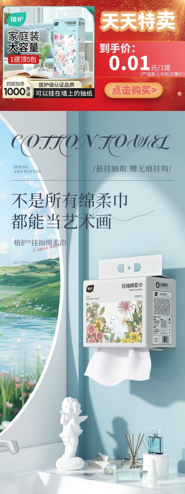 Plant Care Disposable Face Washing Towel Hanging Extractable Cotton Soft Towel Extra Large Pack Makeup Remover Cotton Face Towel Retail