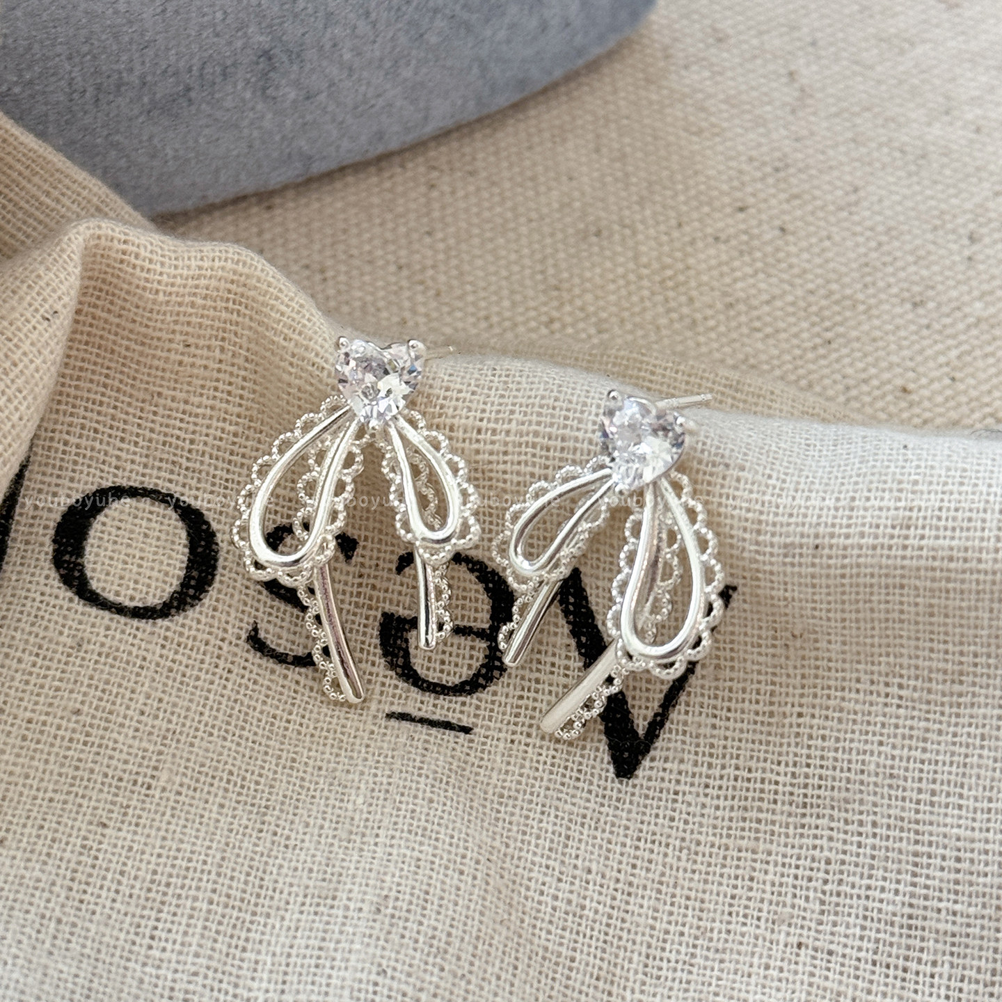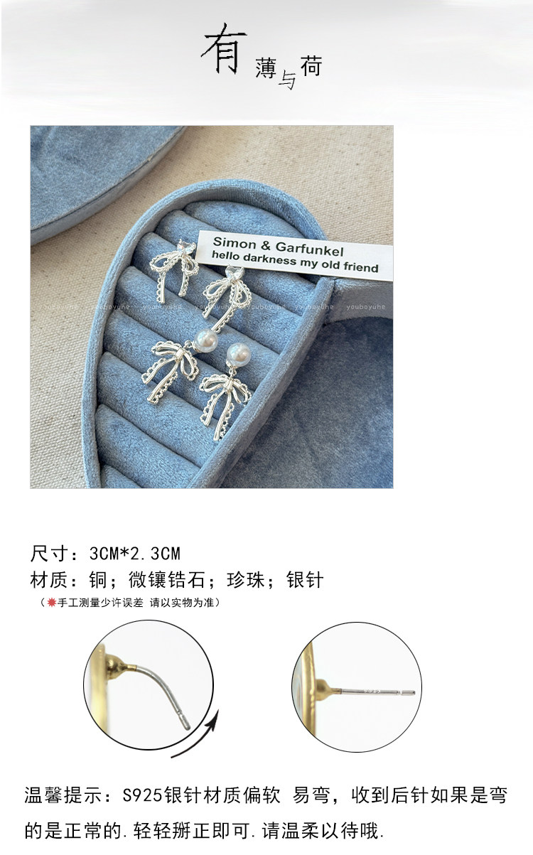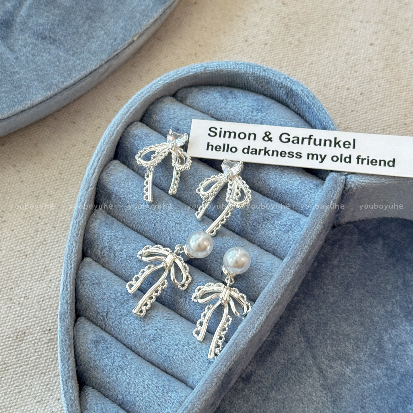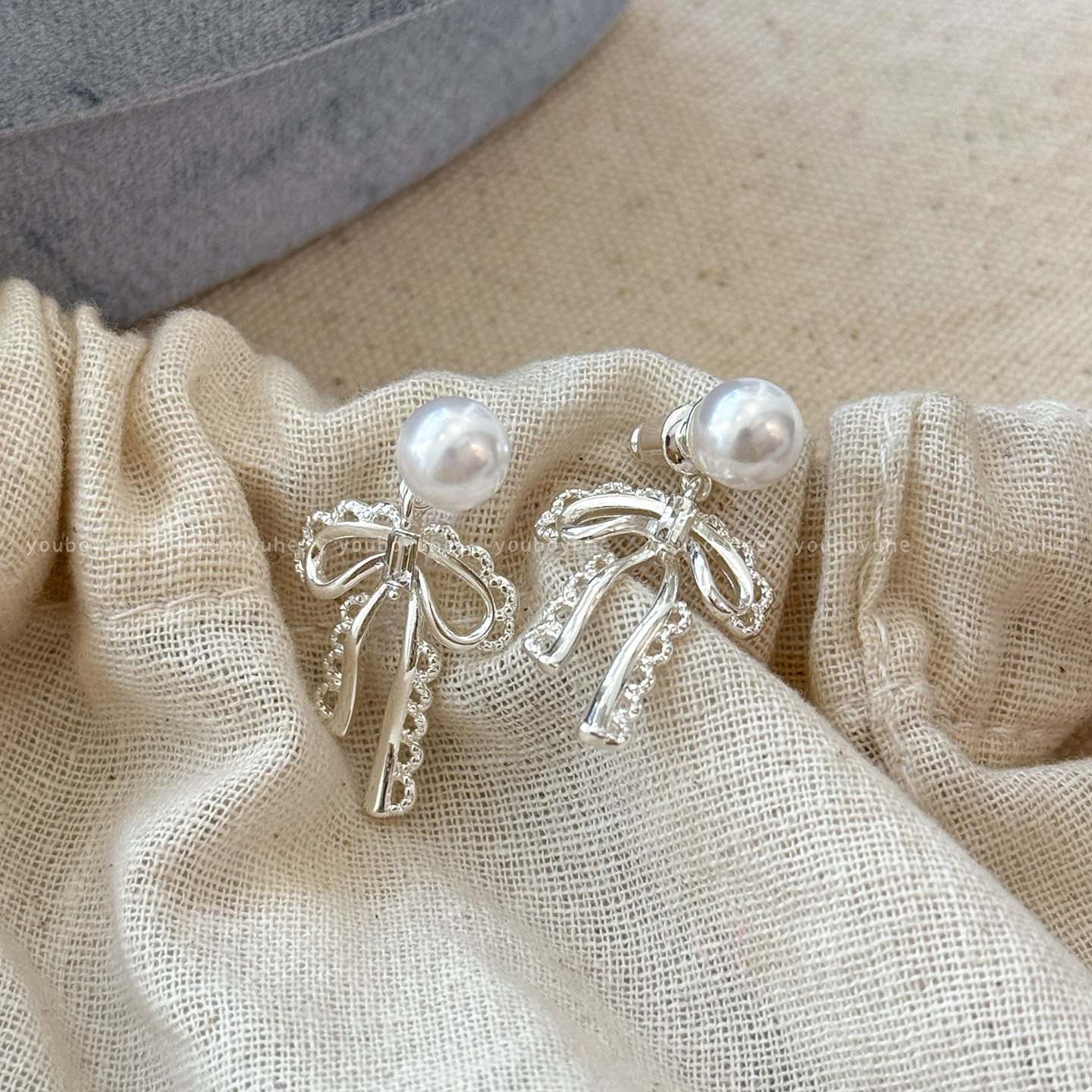 Lace Bow Pearl Earrings for Women, Light Luxury, High-End Earrings, Niche Exquisite Non-Pierced Ear Clips