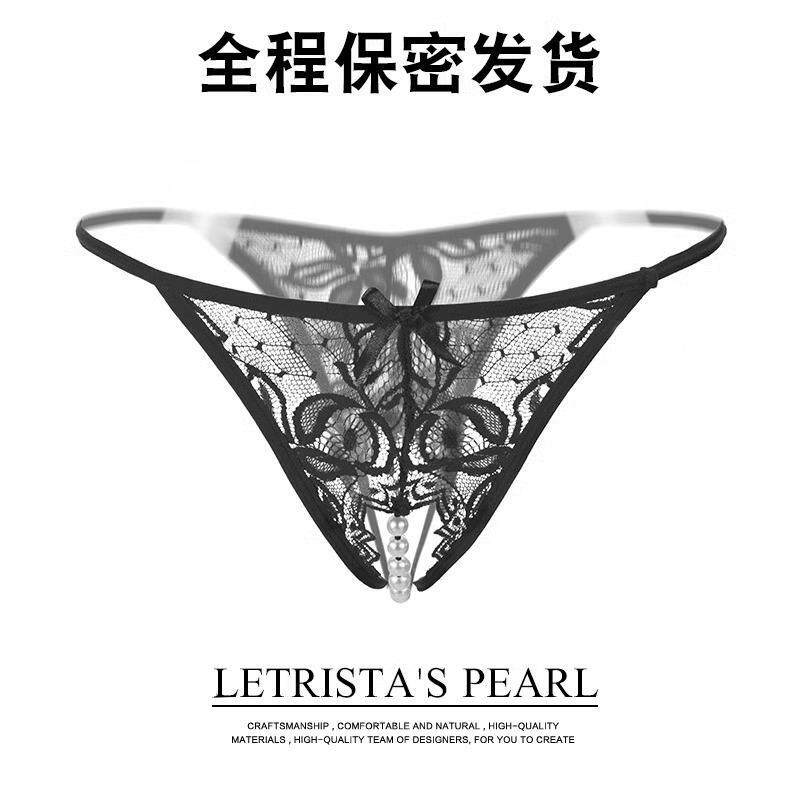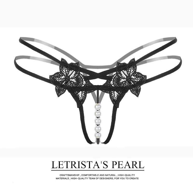 Women's Sexy Thong Underwear, Ultra-Small One-String Embroidered Pearl T-Back Panties, Low-Waist Seamless Hollow-Out Young Girl Underwear