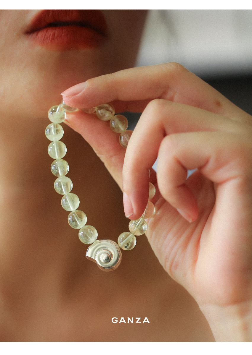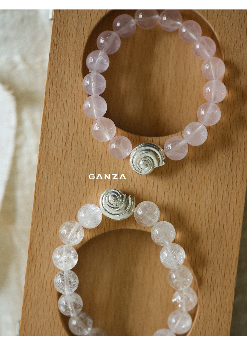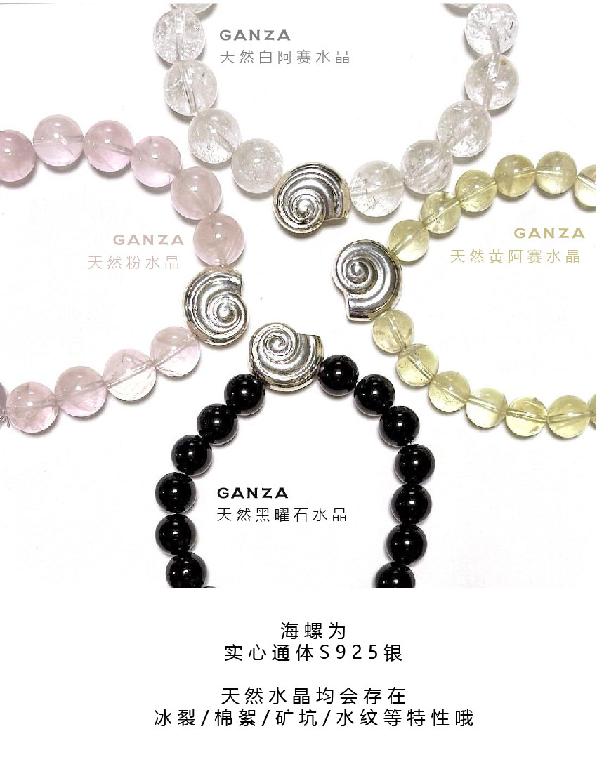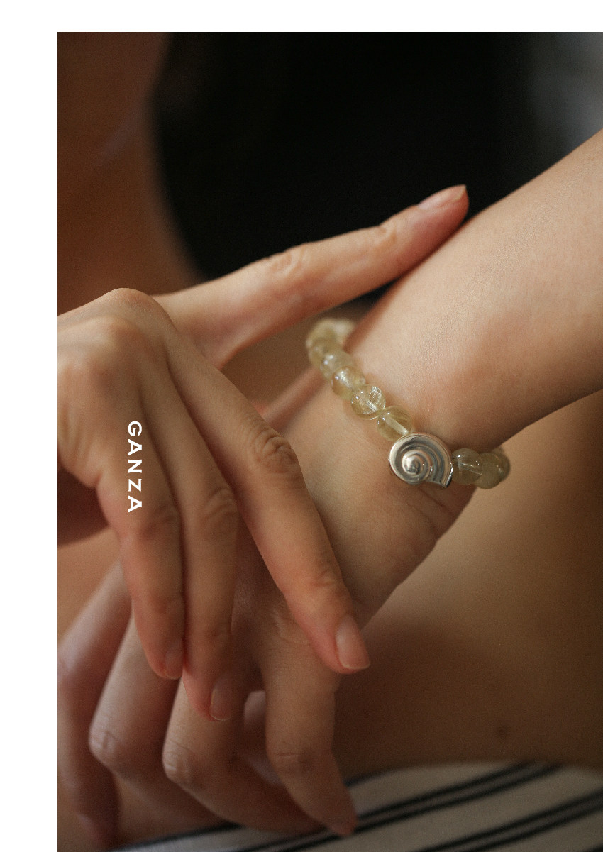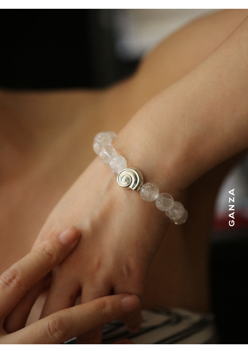 Pure Silver S925 Conch Holiday Natural Bracelet with Natural White Crystal, Citrine, Pink Crystal, and Obsidian