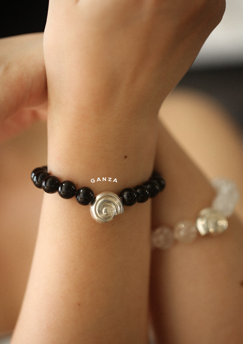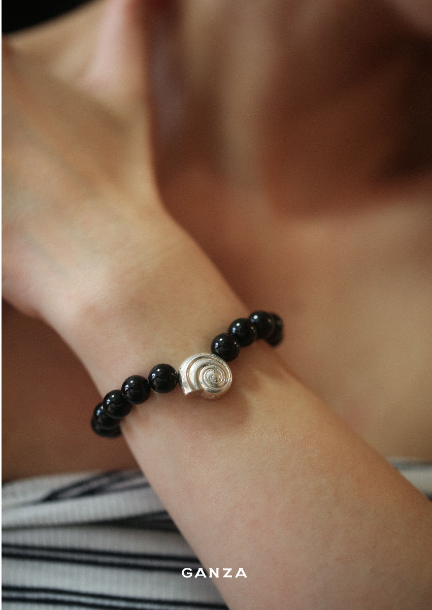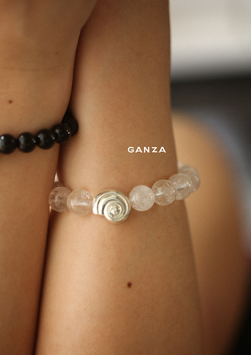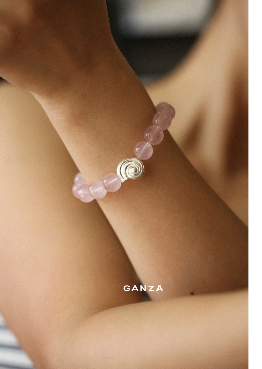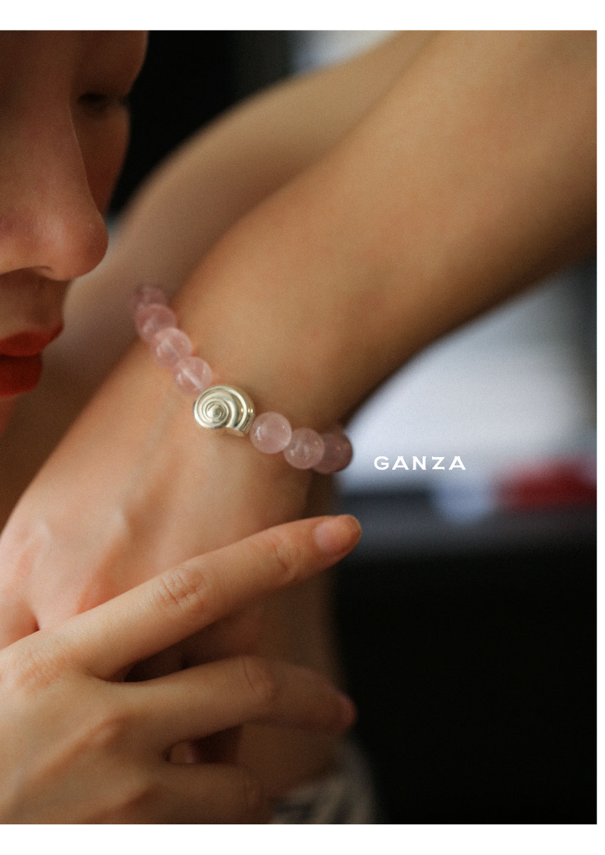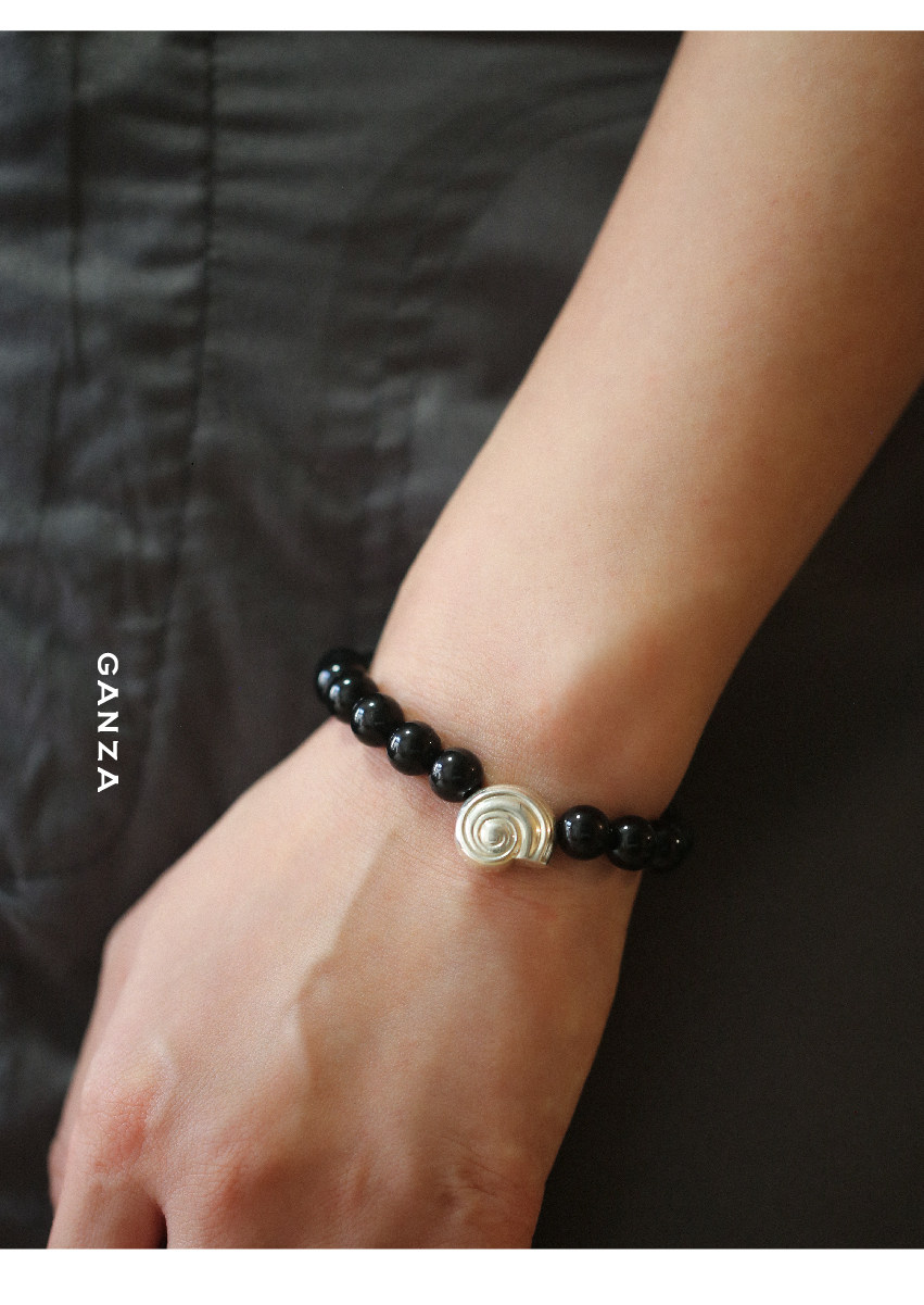 Pure Silver S925 Conch Holiday Natural Bracelet with Natural White Crystal, Citrine, Pink Crystal, and Obsidian