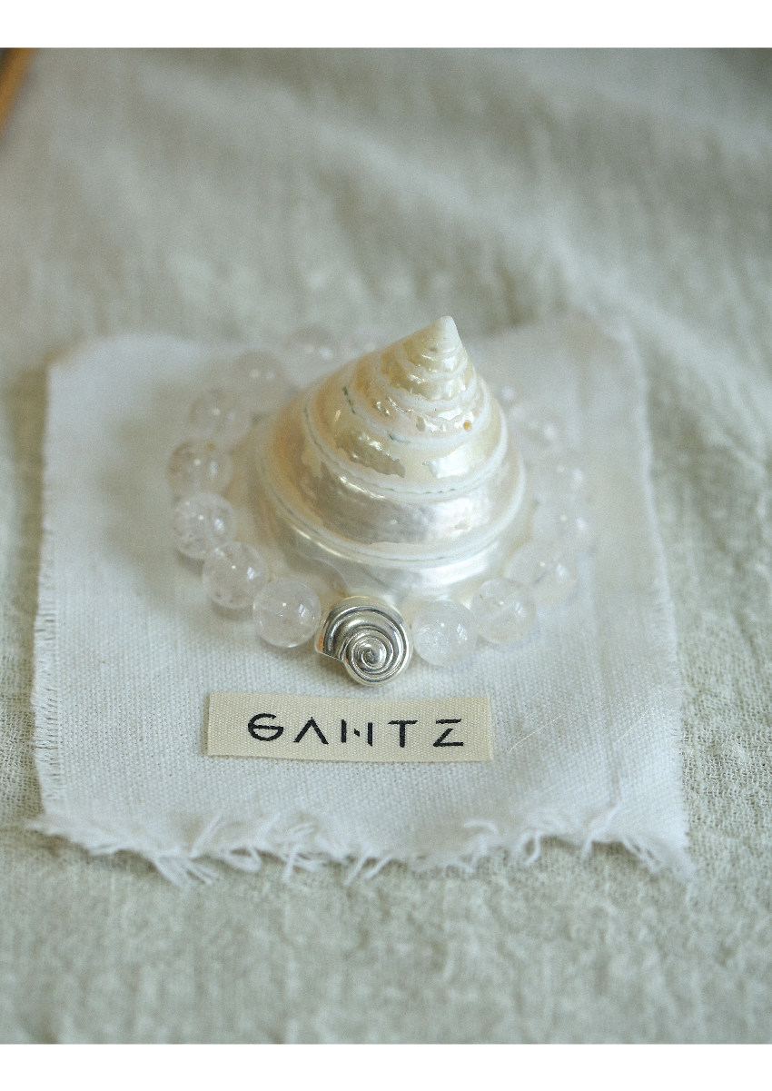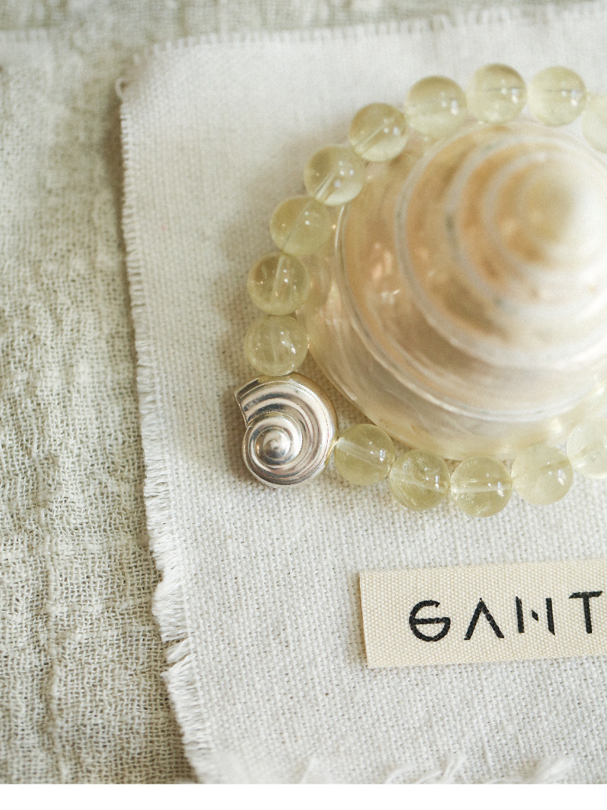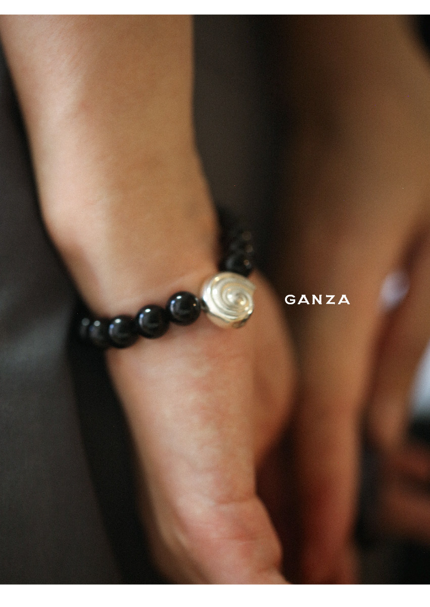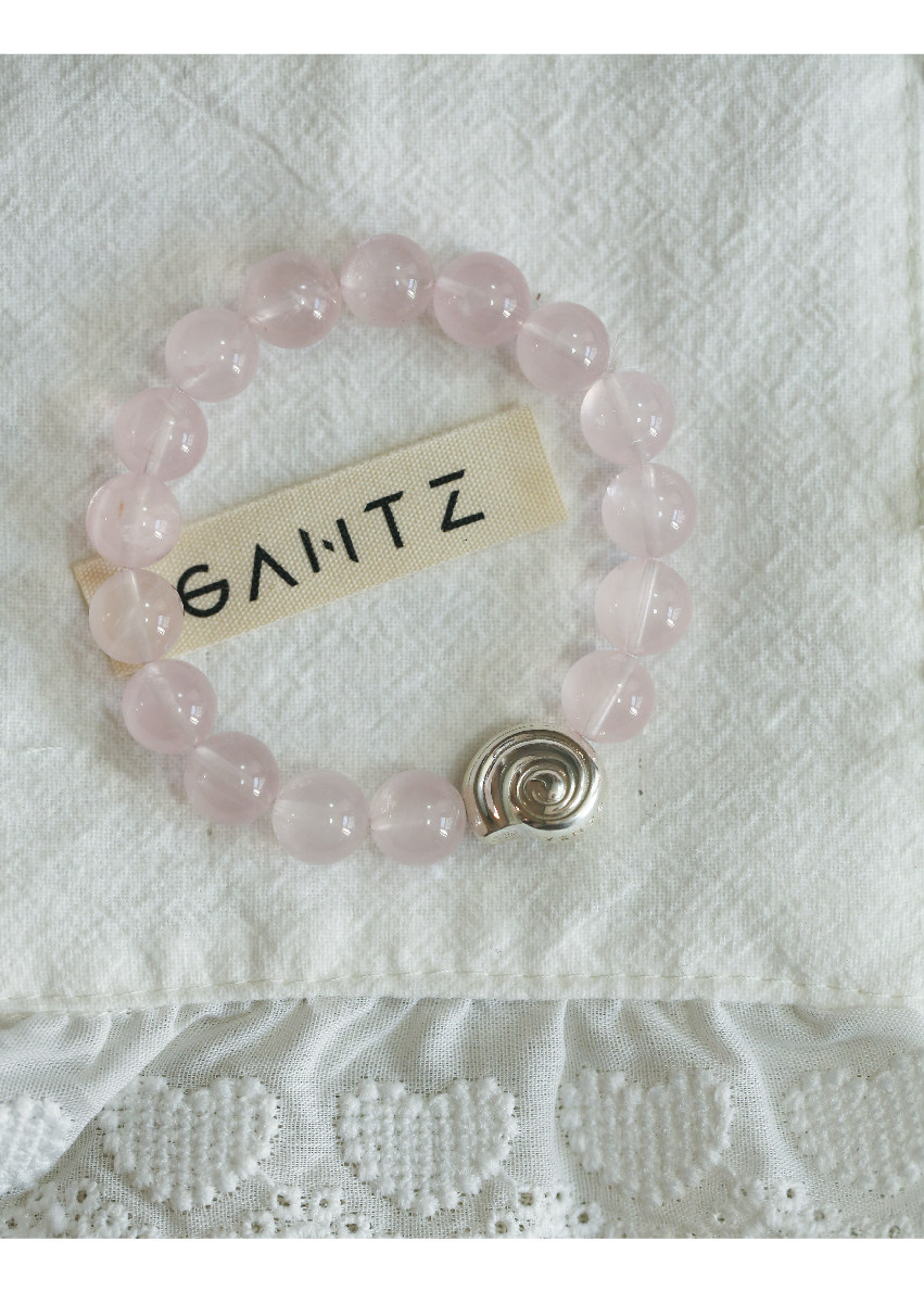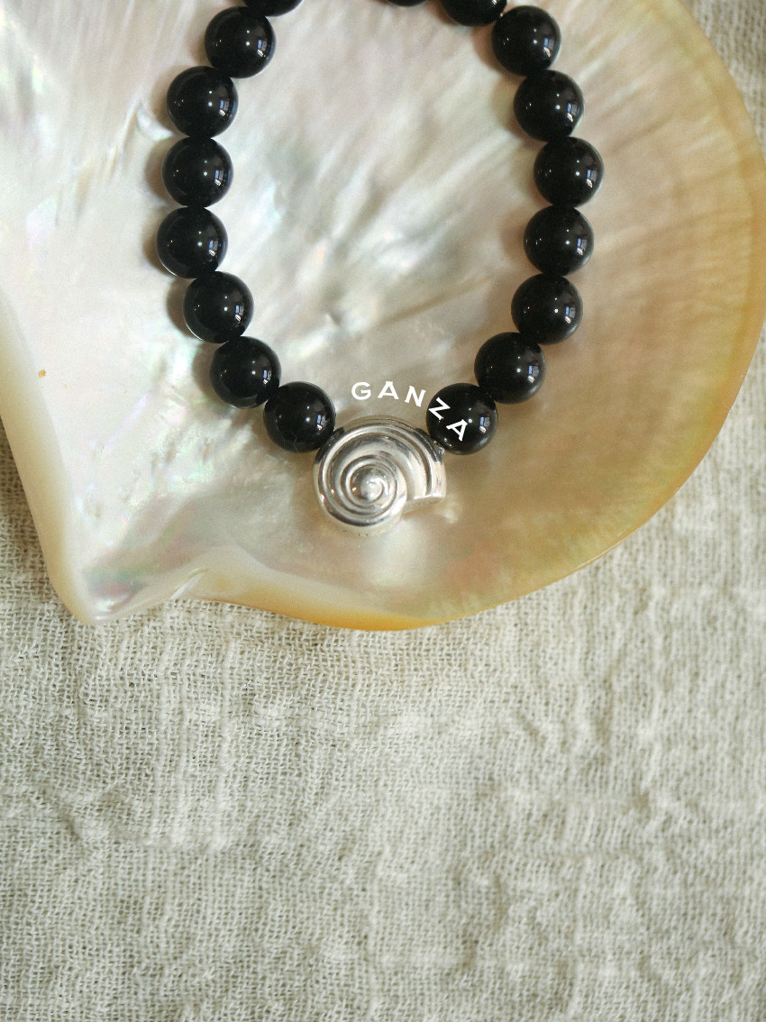 Pure Silver S925 Conch Holiday Natural Bracelet with Natural White Crystal, Citrine, Pink Crystal, and Obsidian
