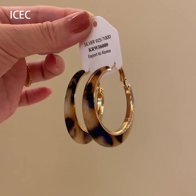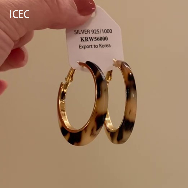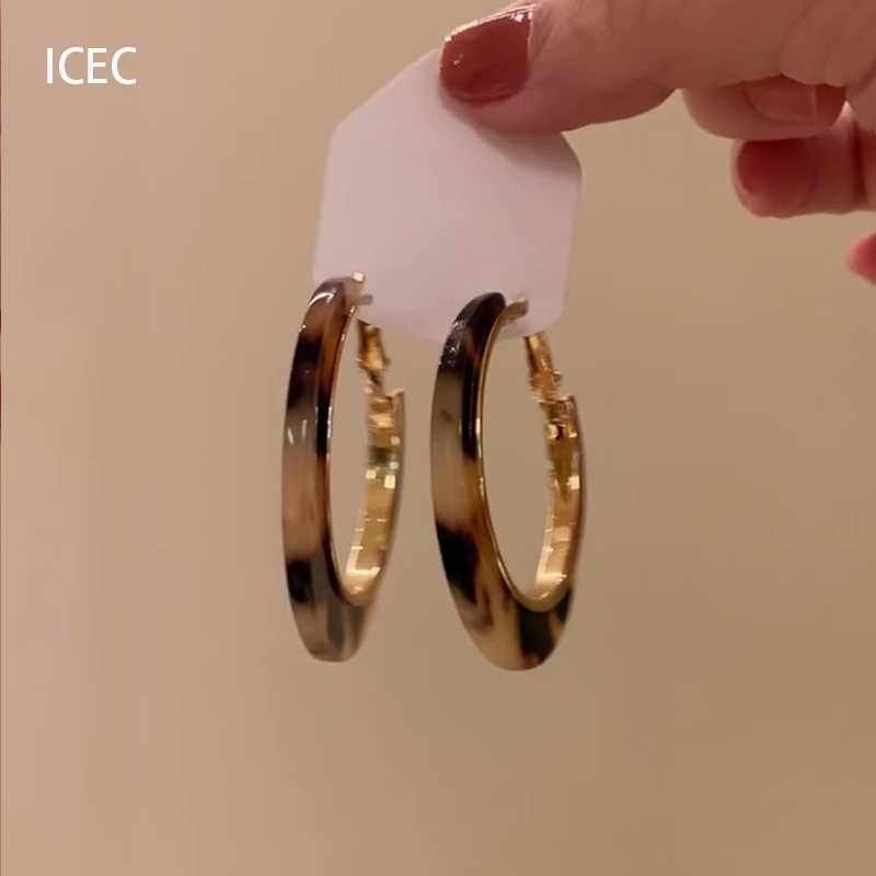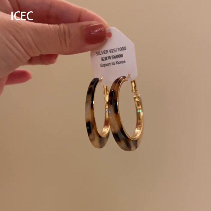 Maillard Caramel-Colored Leopard Print Hoop Earrings, Simple and Exaggerated, Suitable for Large Faces, Vintage Hong Kong Style Design Earrings