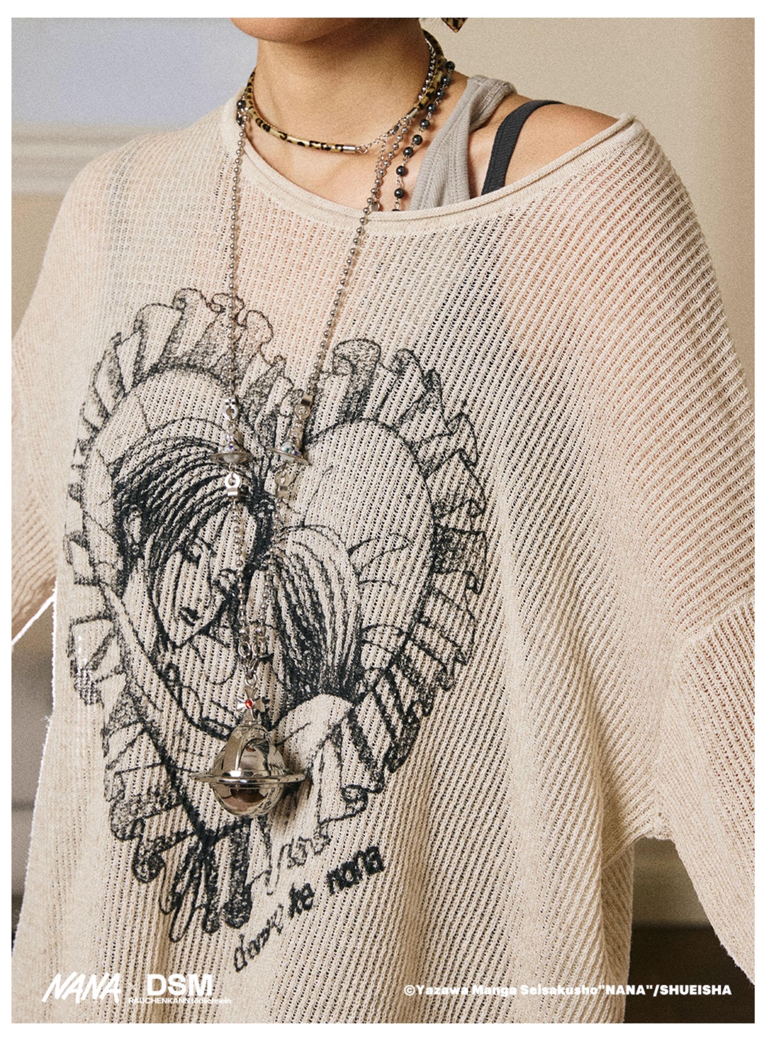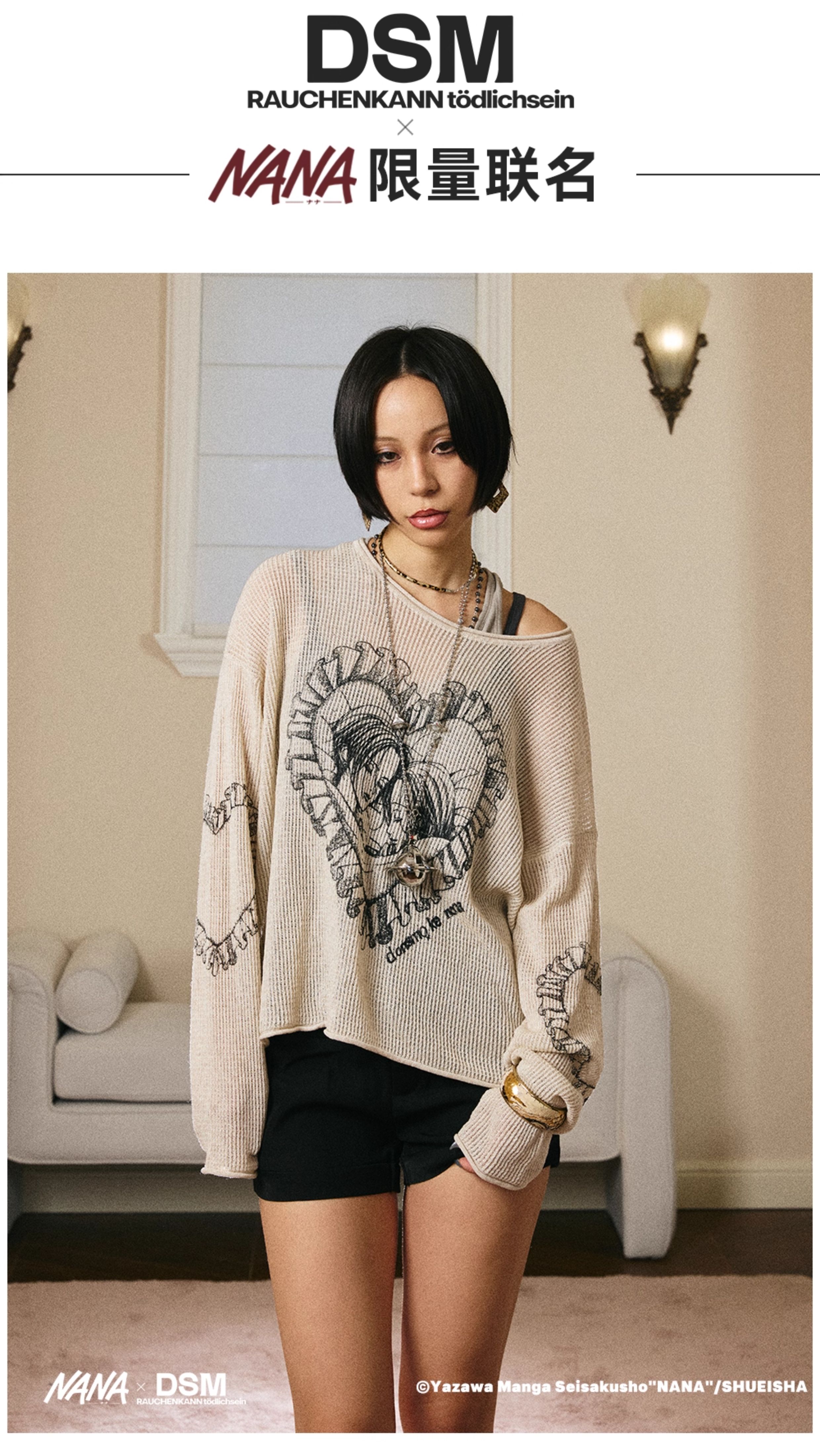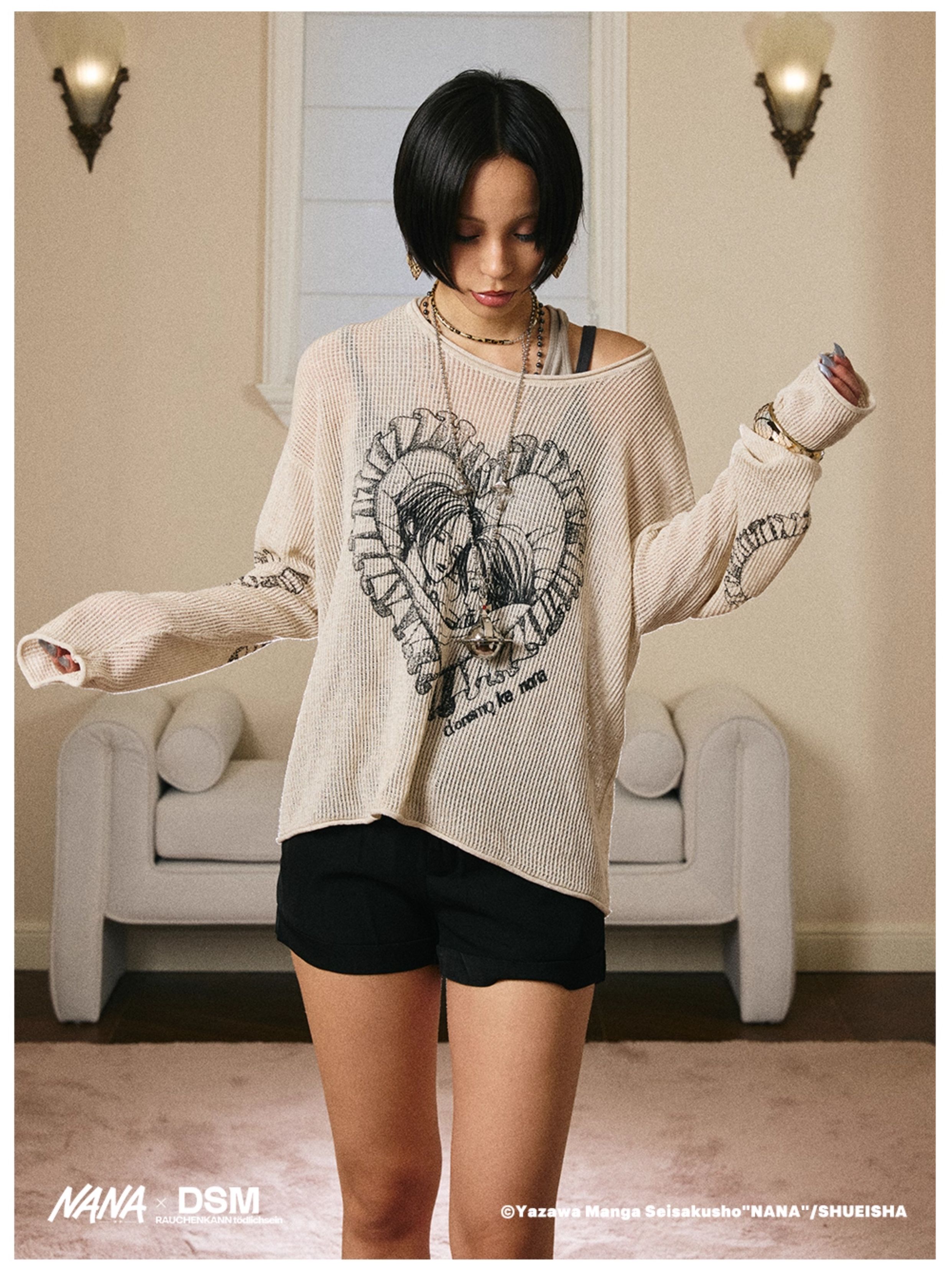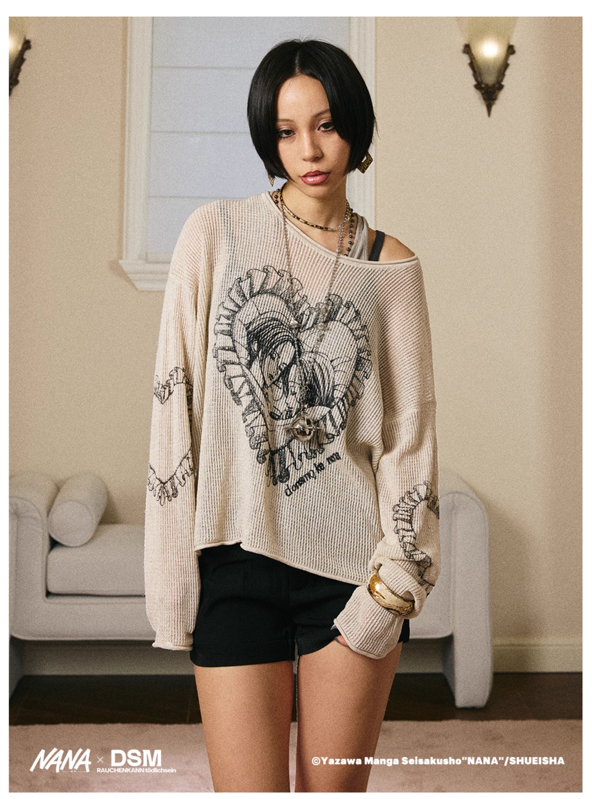 Donsmoke Officially Authorized Nana Heart Print Sweater Cover-Up Dsm Breathable Long-Sleeved Autumn New Product