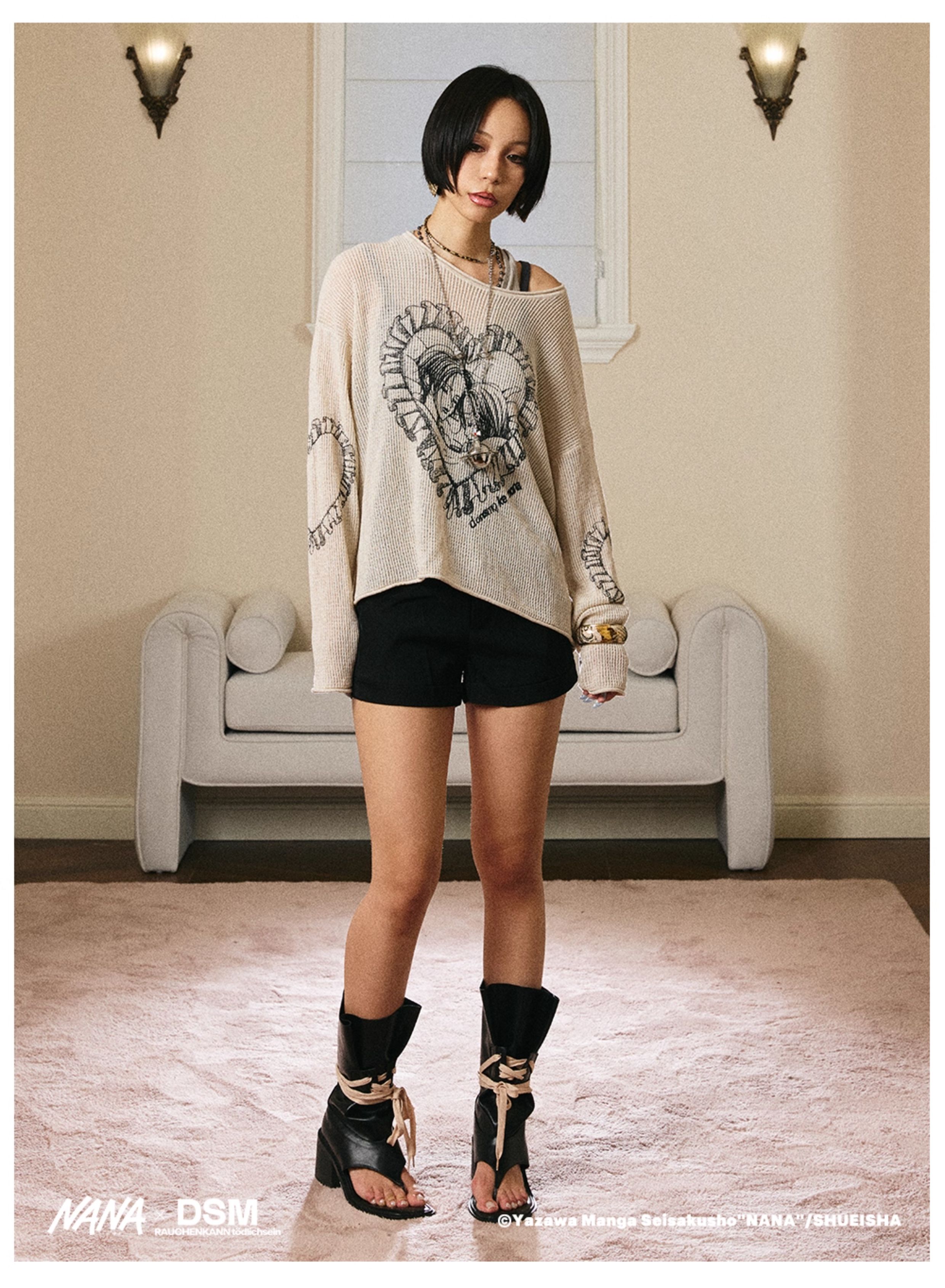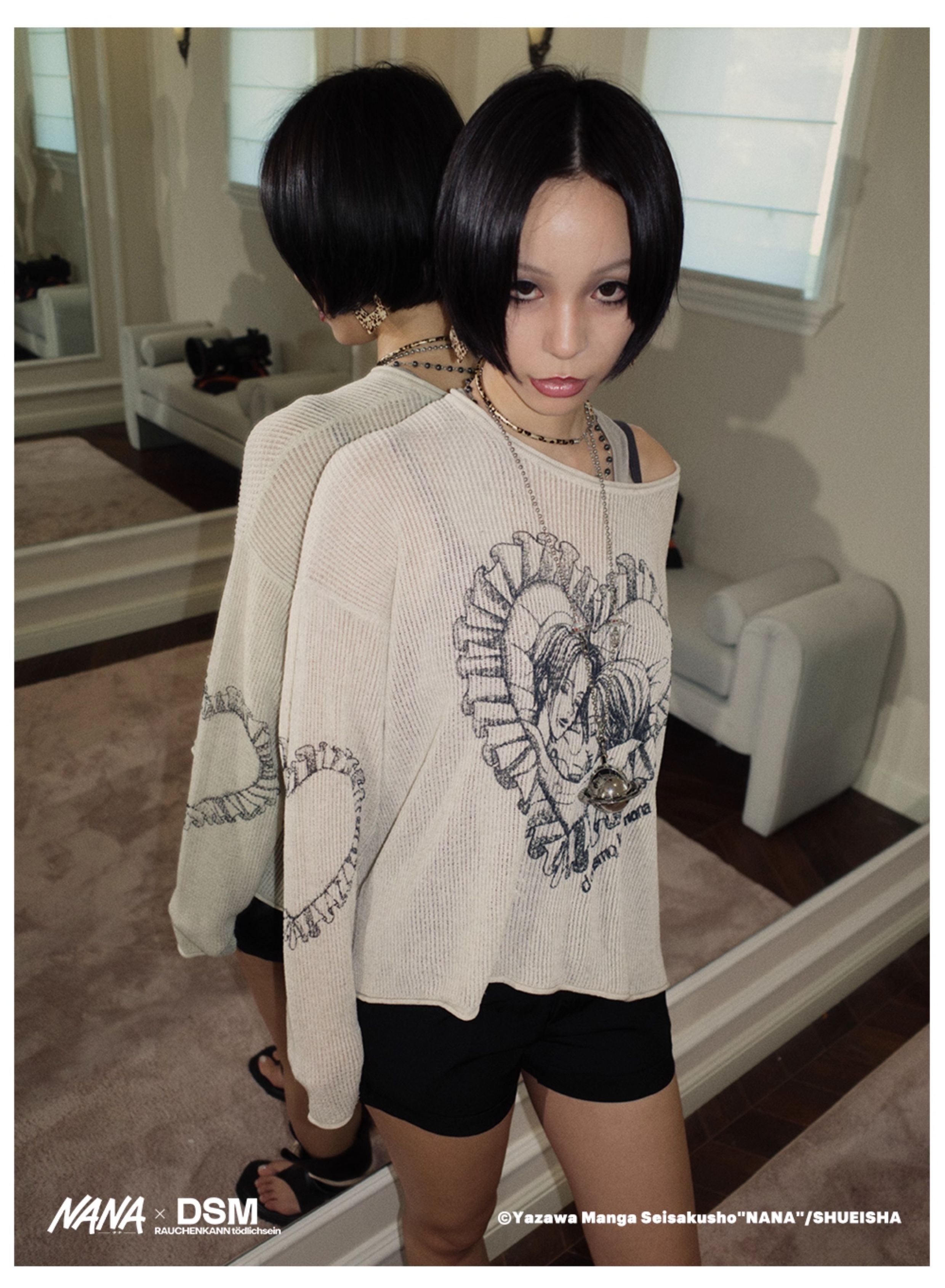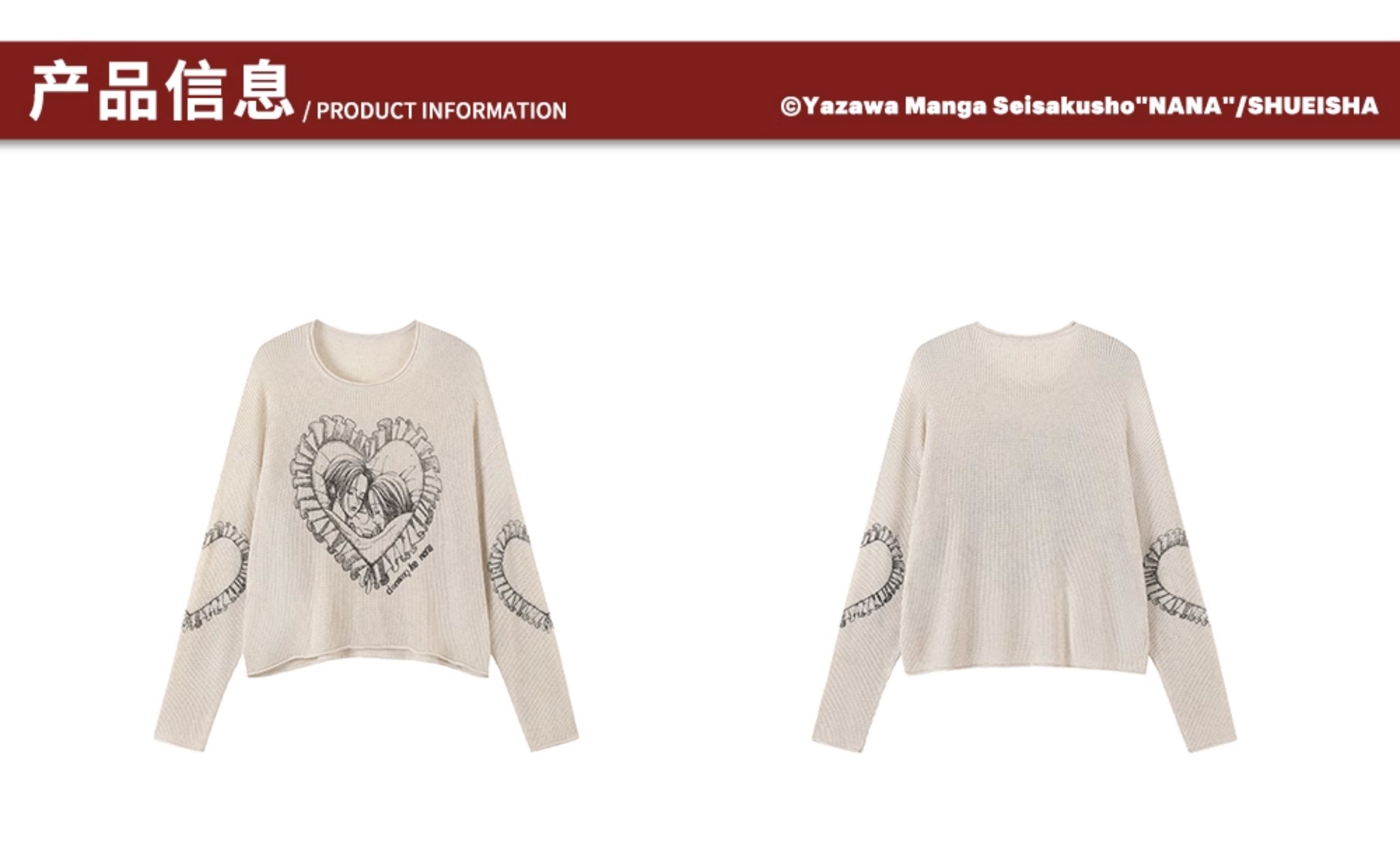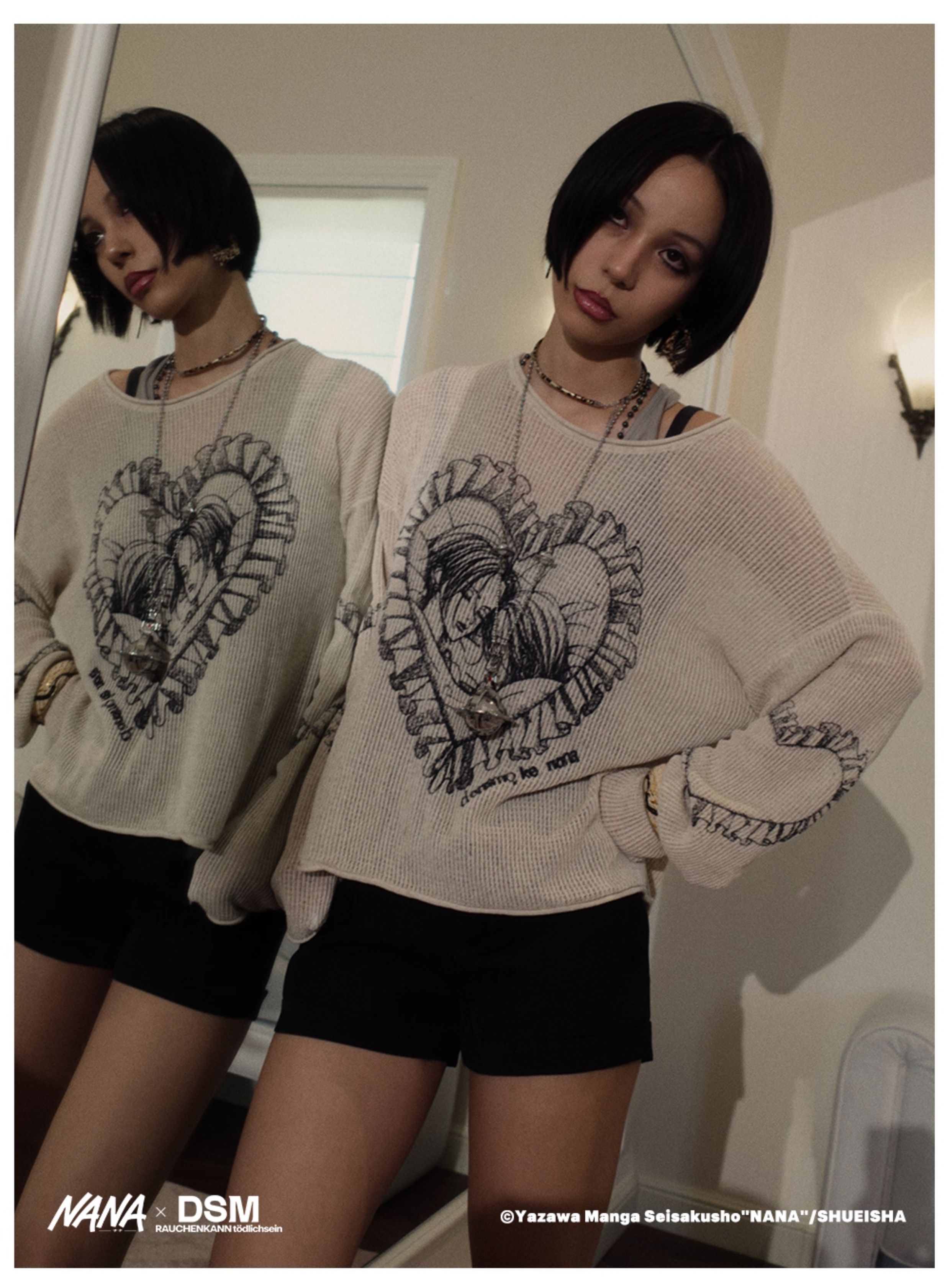 Donsmoke Officially Authorized Nana Heart Print Sweater Cover-Up Dsm Breathable Long-Sleeved Autumn New Product