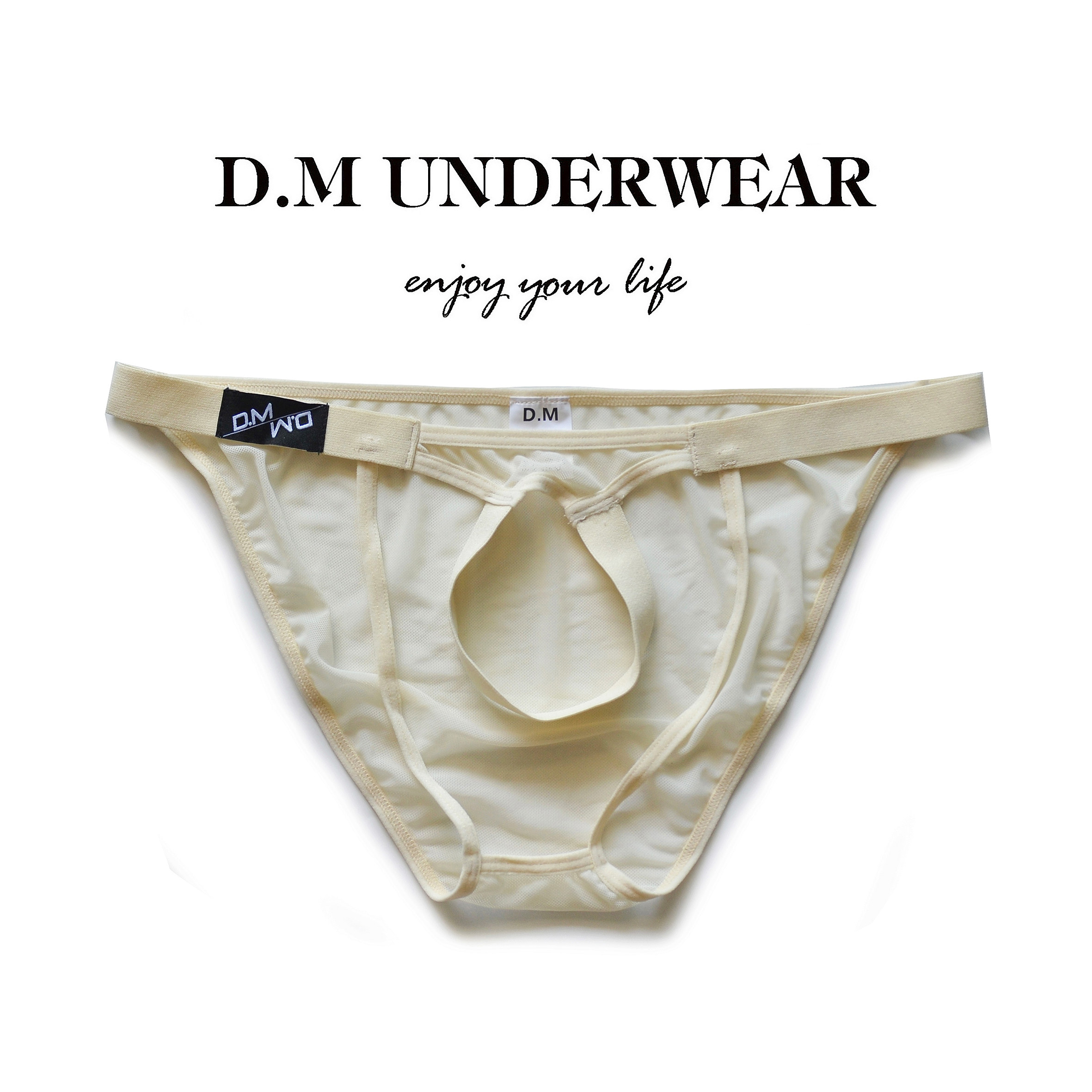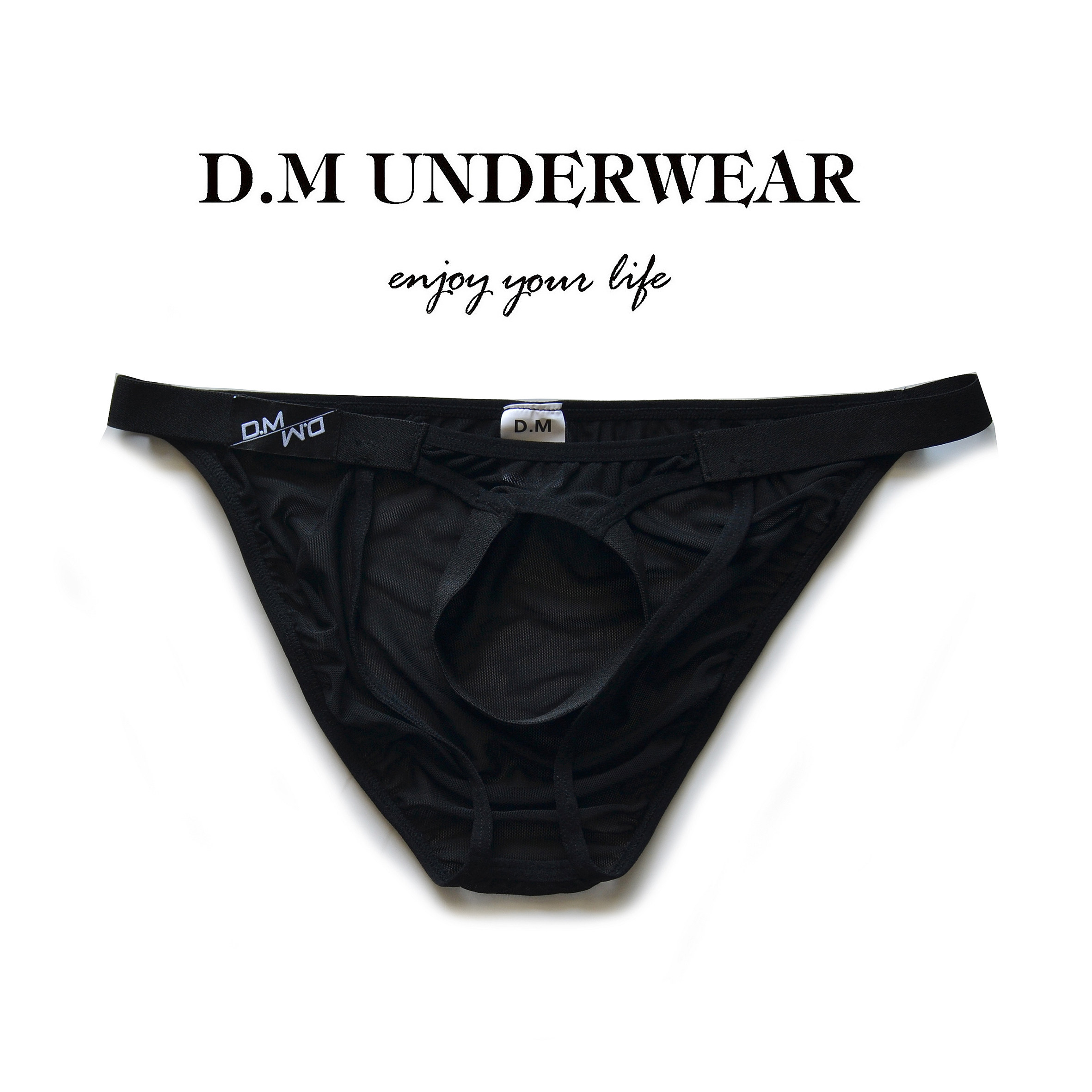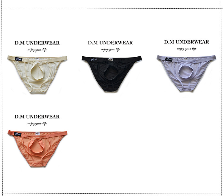 D.M Men's Underwear Low-Rise Personality Transparent Sexy Briefs Thong Summer See-Through Mesh Trendy