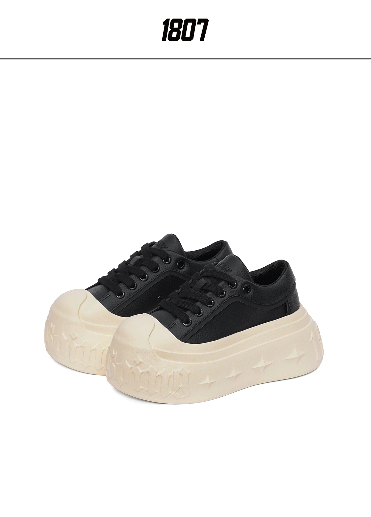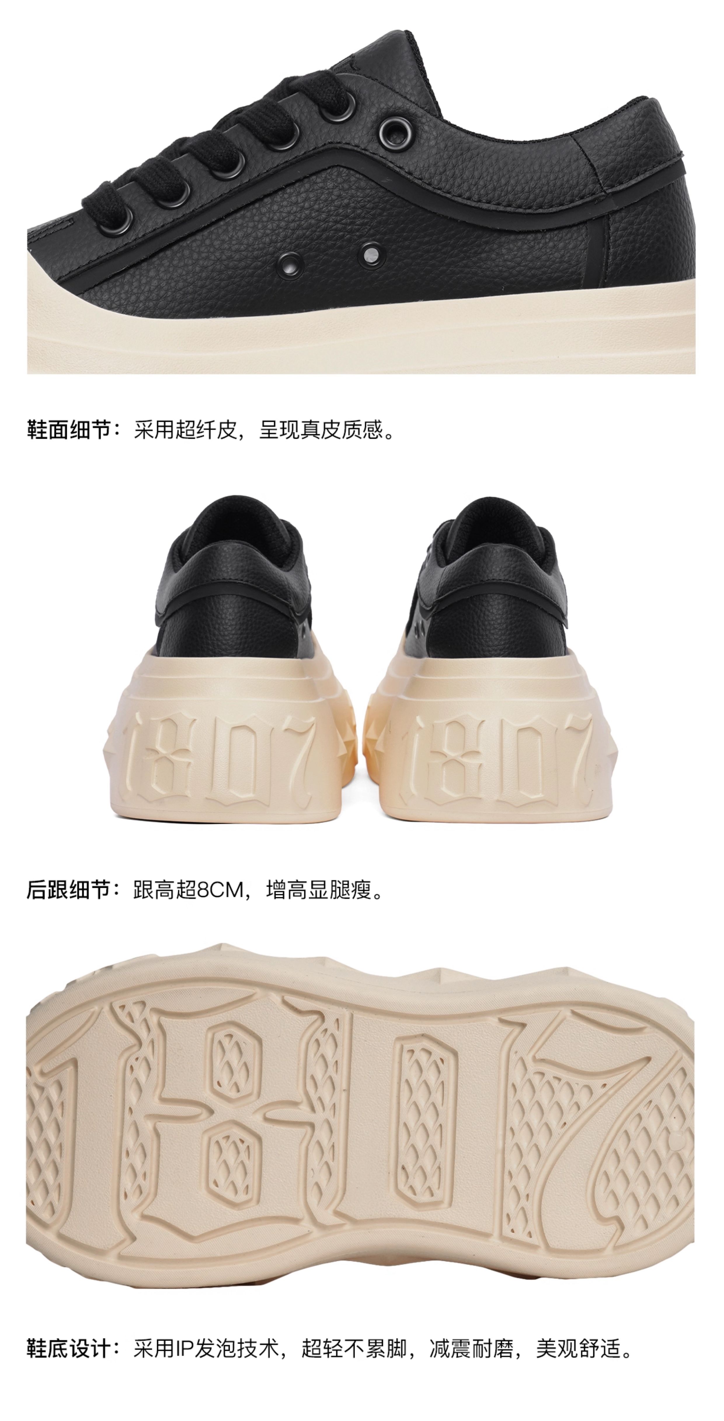 1807Inf-008 Gothic Lace up Gothic Platform Shoes Leather Upper American Casual Height-Increasing Black and White