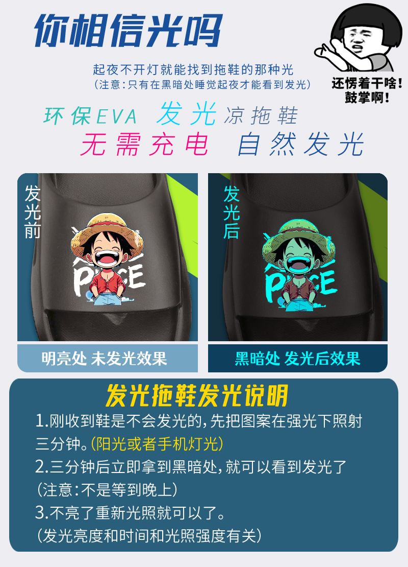 Luminous One Piece Luffy Slippers for Men, Teenagers, Students, Boys, Home and Outdoor Wear, Eva Anti-Odor 2025 Summer