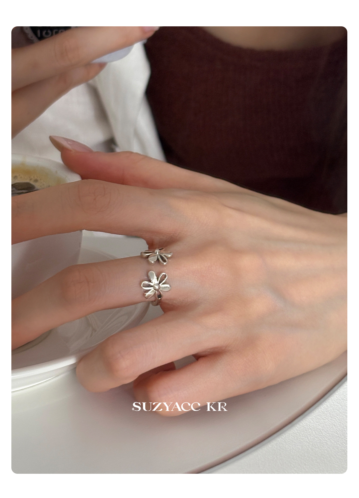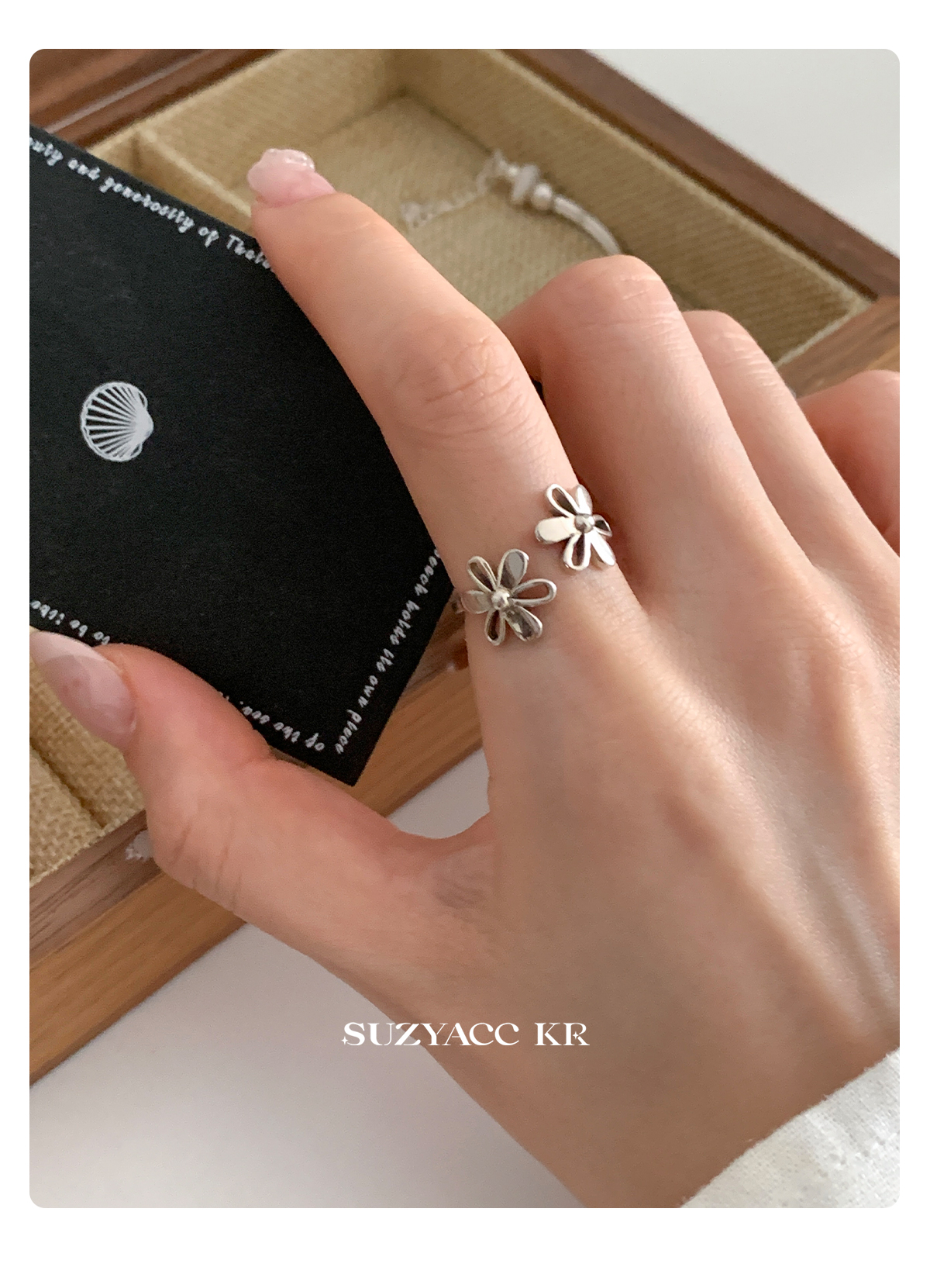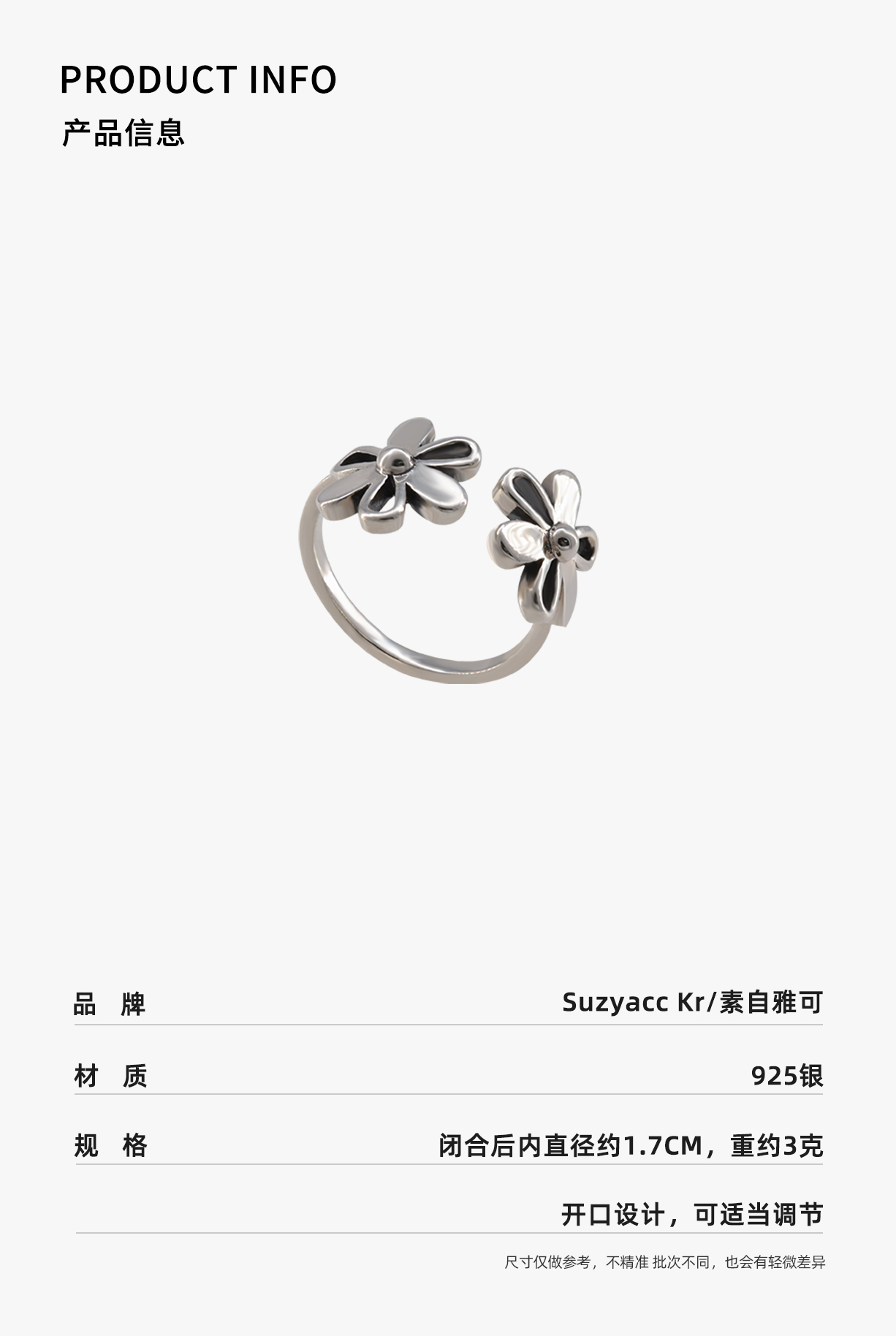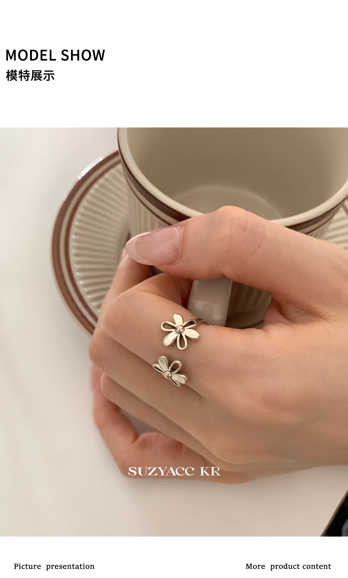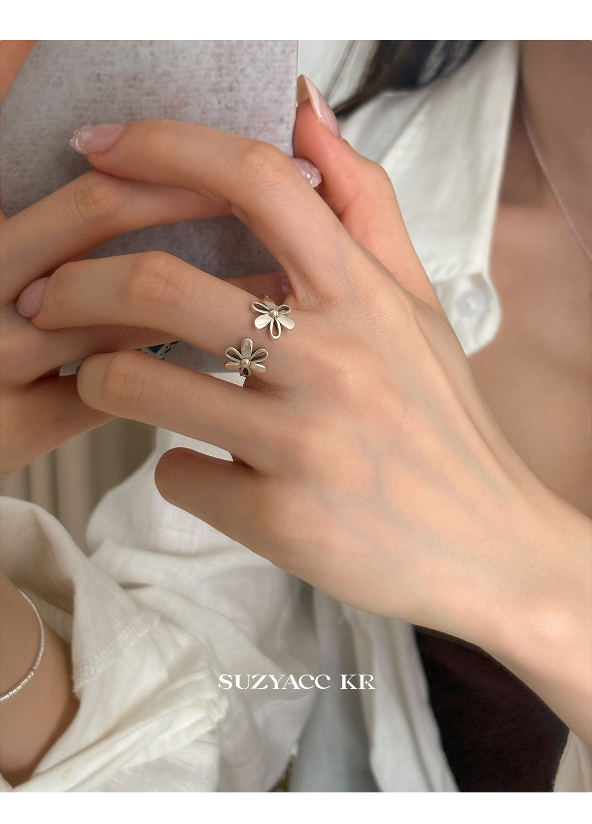 Suzyacc Kr Pure Silver Vintage Flower Ring, Heavy Craftsmanship, Niche Design, Index Finger Ring, Versatile, High-End Feel Ring