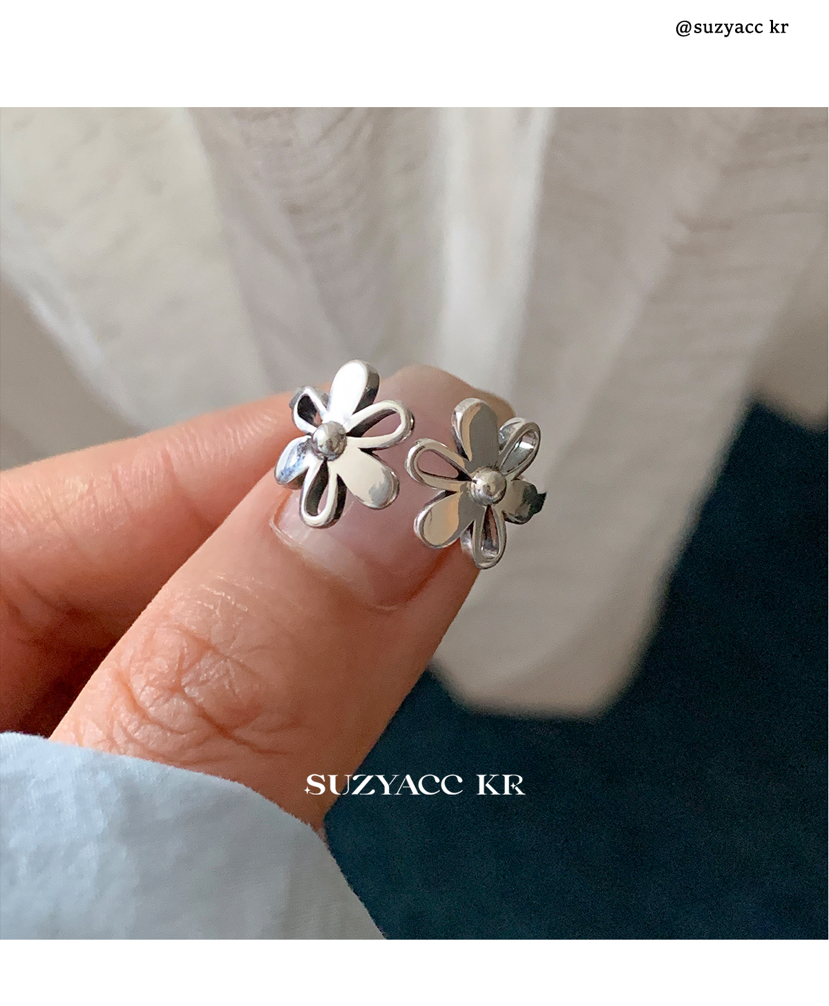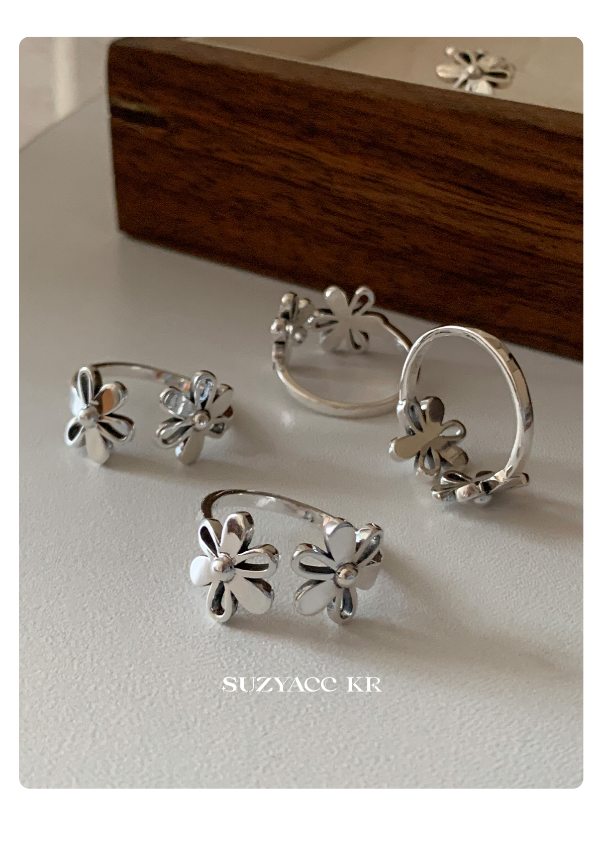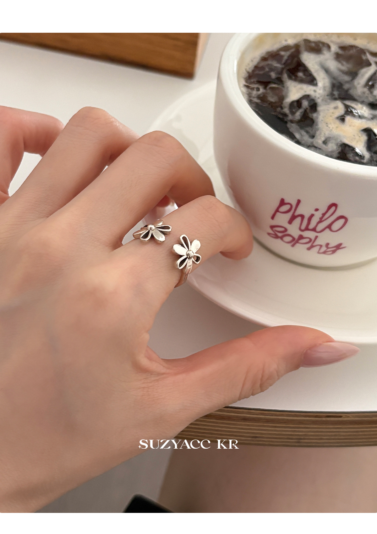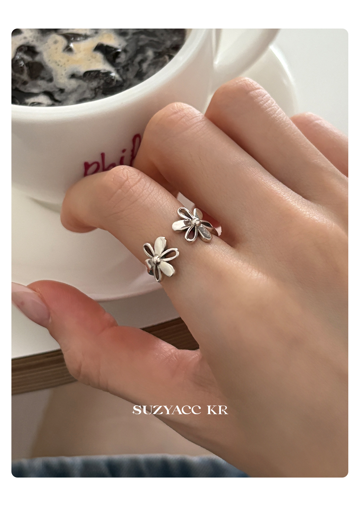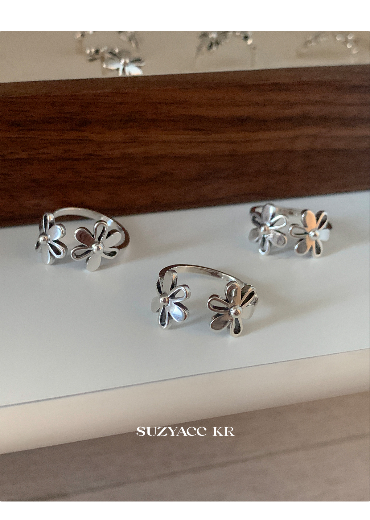 Suzyacc Kr Pure Silver Vintage Flower Ring, Heavy Craftsmanship, Niche Design, Index Finger Ring, Versatile, High-End Feel Ring