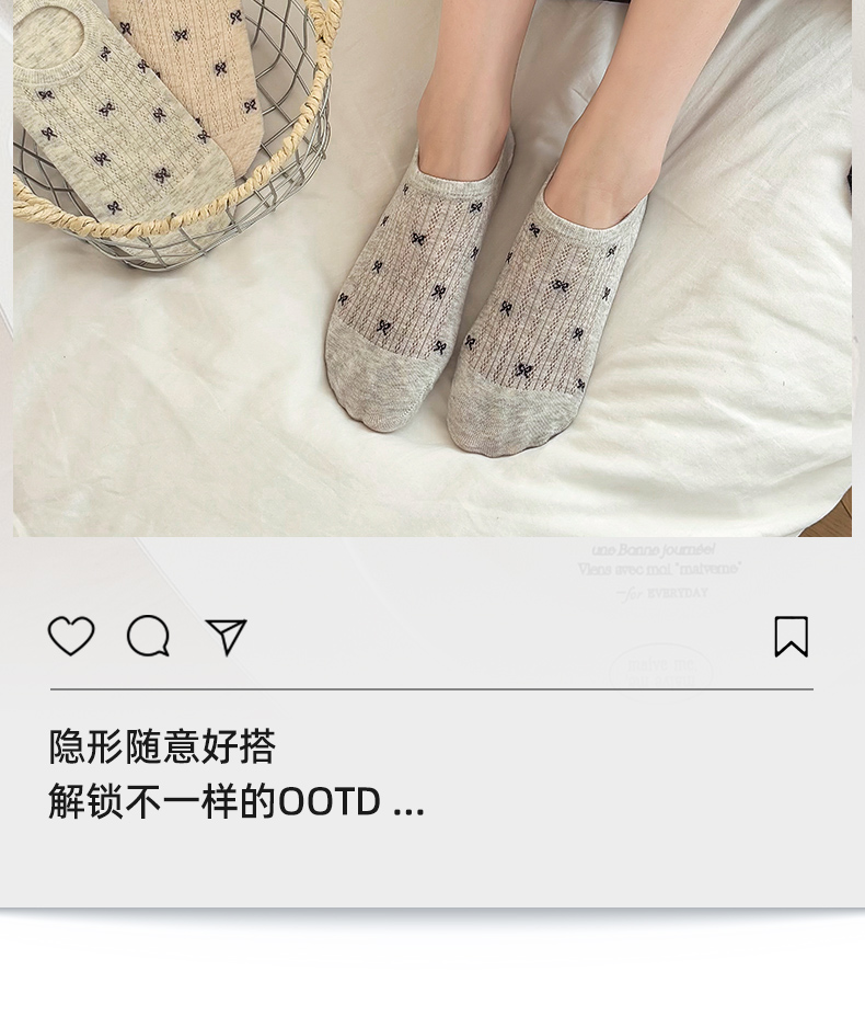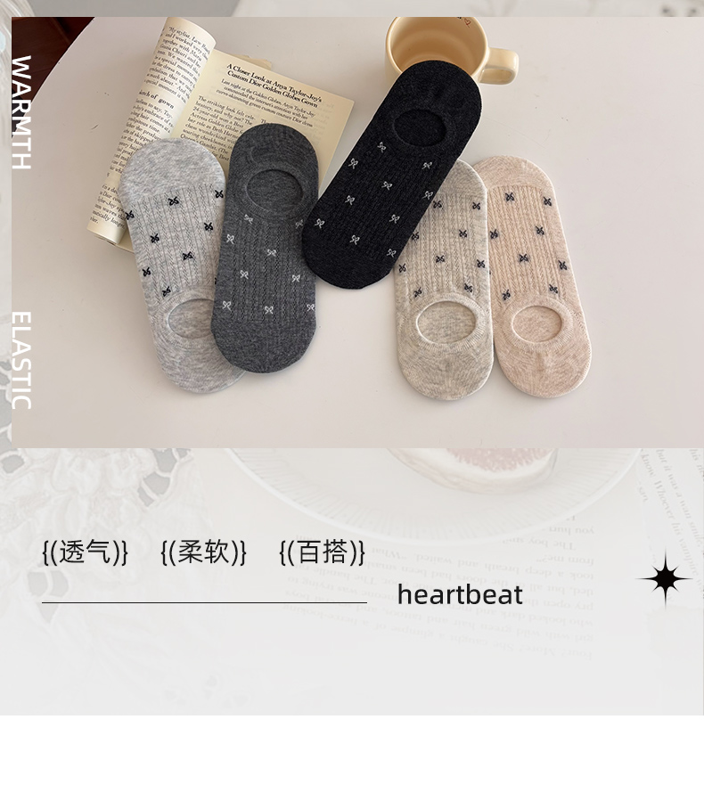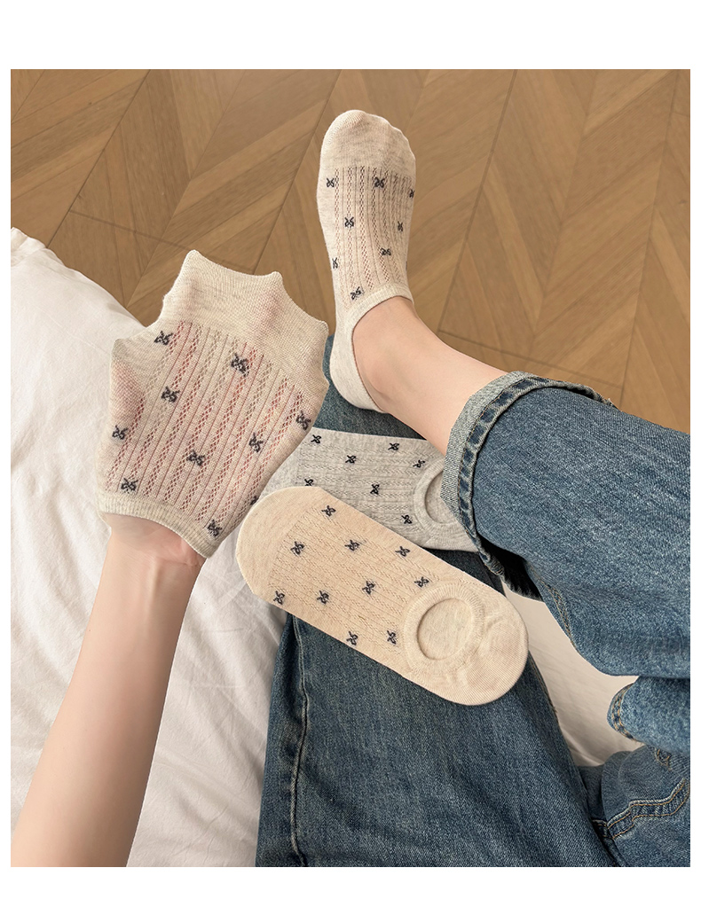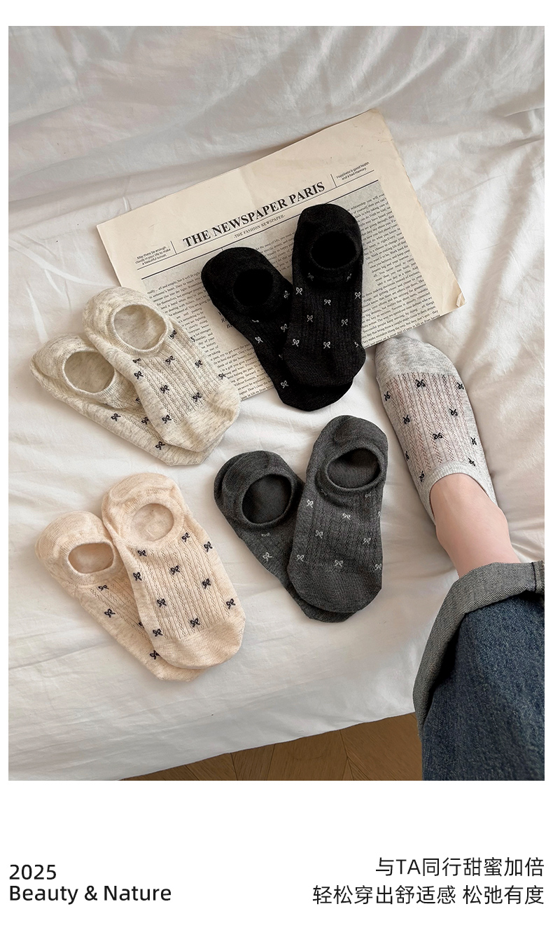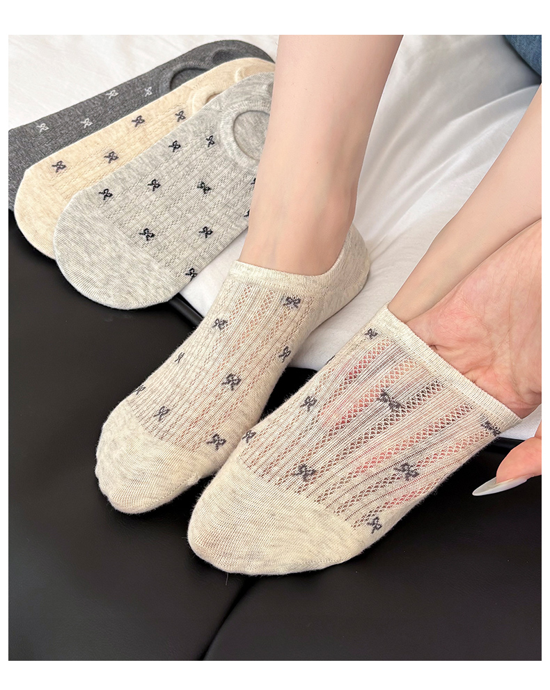 Women's Socks for Autumn and Winter, Short Socks, Pure Cotton, Low-Cut, Invisible Bow, Trendy Summer Non-Slip, No-Show Socks