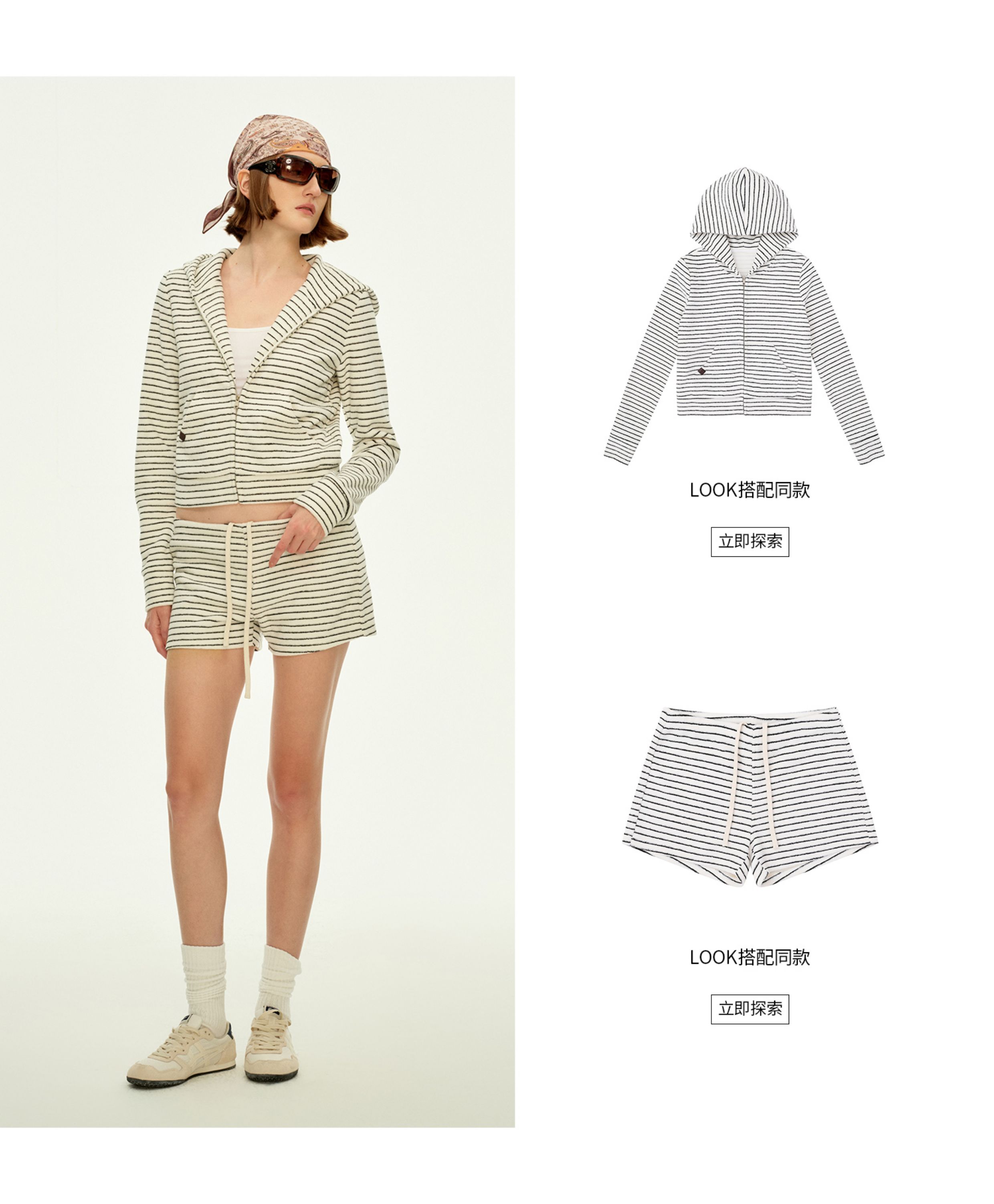 Firstfloor Terry Velvet Retro Stripesd Light and Thin Early Autumn Cardigan Loose Short Casual Sweatshirt Jacket for Women
