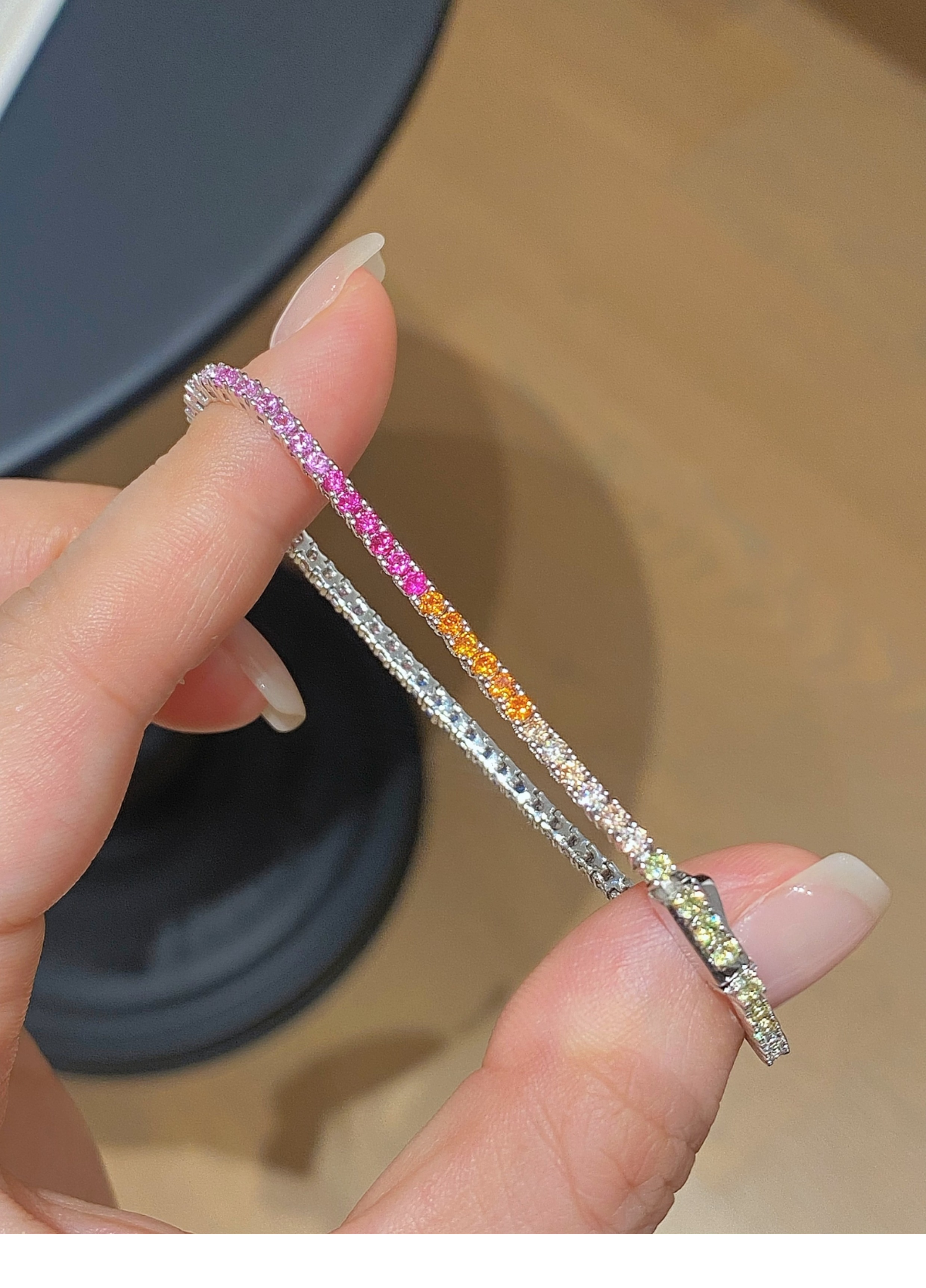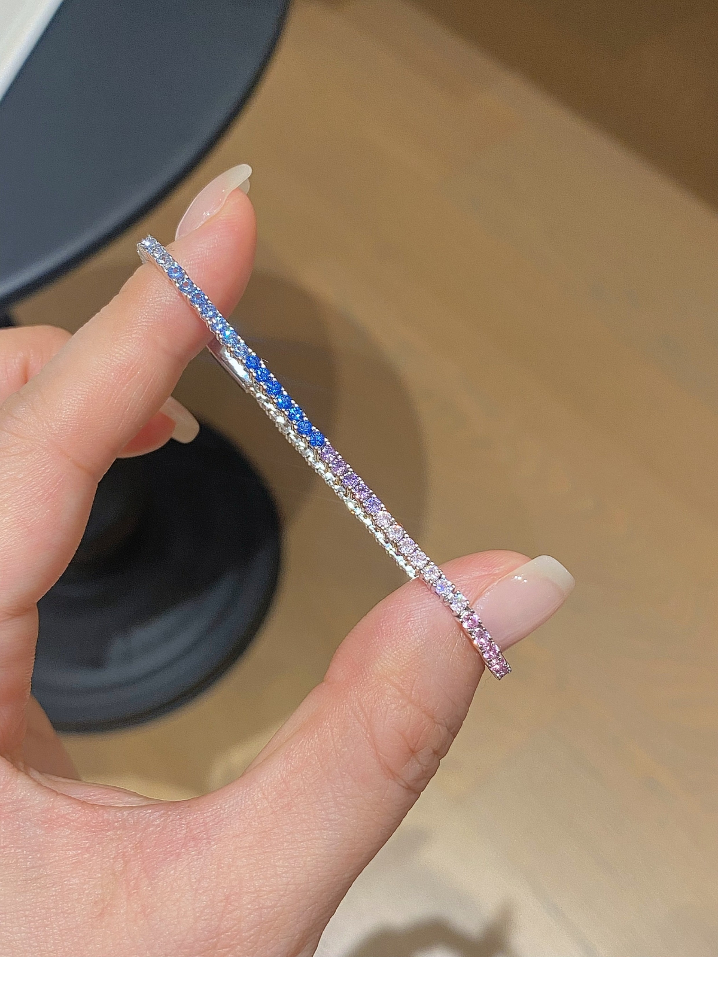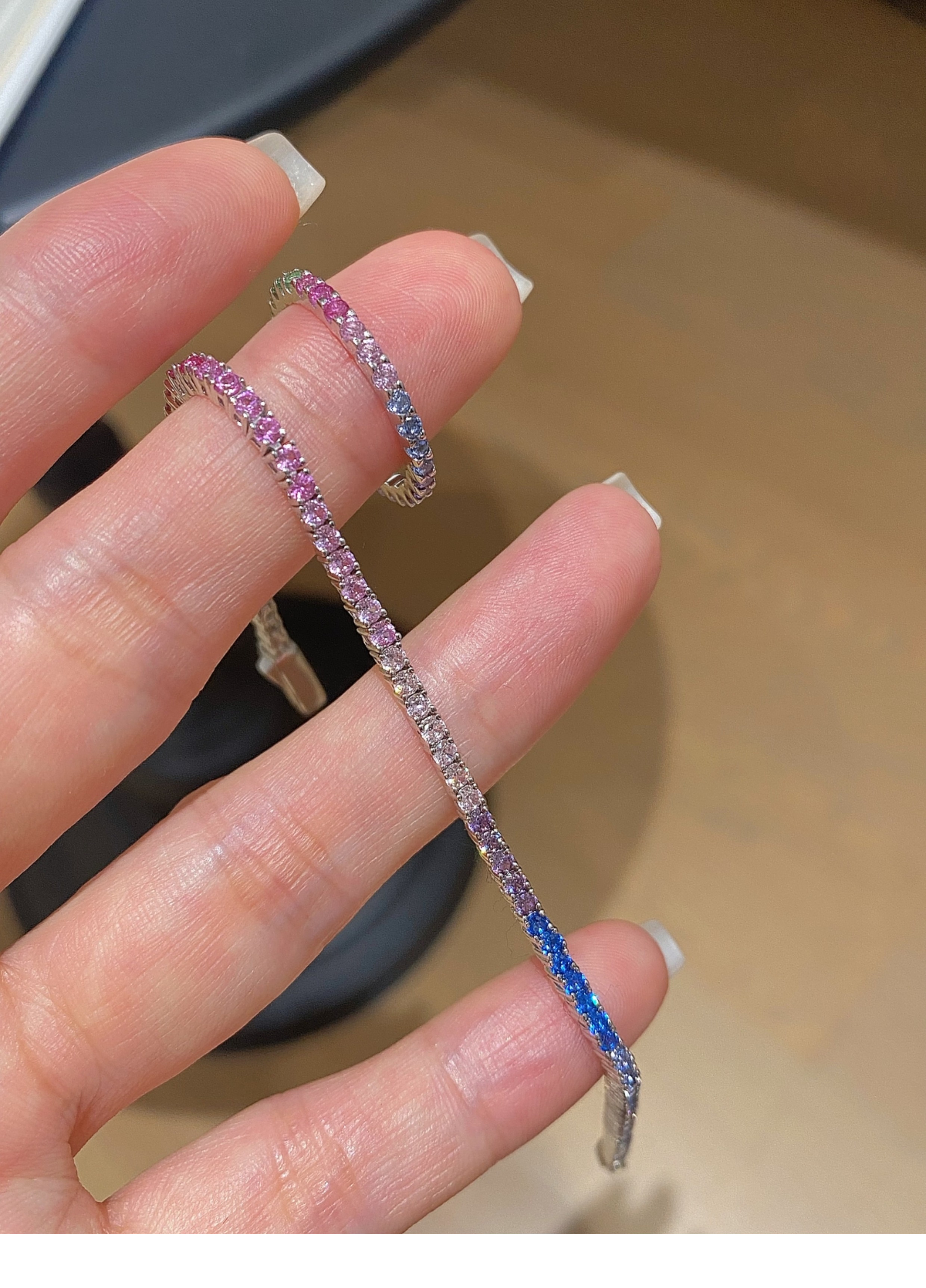 Candy Mood 3-Point Diamond Rainbow Diamond Bracelet 925 Sterling Silver Gradient Design Light Luxury High-End High-Carbon Diamond