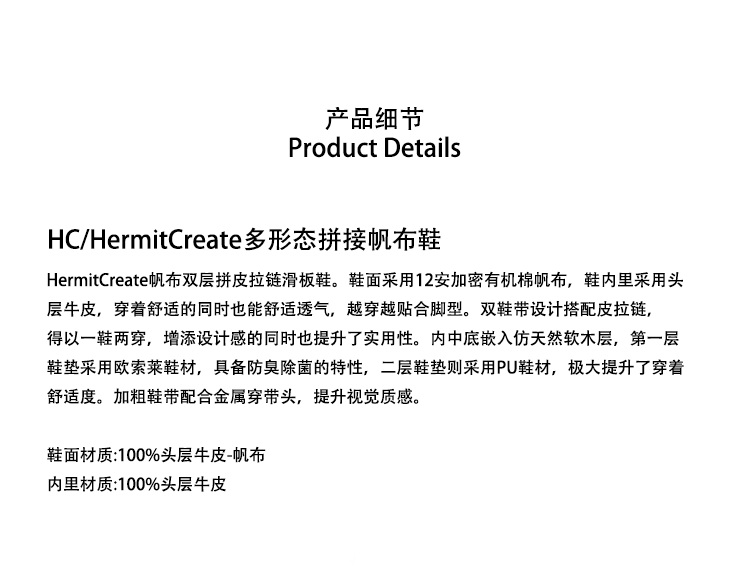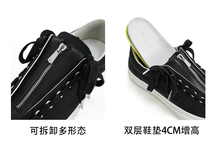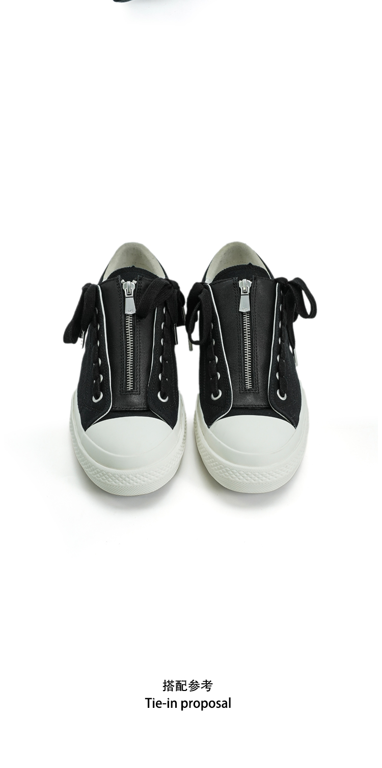 Hc/Hermitcreate Canvas Double-Layer Leather Zipper Skateboard Shoes Vulcanized Sports Sneakers High Variety