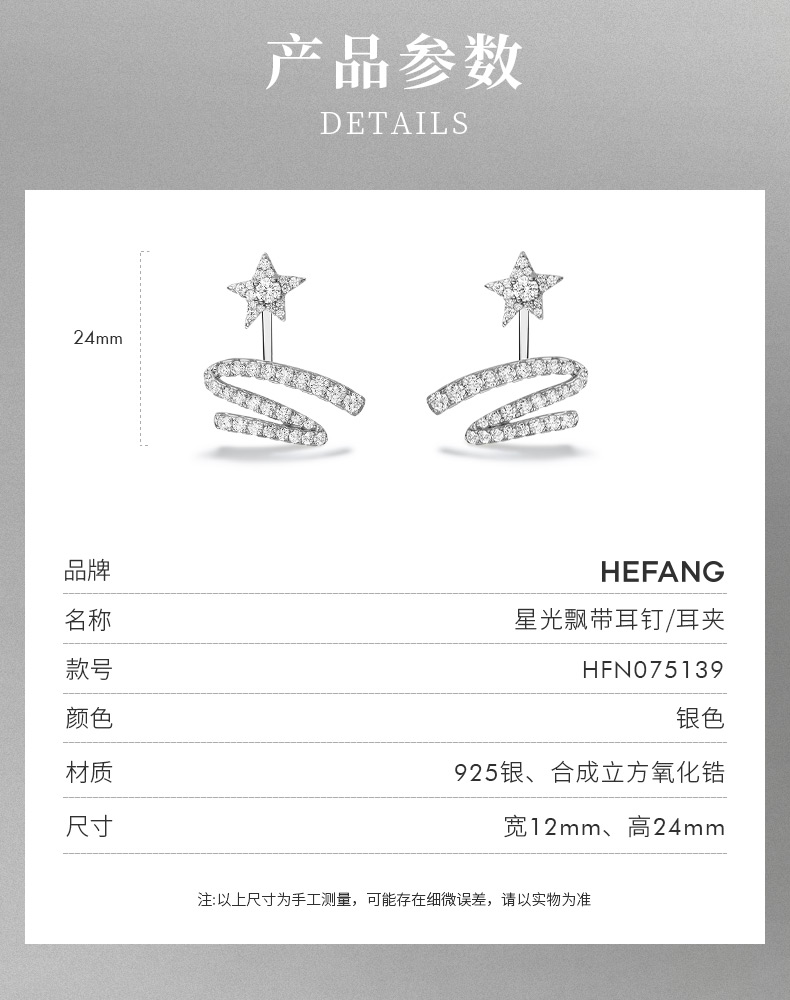 Hefang Jewelry Starlight Ribbon Earrings Light Luxury Accessories High-End Women's Birthday Gift