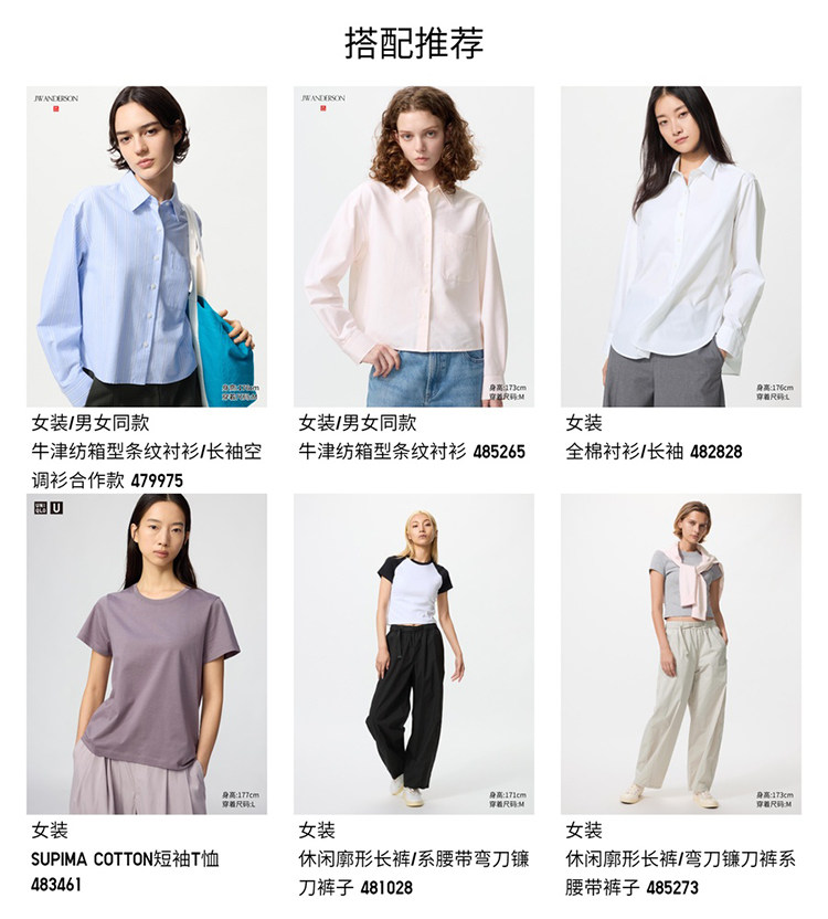 Uniqlo Women's and Men's Oxford Fabric Boxy Shirt/Long-Sleeve Shirt Air Conditioning Shirt Collaboration Model 479974