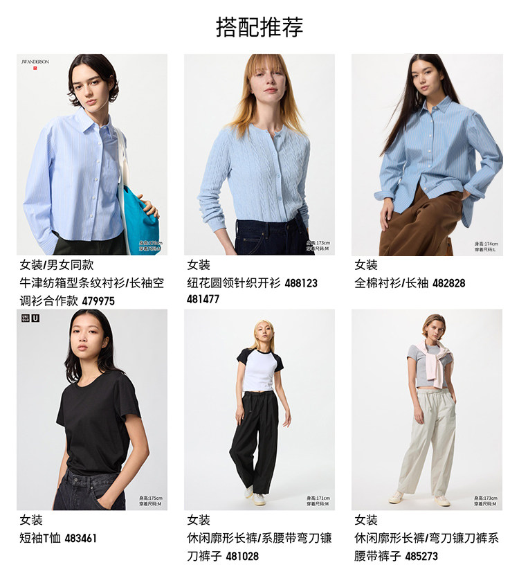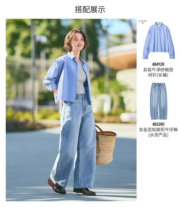 Uniqlo Collaboration Model/Women's Oxford Fabric Boxy Shirt/Long-Sleeve Shirt 484928 479974