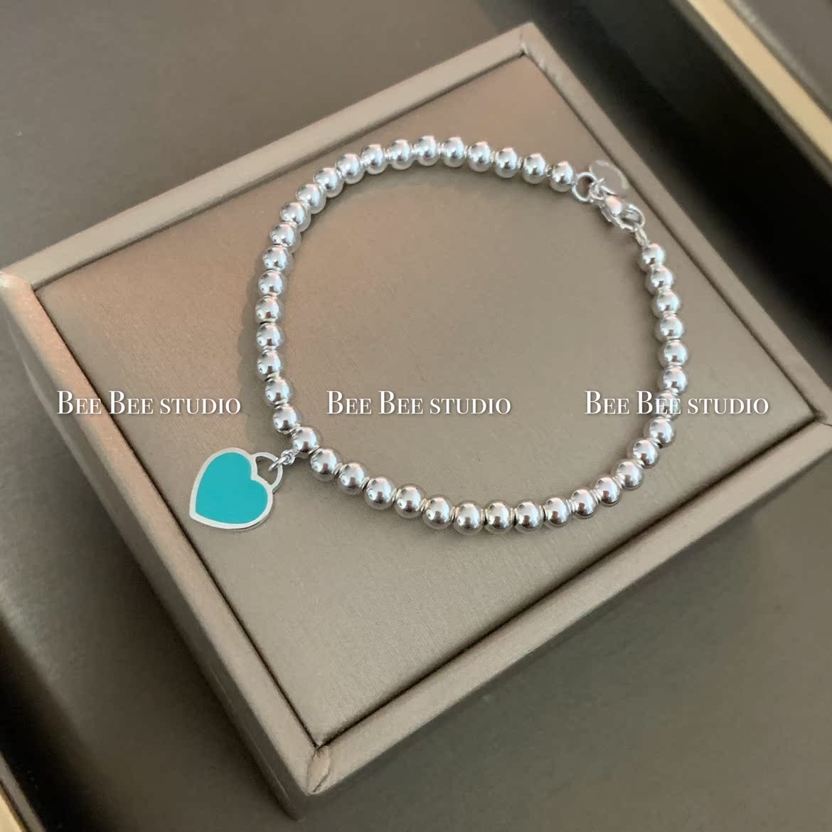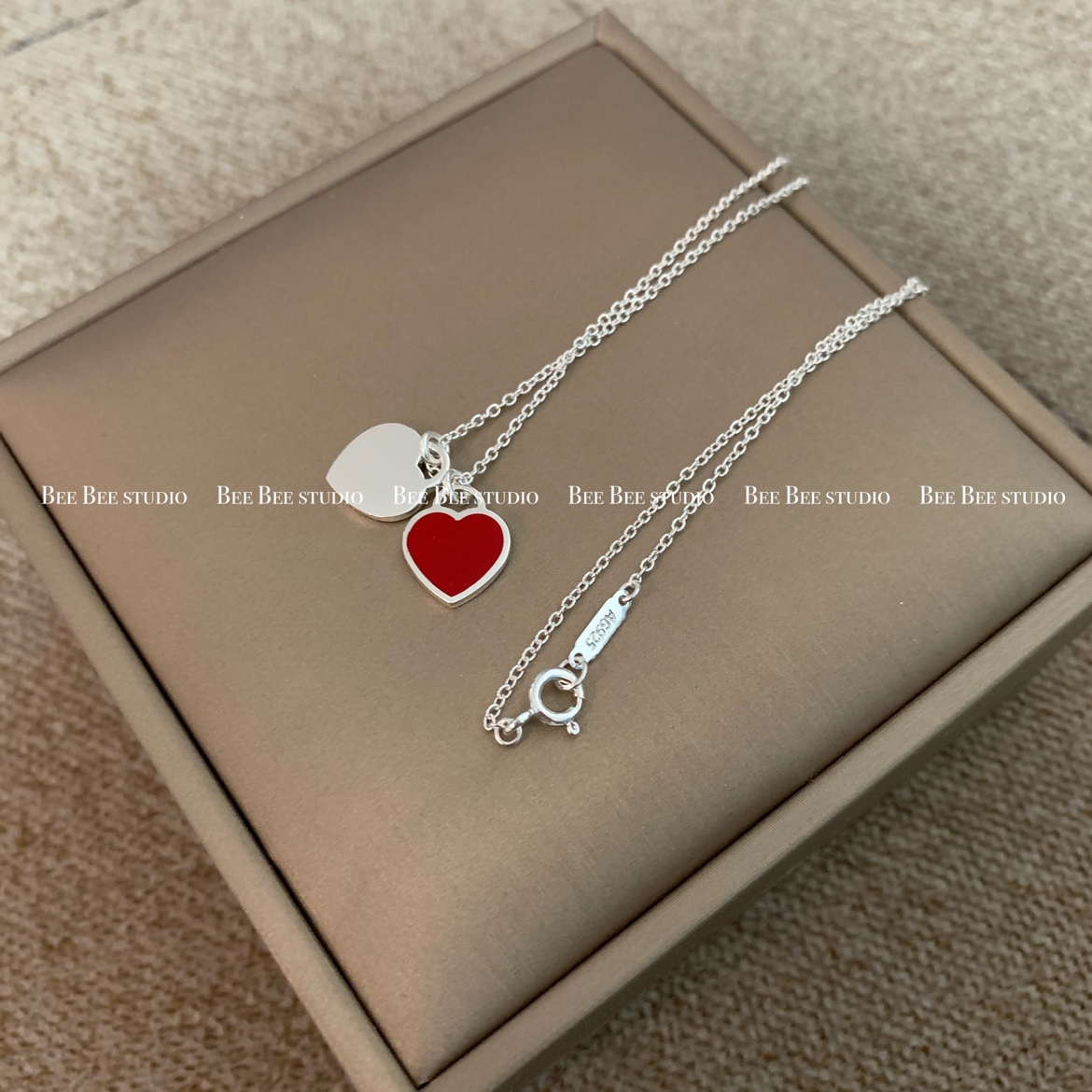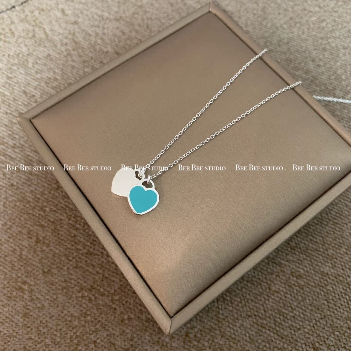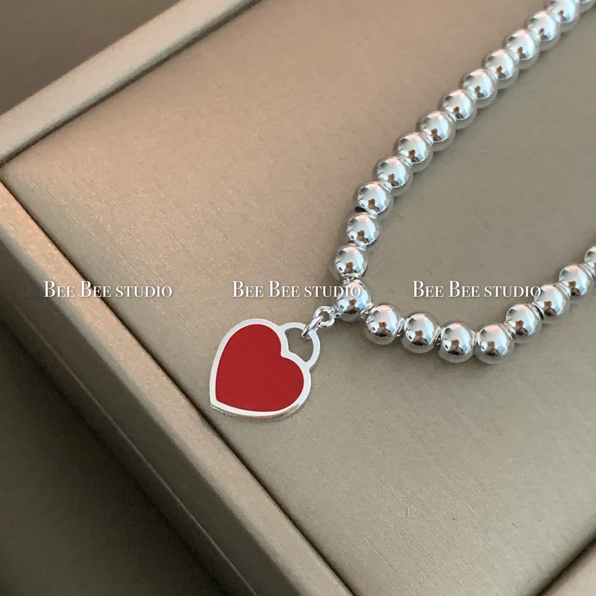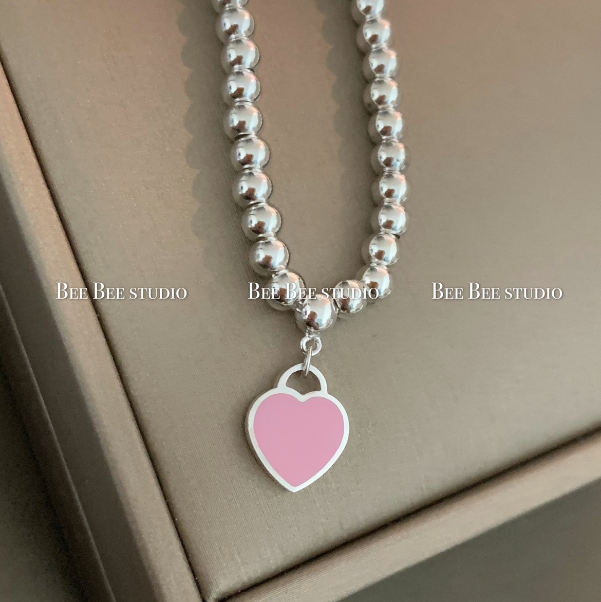 Seiko Edition 925 Sterling Silver Heart Enamel Silver Bead Bracelet Double Heart Necklace Peach Heart Blue Heart Pink Heart Chinese Red for Women