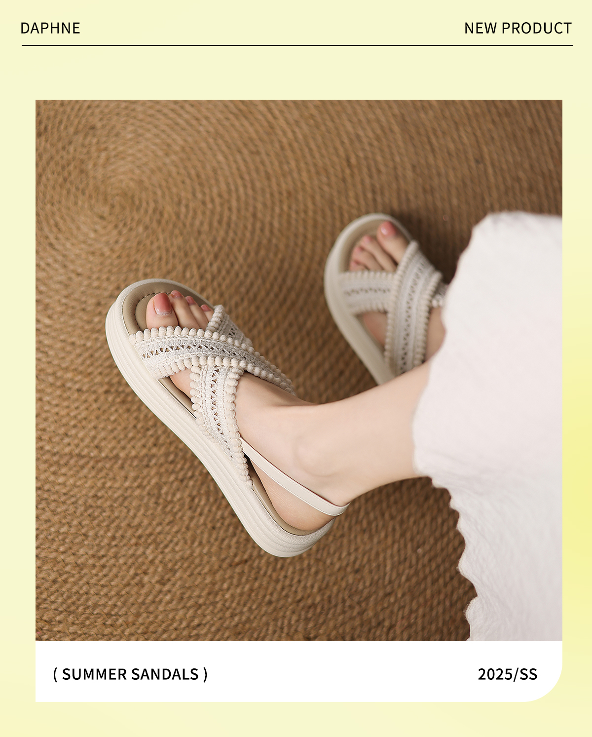 Daphne Bohemian Sandals Women's Summer Outerwear 2025 New Braided Thick-Soled Beach Shoes Ethnic Style Sandals and Slippers