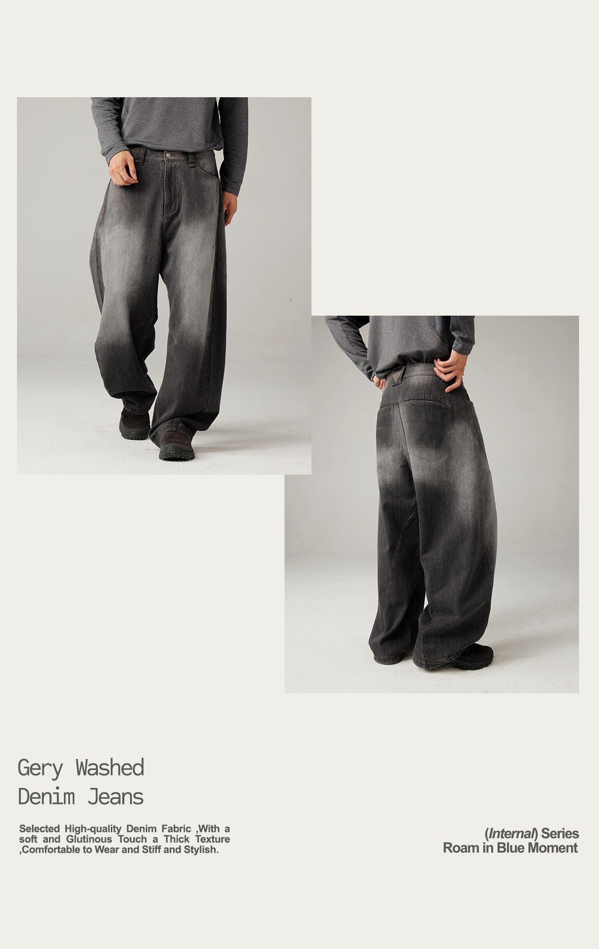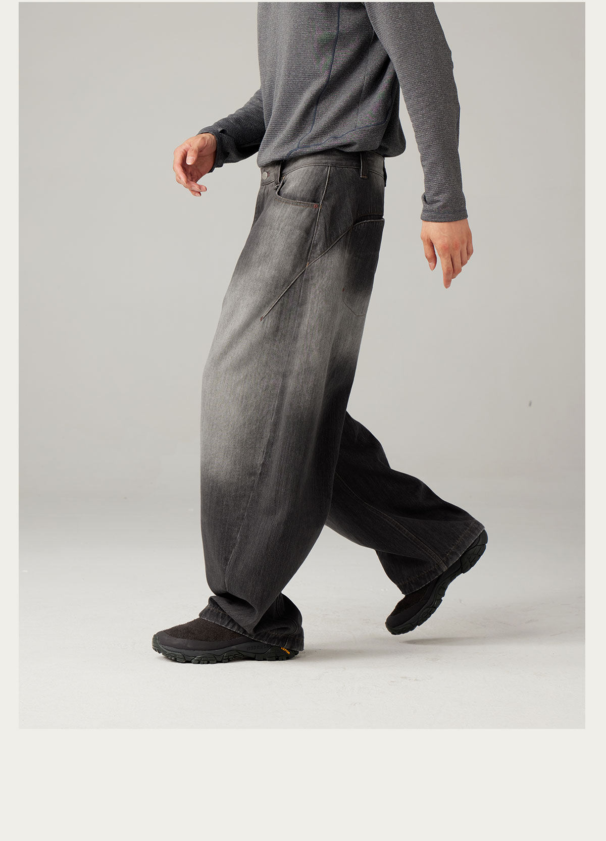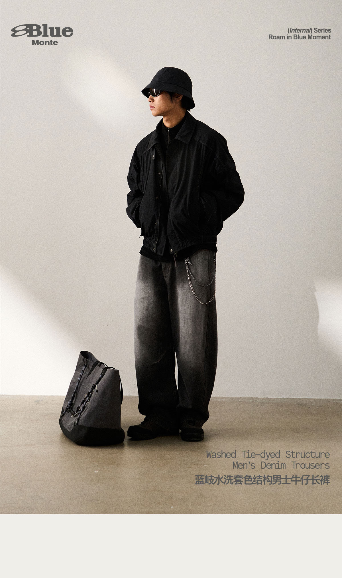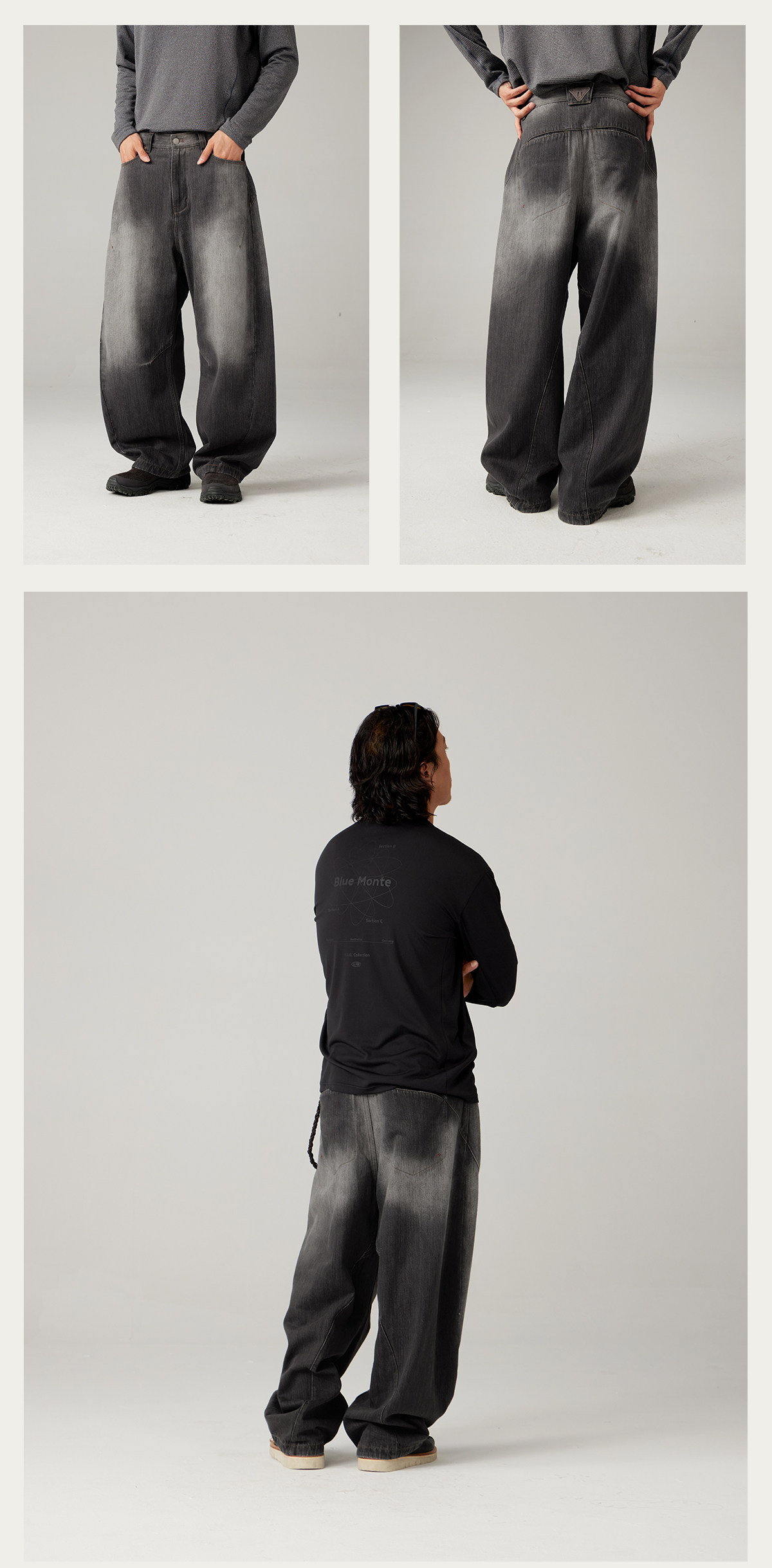 Blue Monte Washed Vintage Distressed Color-Blocked Jeans Loose Casual Trendy Structured Scimitar Pants for Men