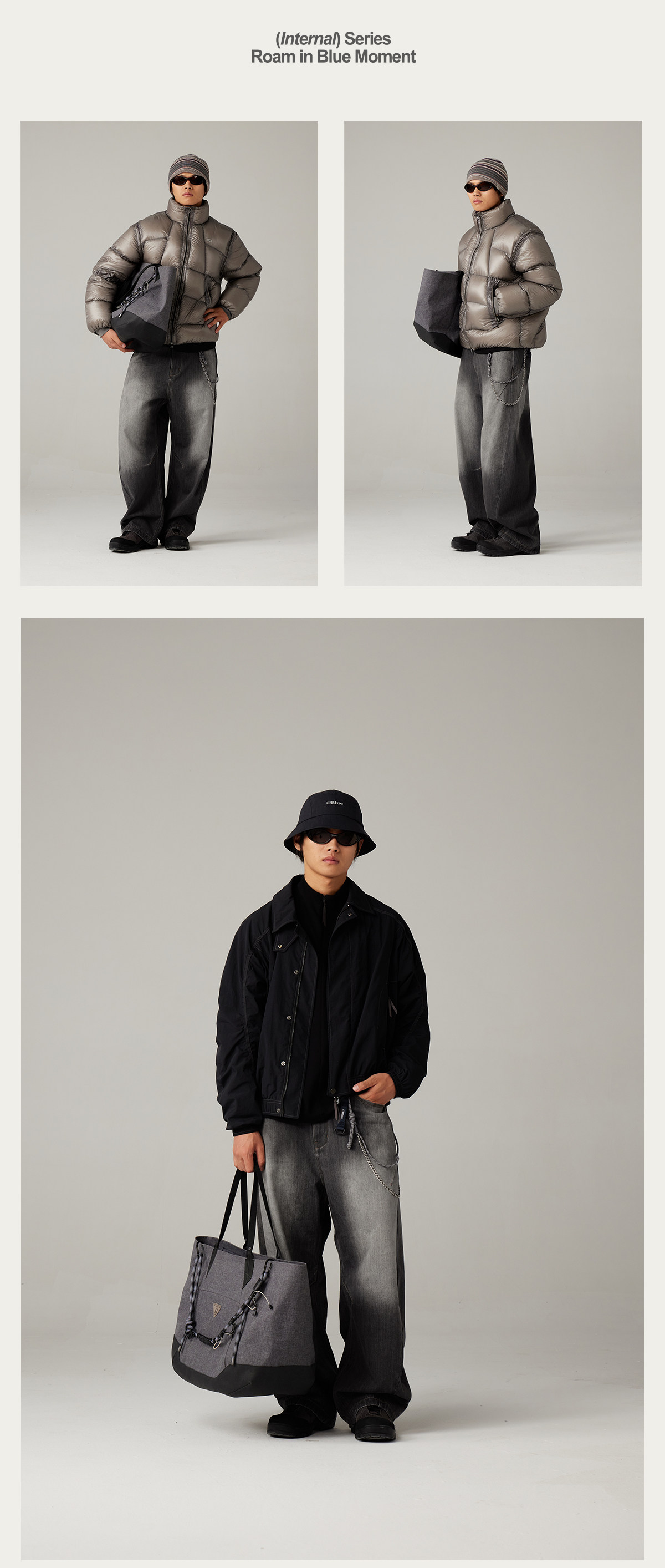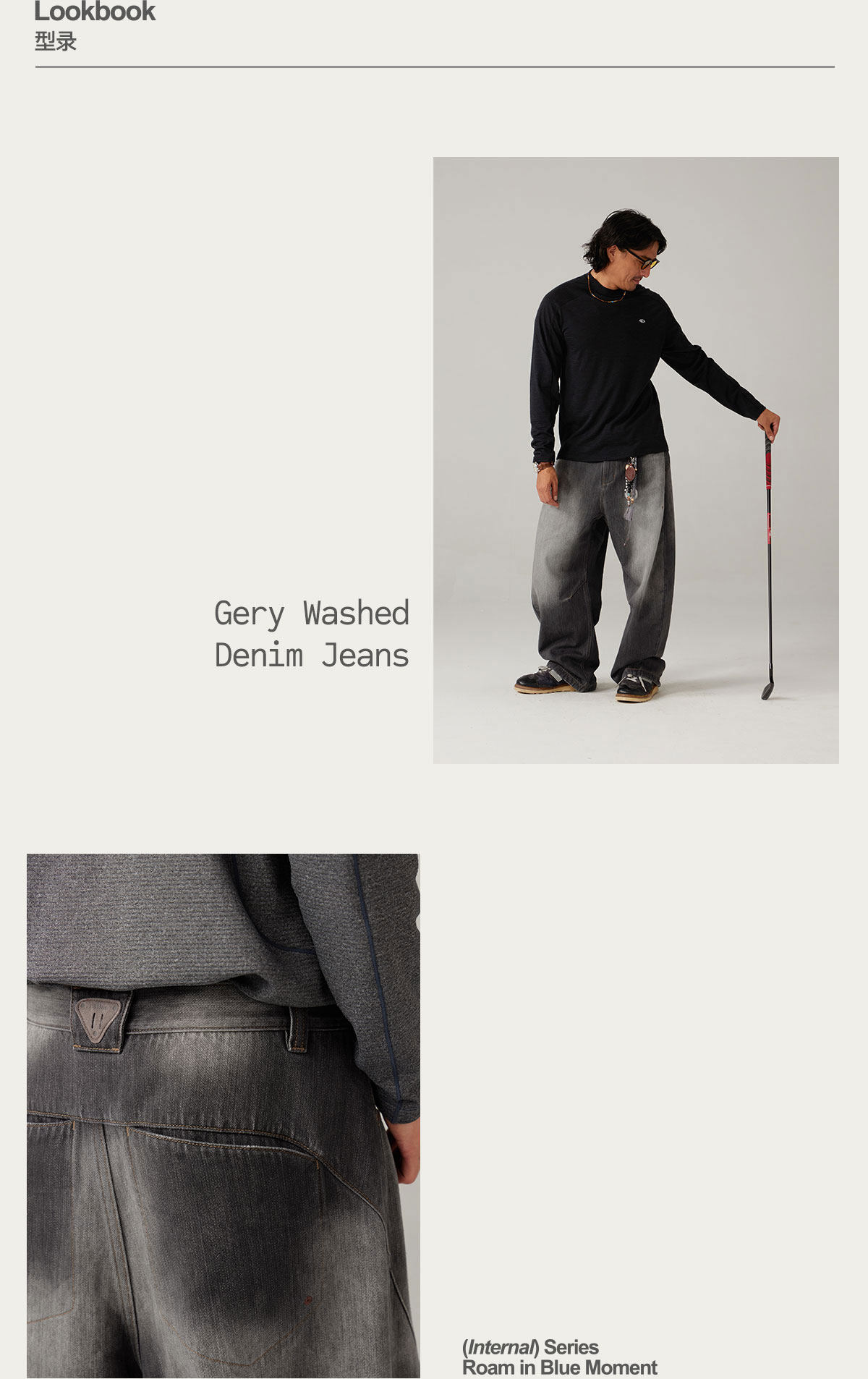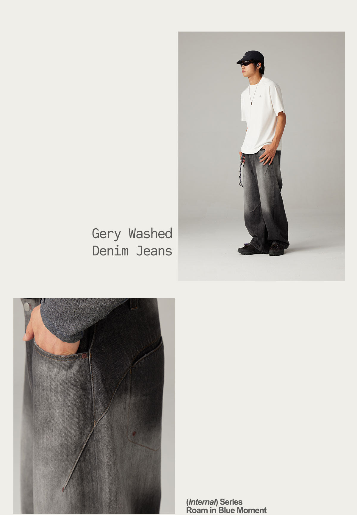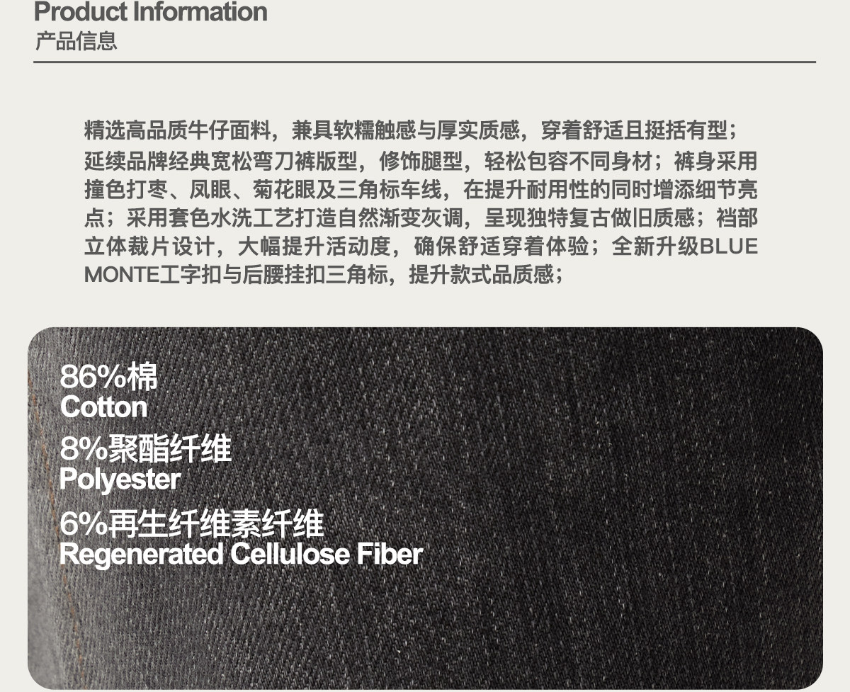 Blue Monte Washed Vintage Distressed Color-Blocked Jeans Loose Casual Trendy Structured Scimitar Pants for Men