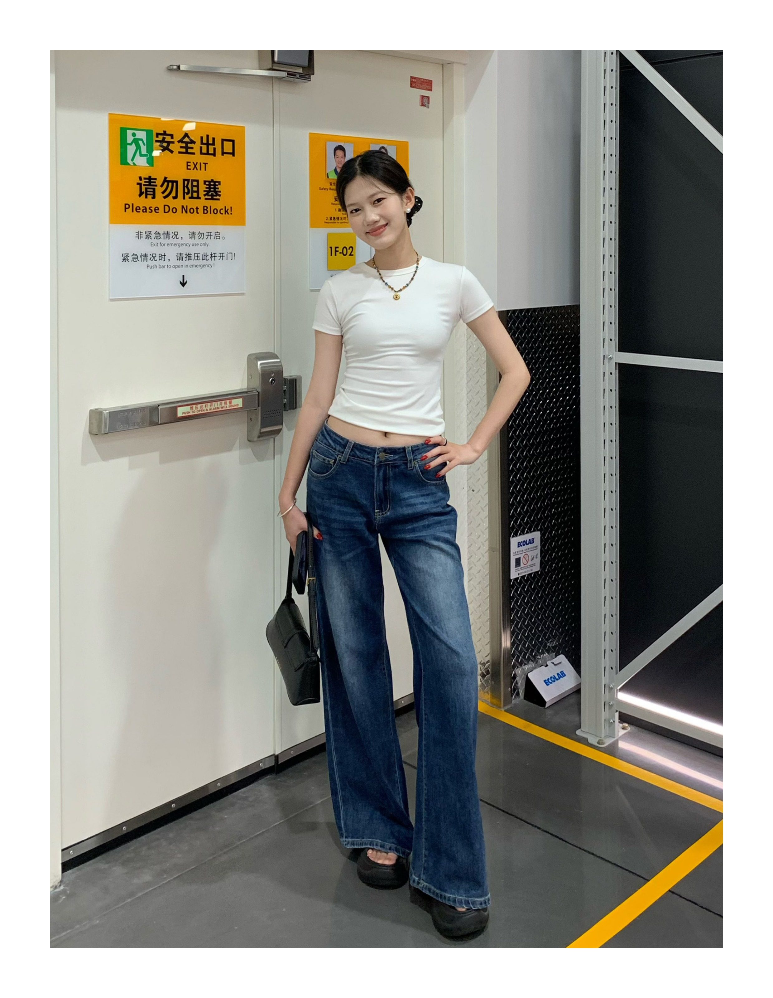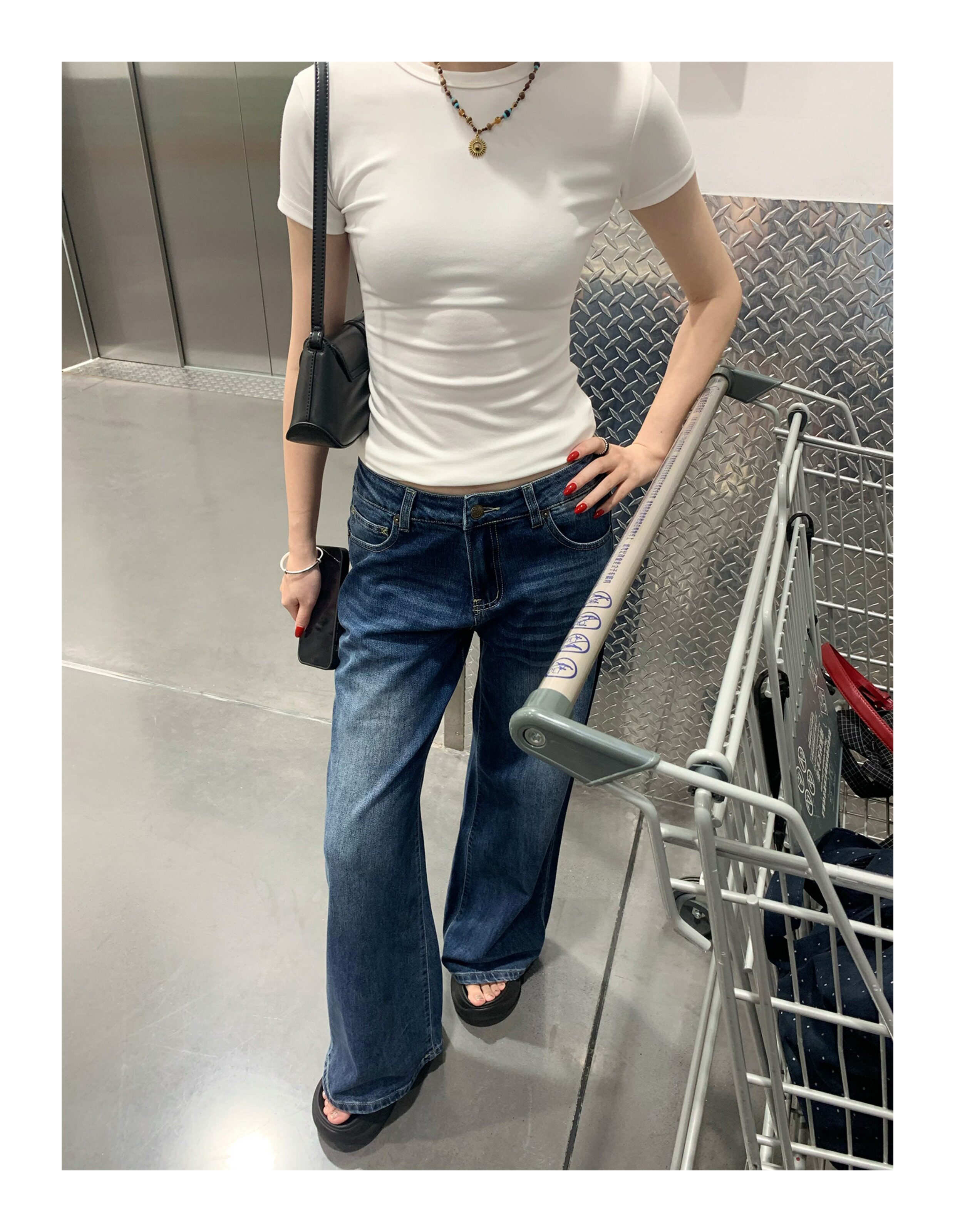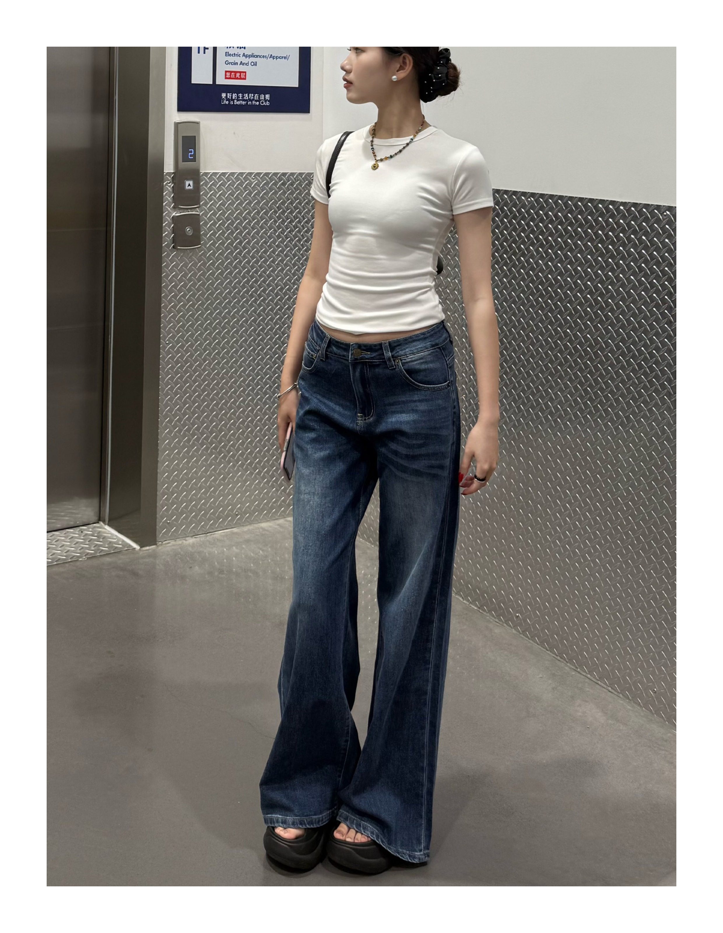 Sadsoil Interlock Blue Flared Jeans for Women, Low-Waisted, Slim-Fitting, Distressed Long Pants, Wide-Leg Pants for Autumn and Winter