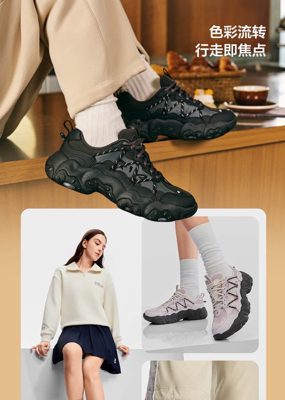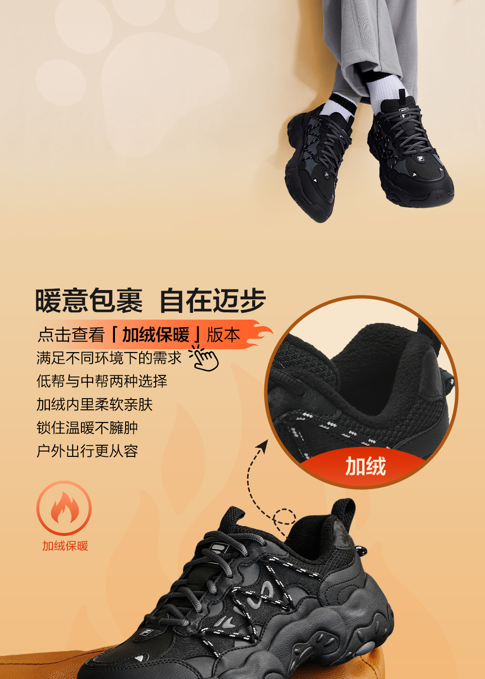 Fila Official Women's Shoes Cat Claw 6 Dad Sneakers Sports Shoes 2025 Winter New Thick-Soled Casual Shoes