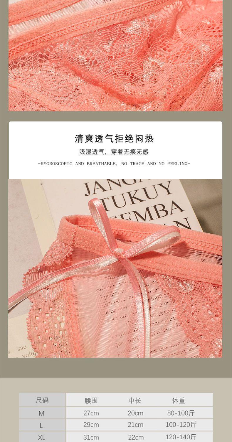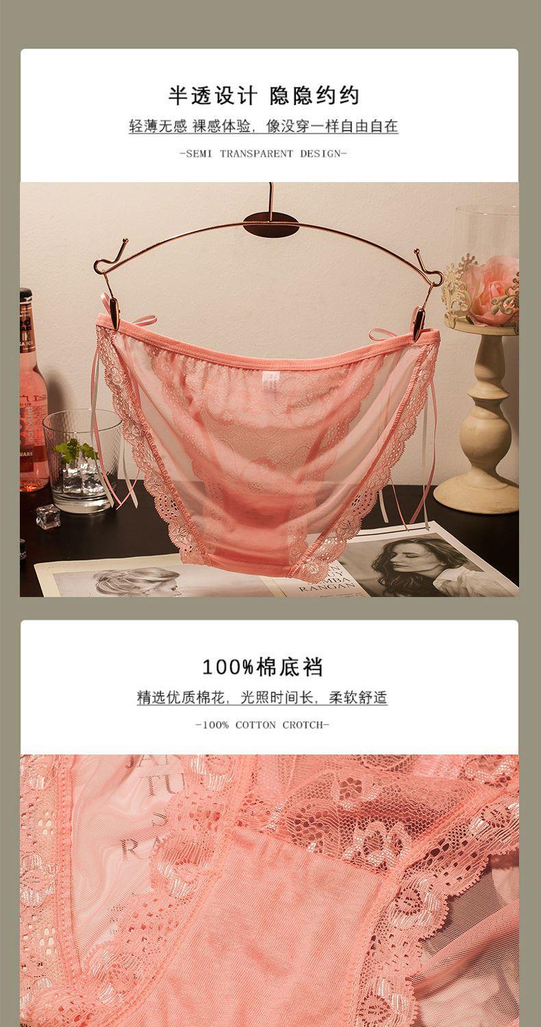 Girl's Beautiful Lace Transparent Thin Panties, Feminine Bow, Pure Desire, Low-Waist, Hip-Lifting Briefs for Women
