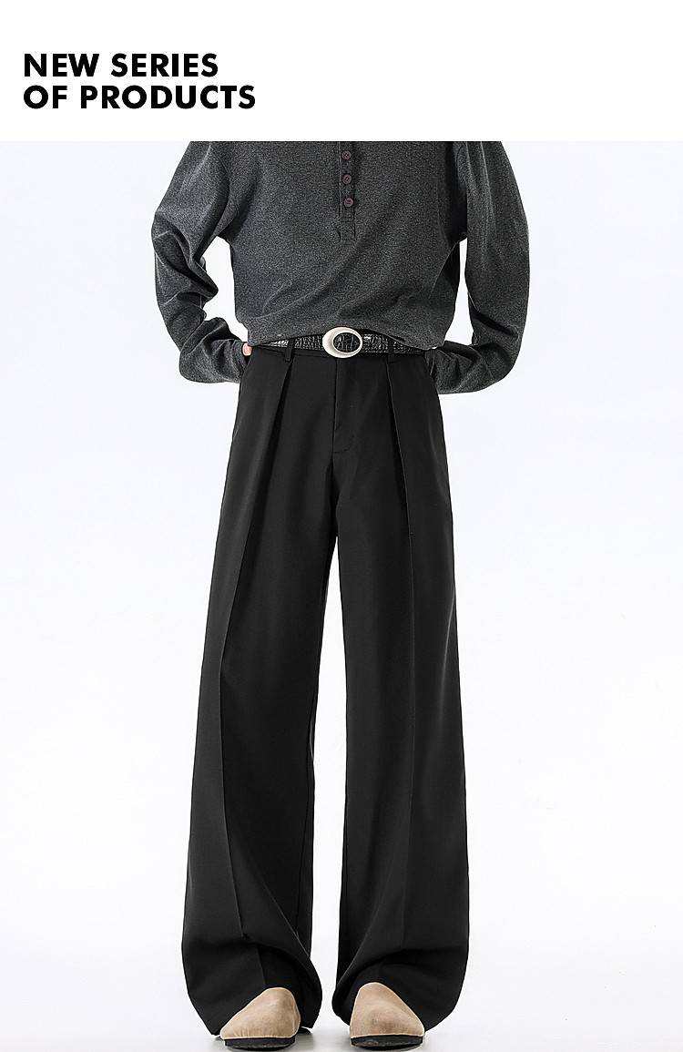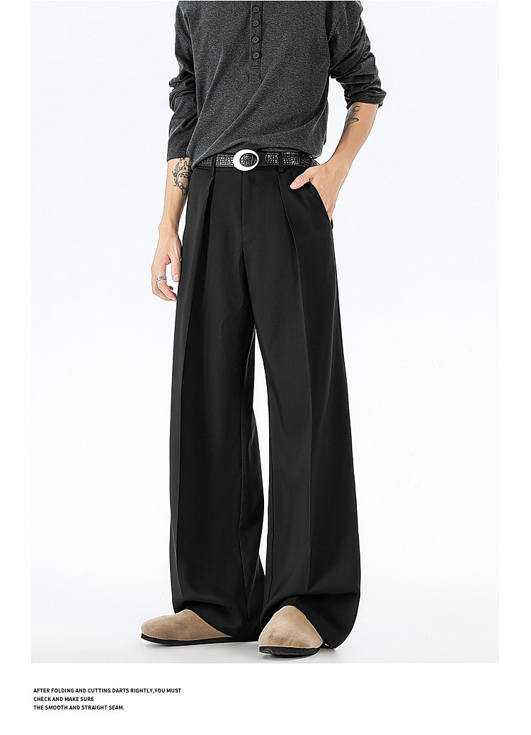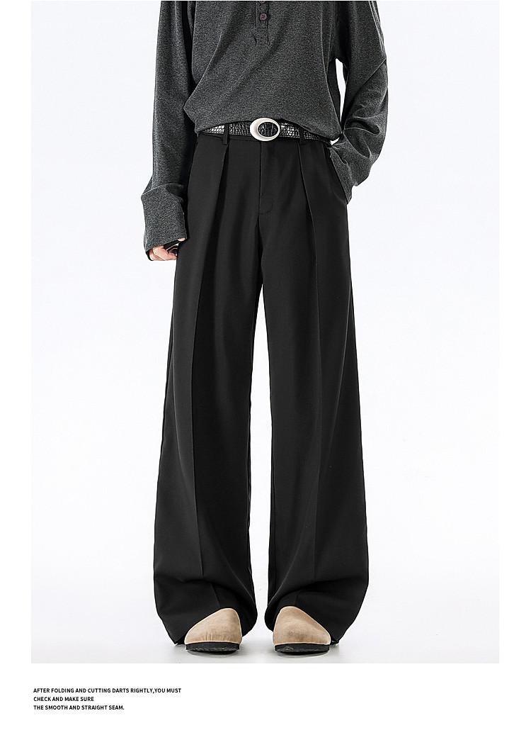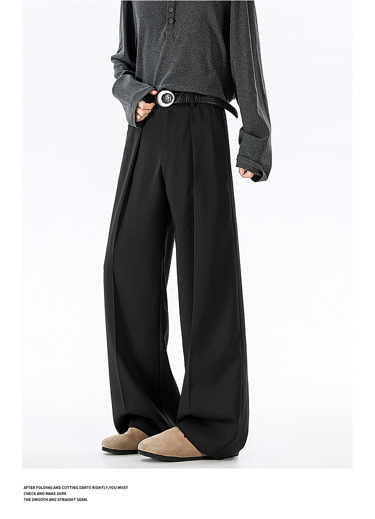 Wukong Has in Stock Three-Dimensional Pleated Black High-Waisted Suit Trousers for Men, Cleanfit, High-End Casual Straight-Leg Dress Pants