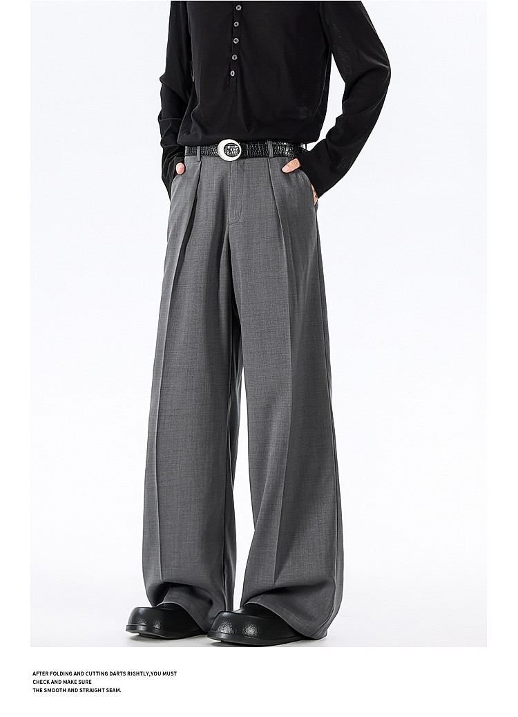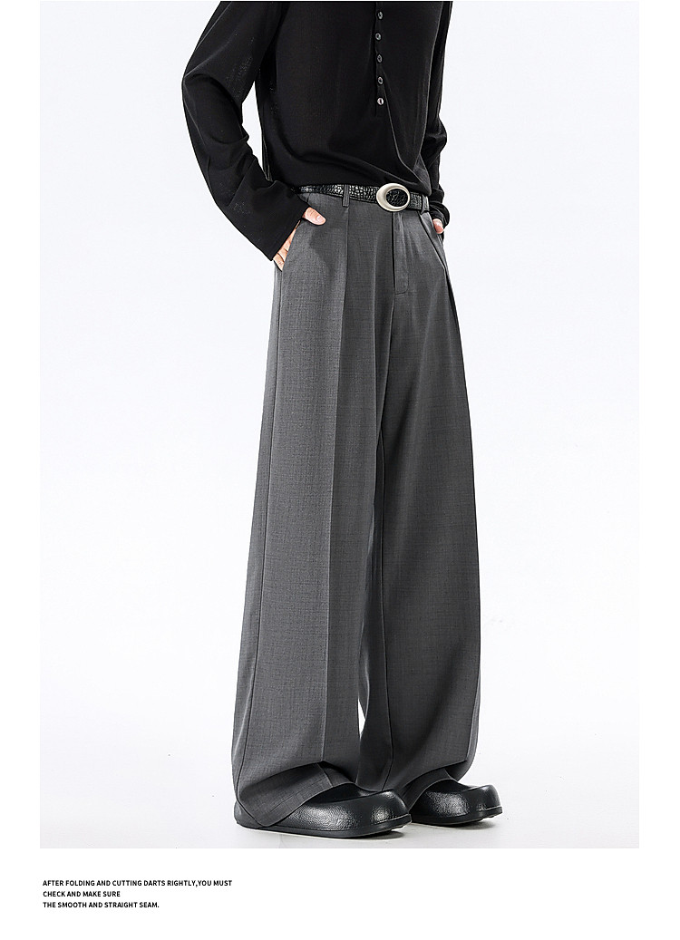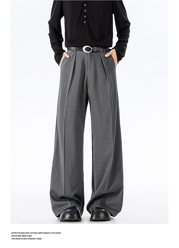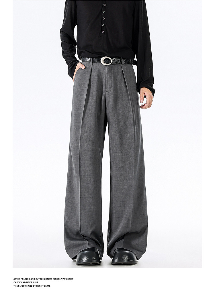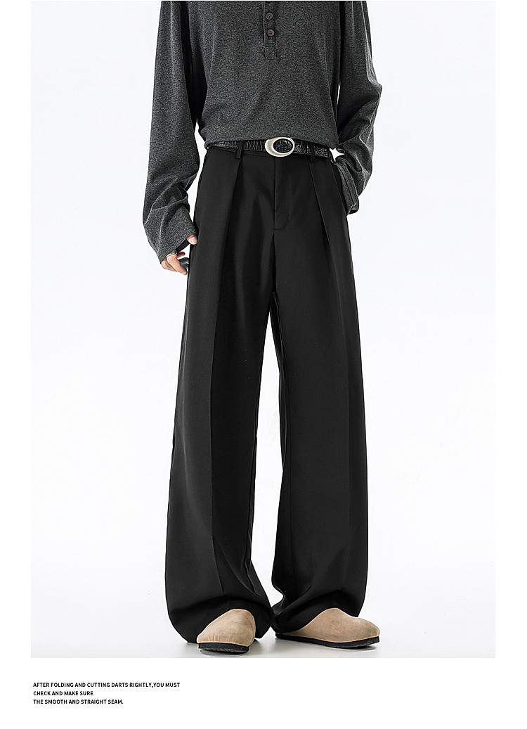 Wukong Has in Stock Three-Dimensional Pleated Black High-Waisted Suit Trousers for Men, Cleanfit, High-End Casual Straight-Leg Dress Pants