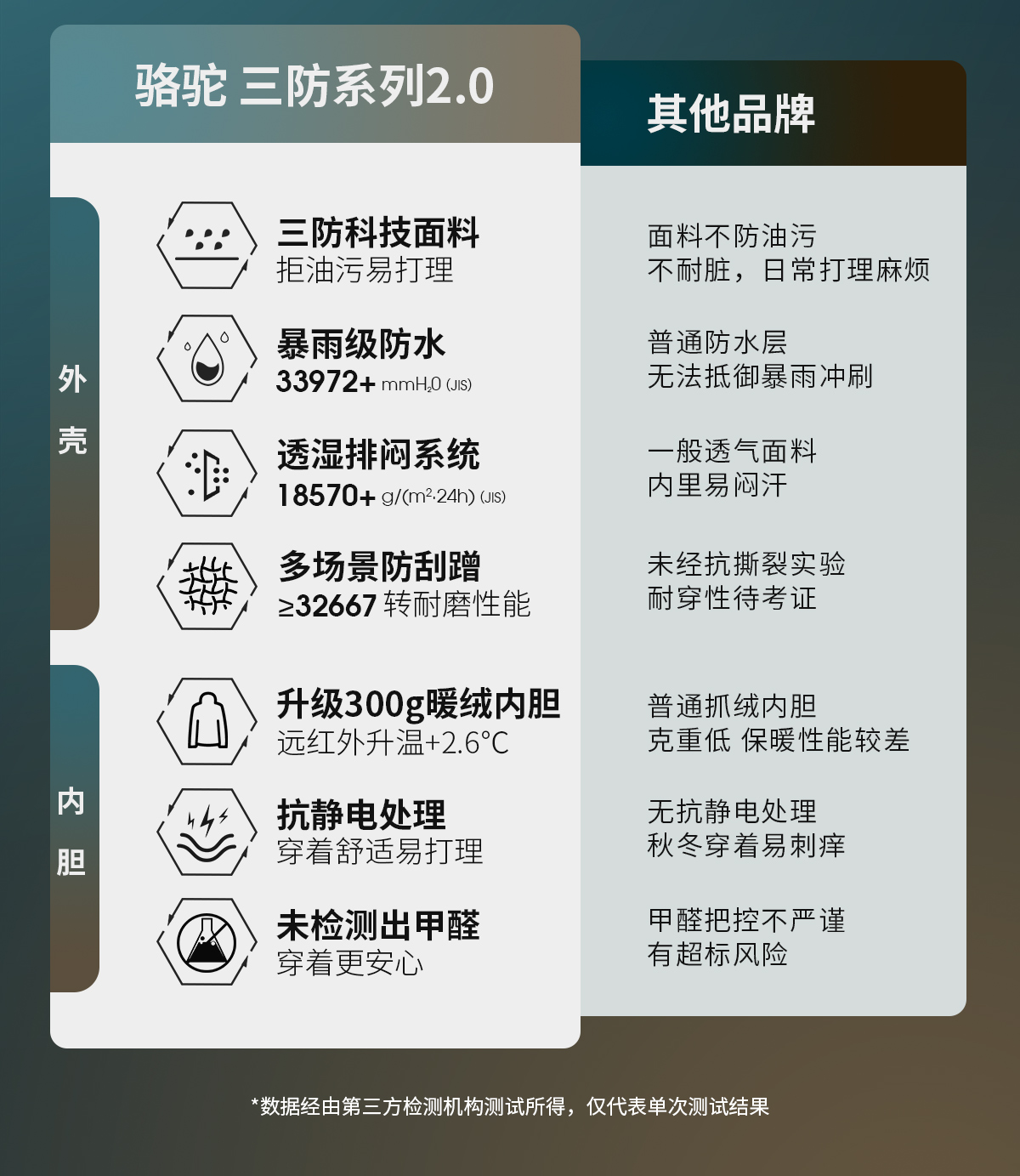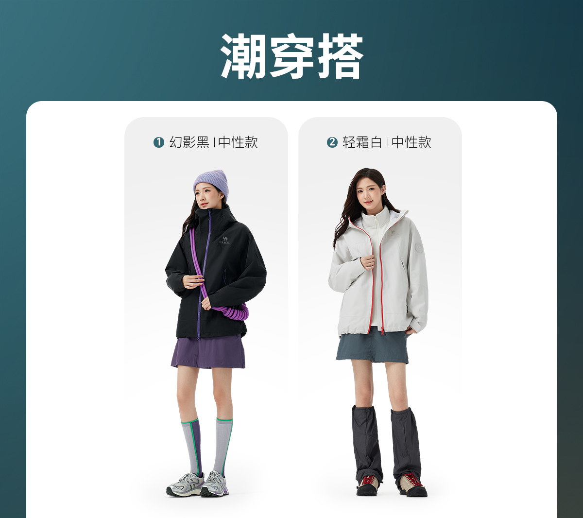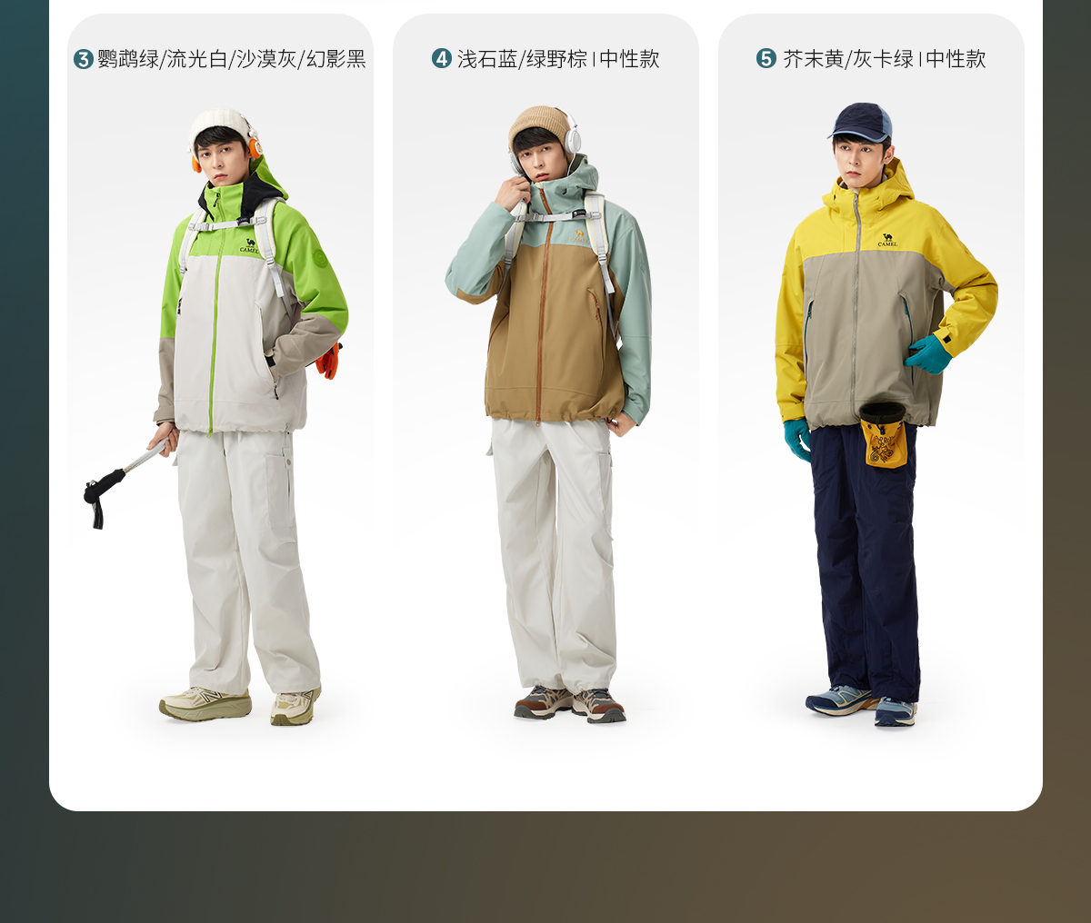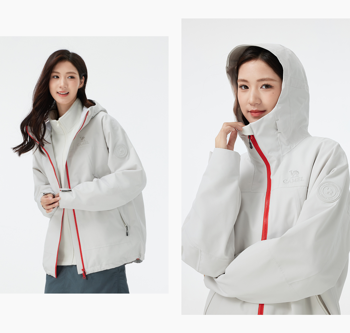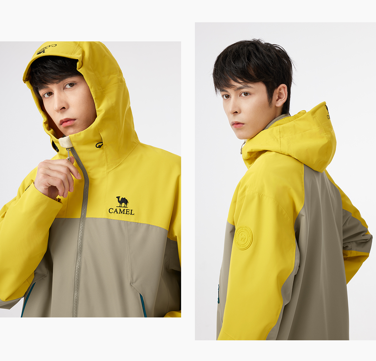 是采用三点式链接式设计,即外壳和内胆无内侧拉链链接,仅后领处及左右袖口处连接,适合户外游玩灵活穿搭。骆驼粉丝们,介意慎拍,祝骆驼粉丝们购物愉快!~