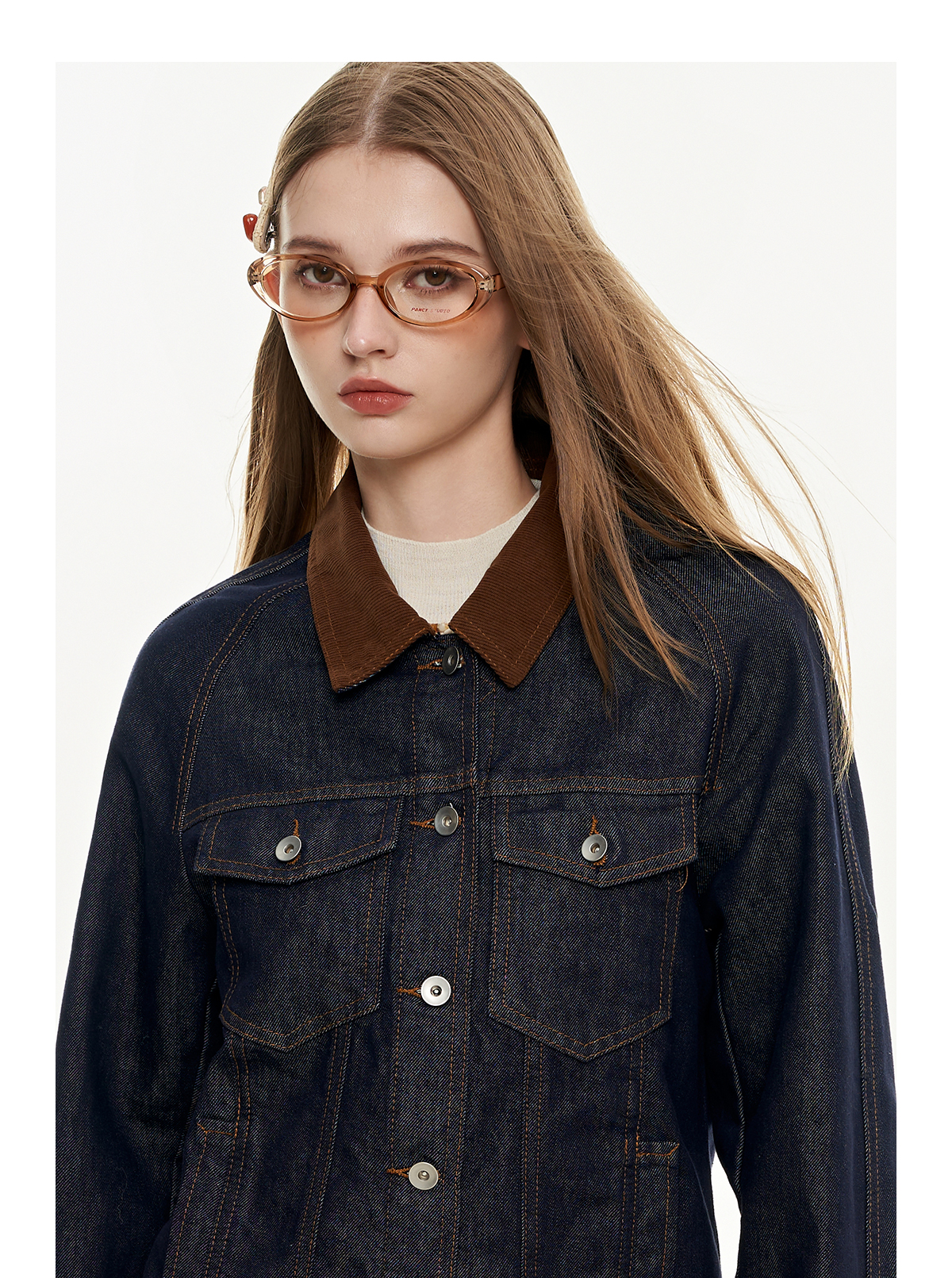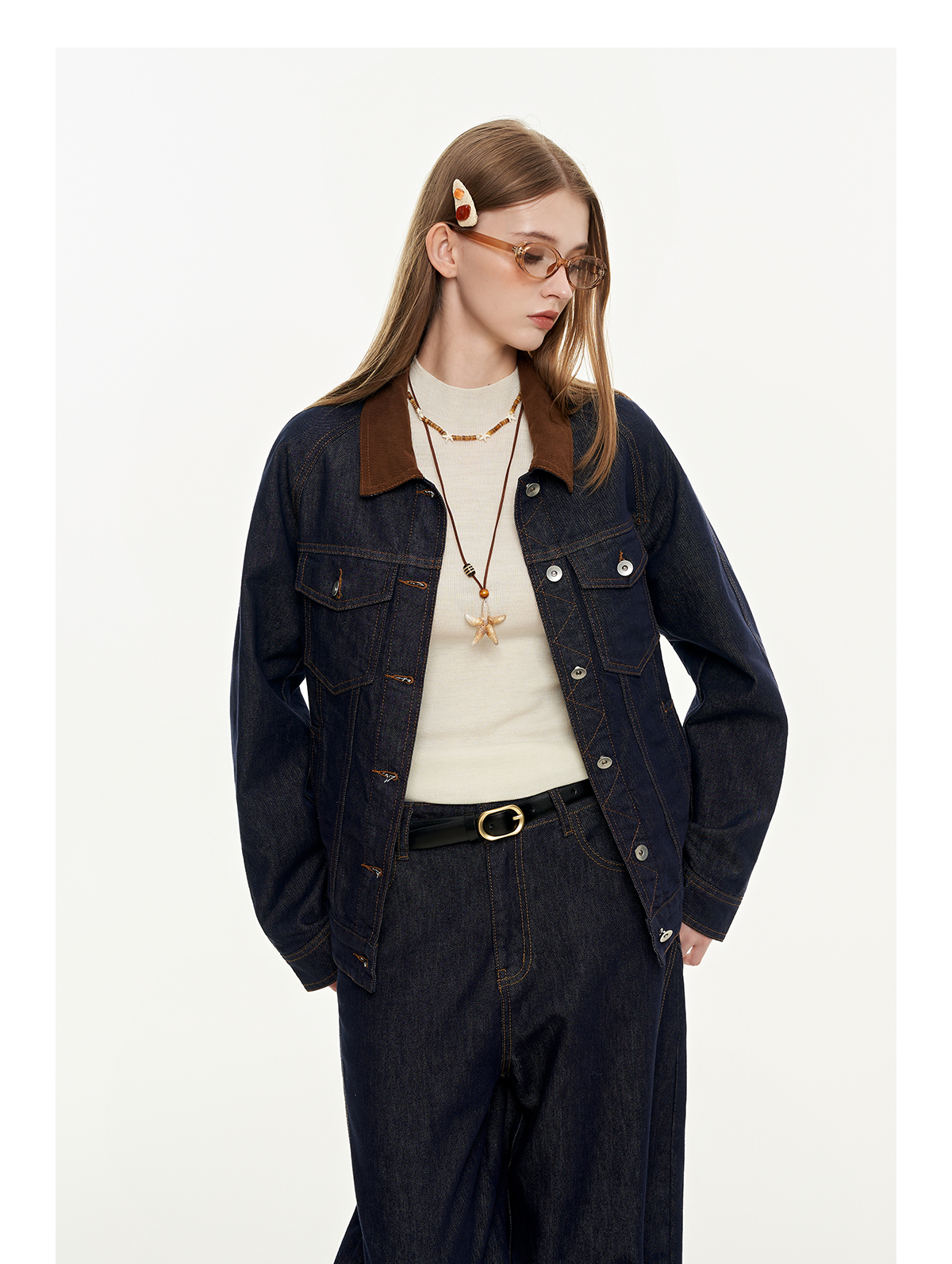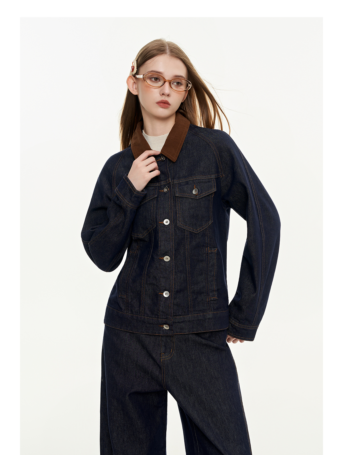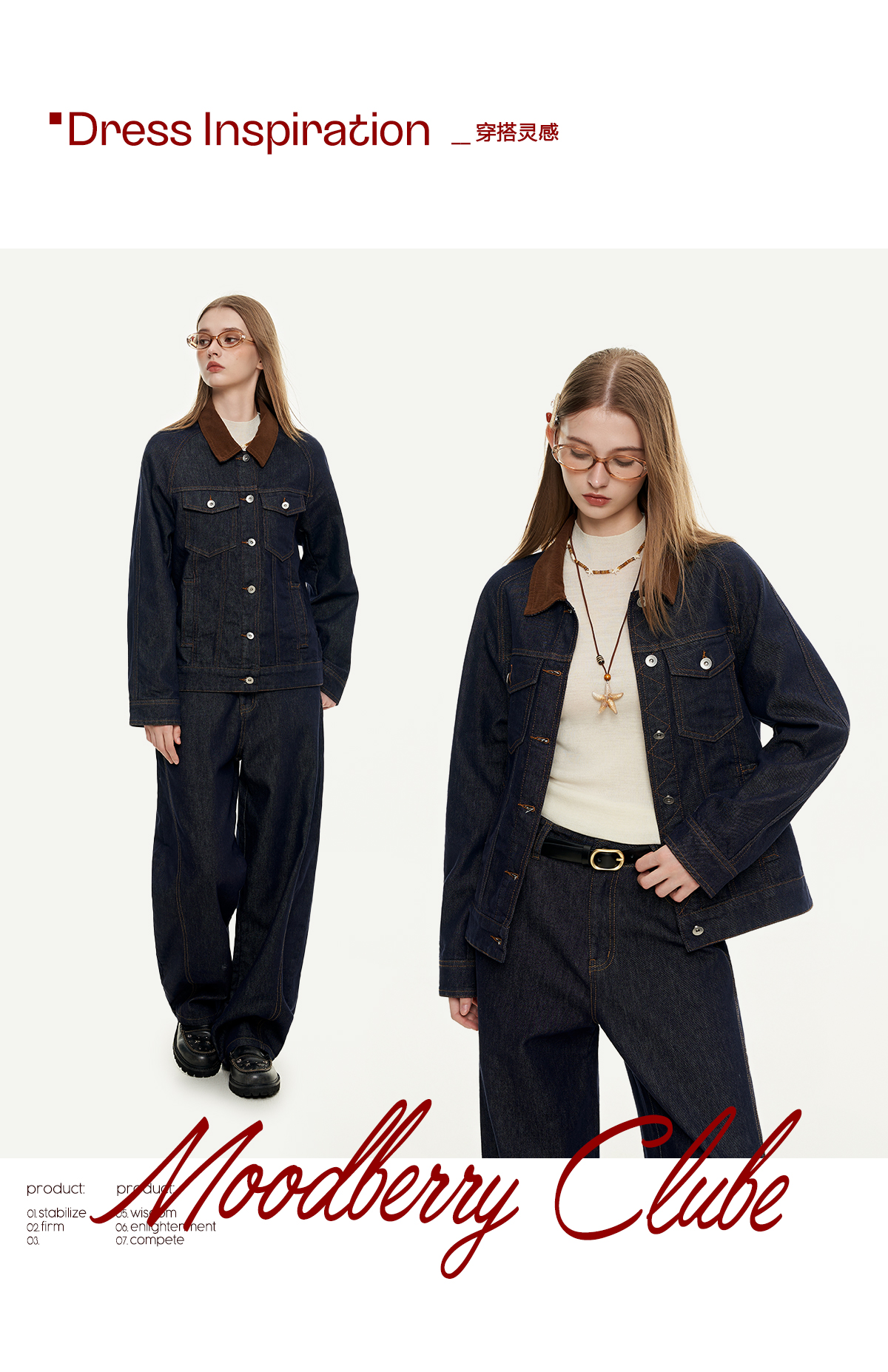 Moodberry American Retro Denim Jacket for Women, Autum New Style, Contrasting Color Lapel, Versatile Casual Top