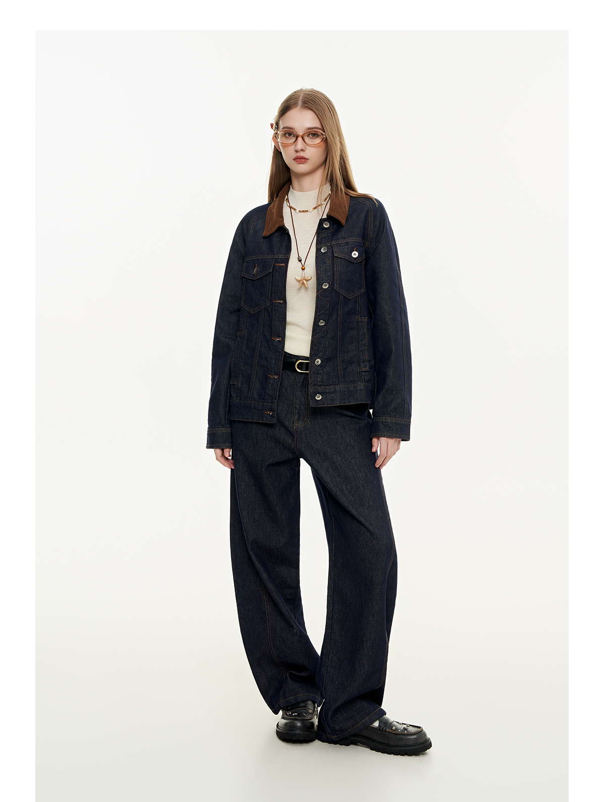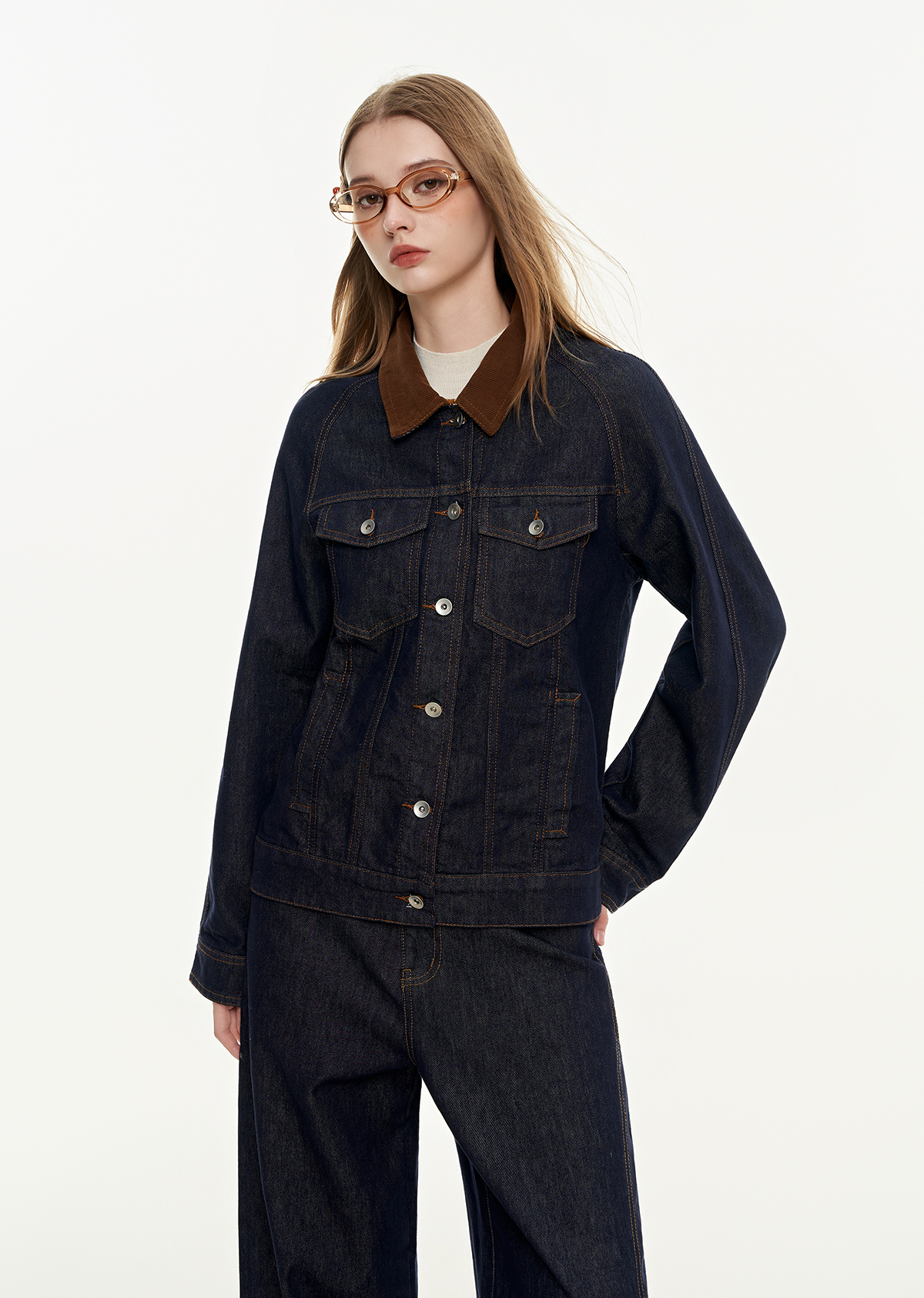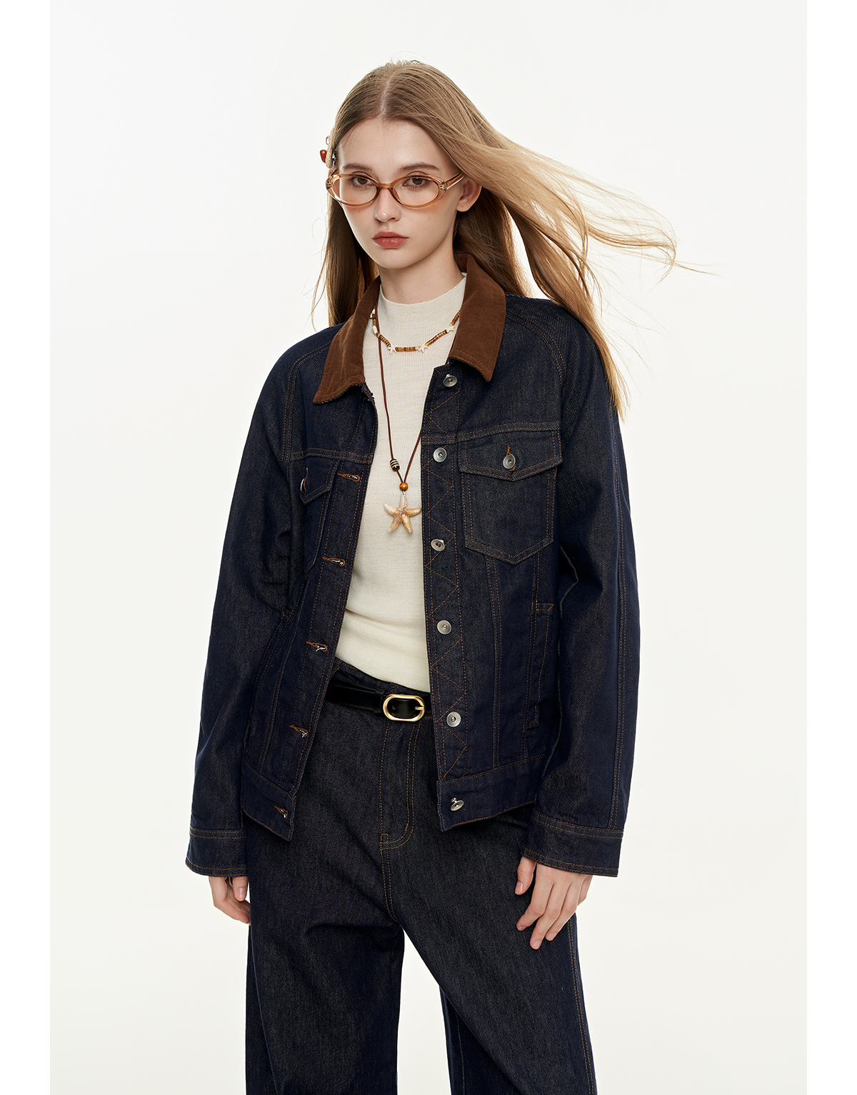 Moodberry American Retro Denim Jacket for Women, Autum New Style, Contrasting Color Lapel, Versatile Casual Top