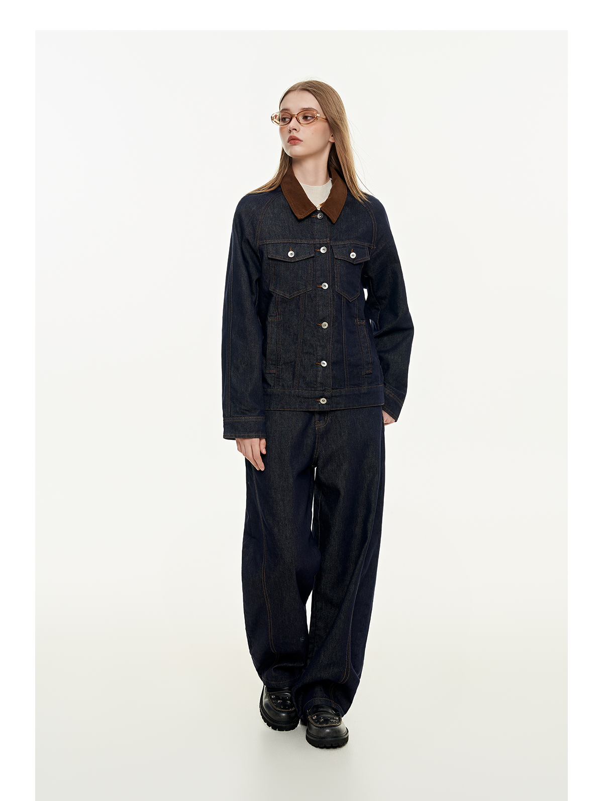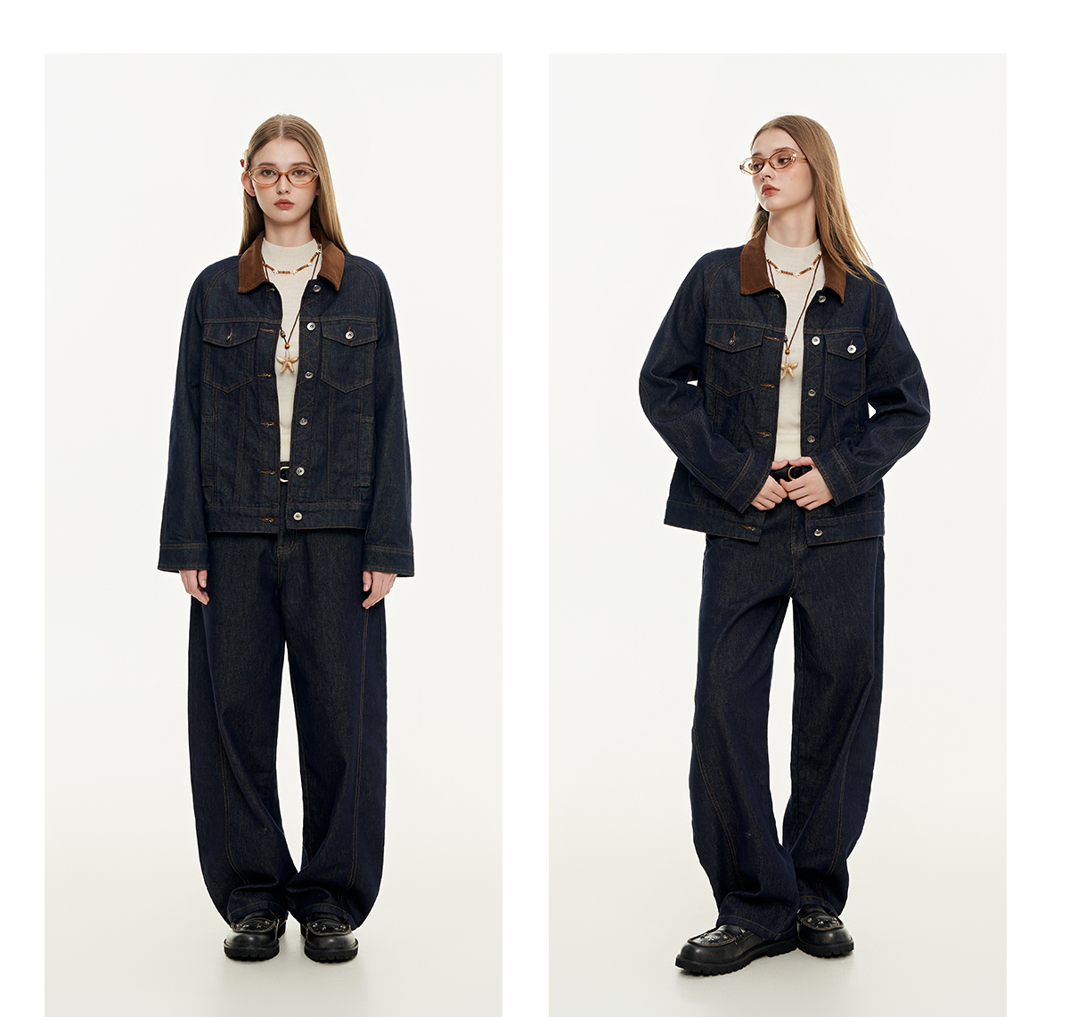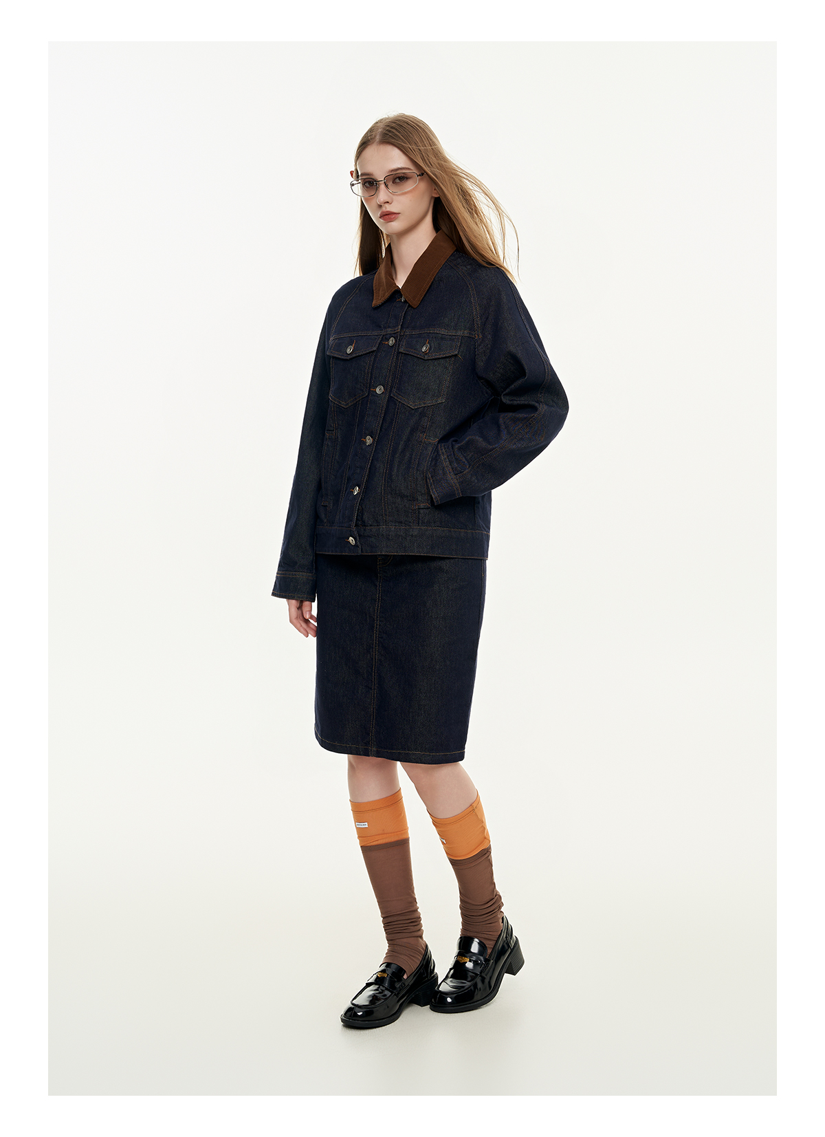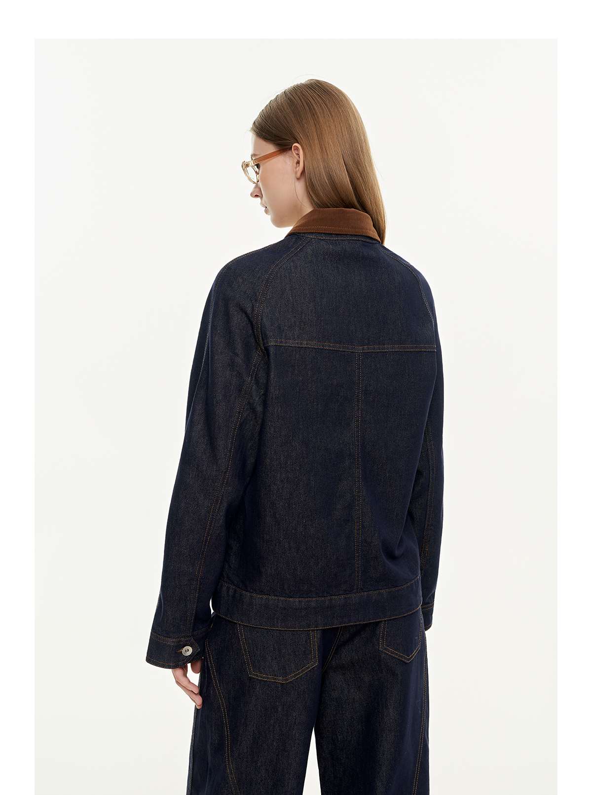 Moodberry American Retro Denim Jacket for Women, Autum New Style, Contrasting Color Lapel, Versatile Casual Top