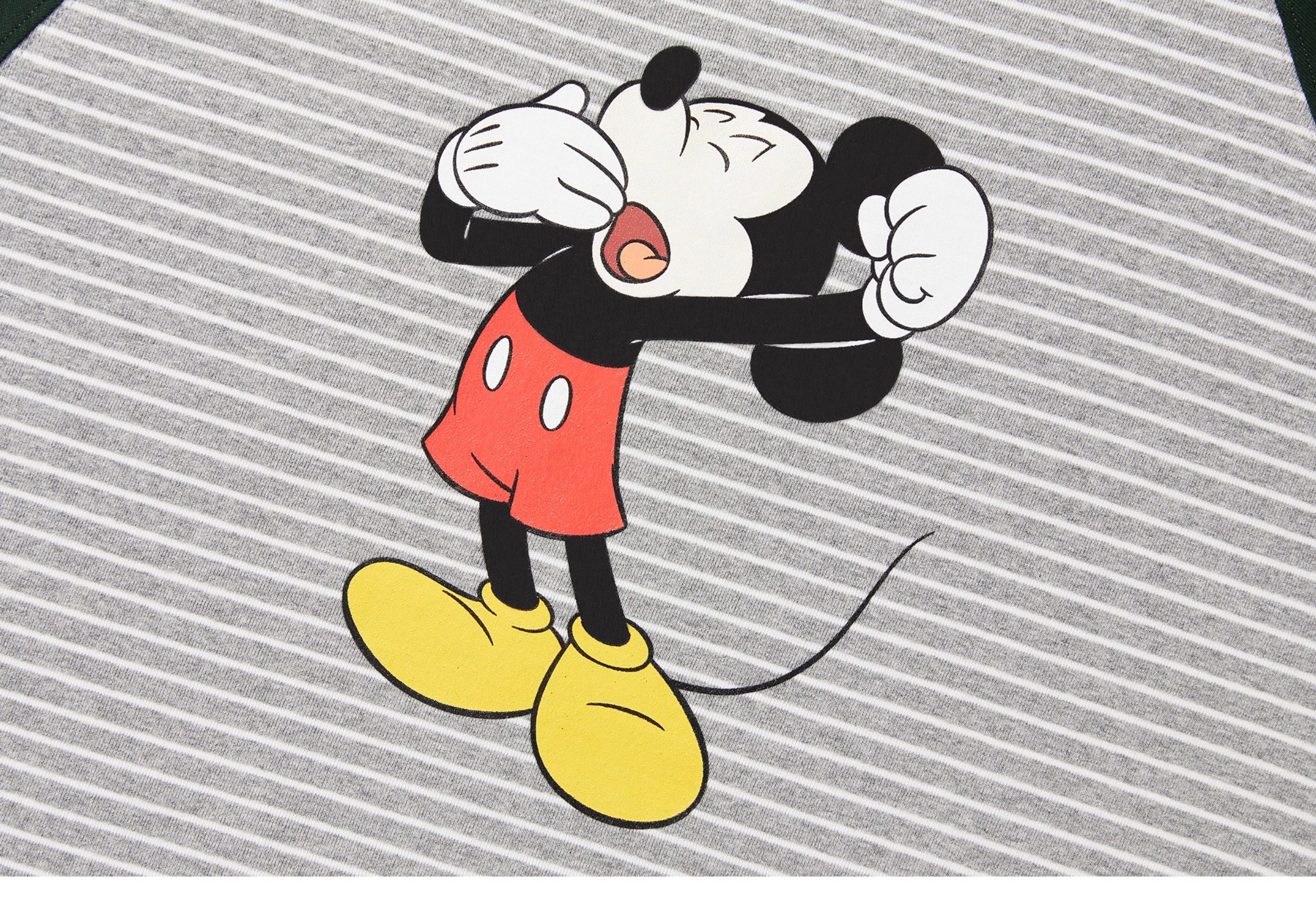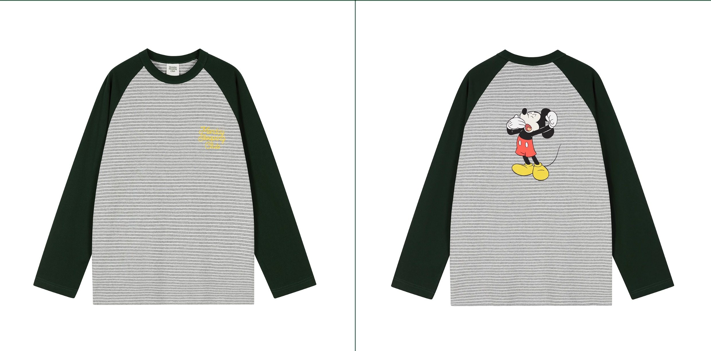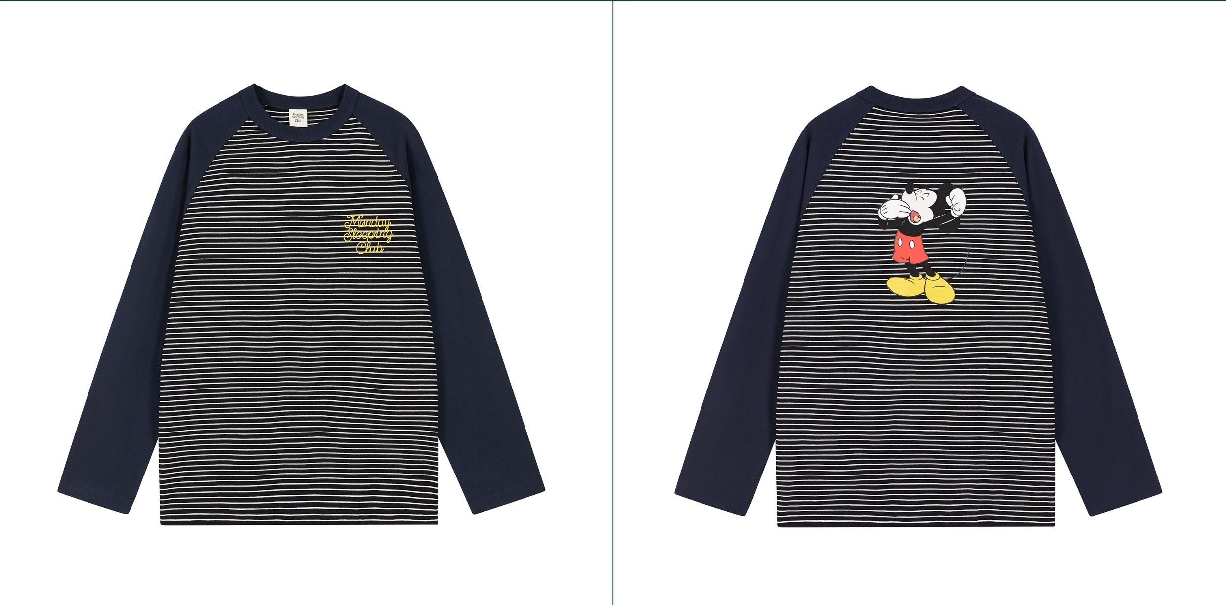 Mondaysleepingclub&Disney Collaboration Series "Sleepy Mickey" Striped Raglan Long-Sleeve T-Shirt