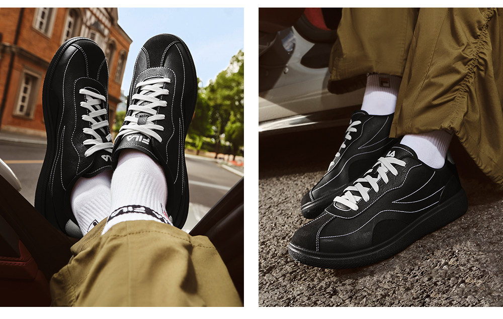 Star Ridge Shoes | Fila Men's Thin-Soled Canvas Shoes, Lightweight Sports Sneakers, White Shoes, Black Casual Shoes