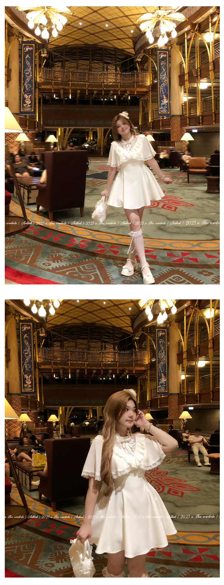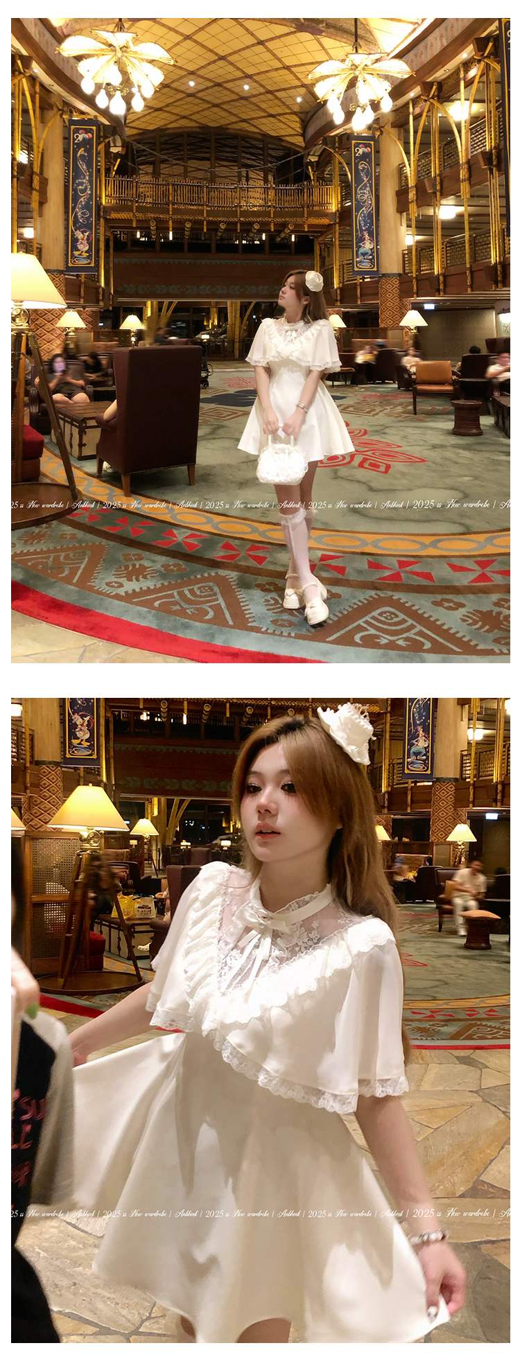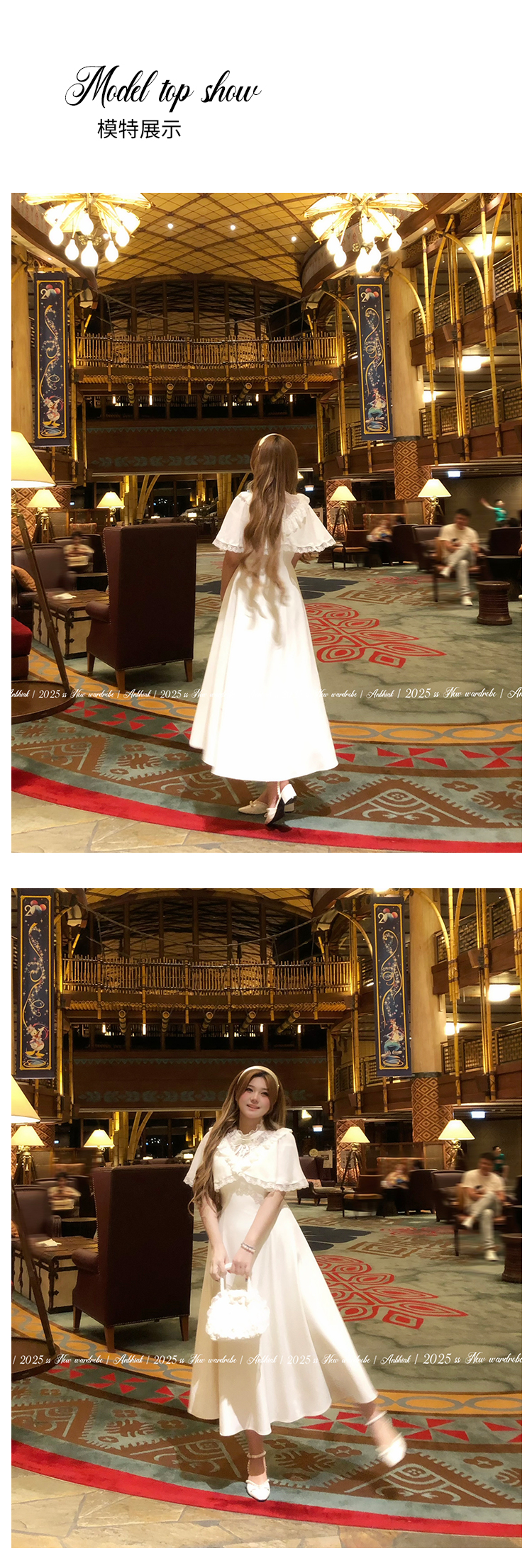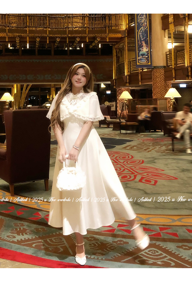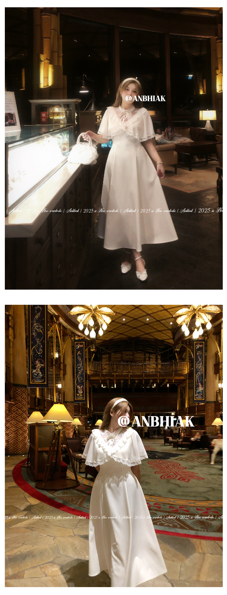 Annie's Sweet Style Cape Dress with Ribbon Knot, Summer New Plus-Size Princess Dress for Women