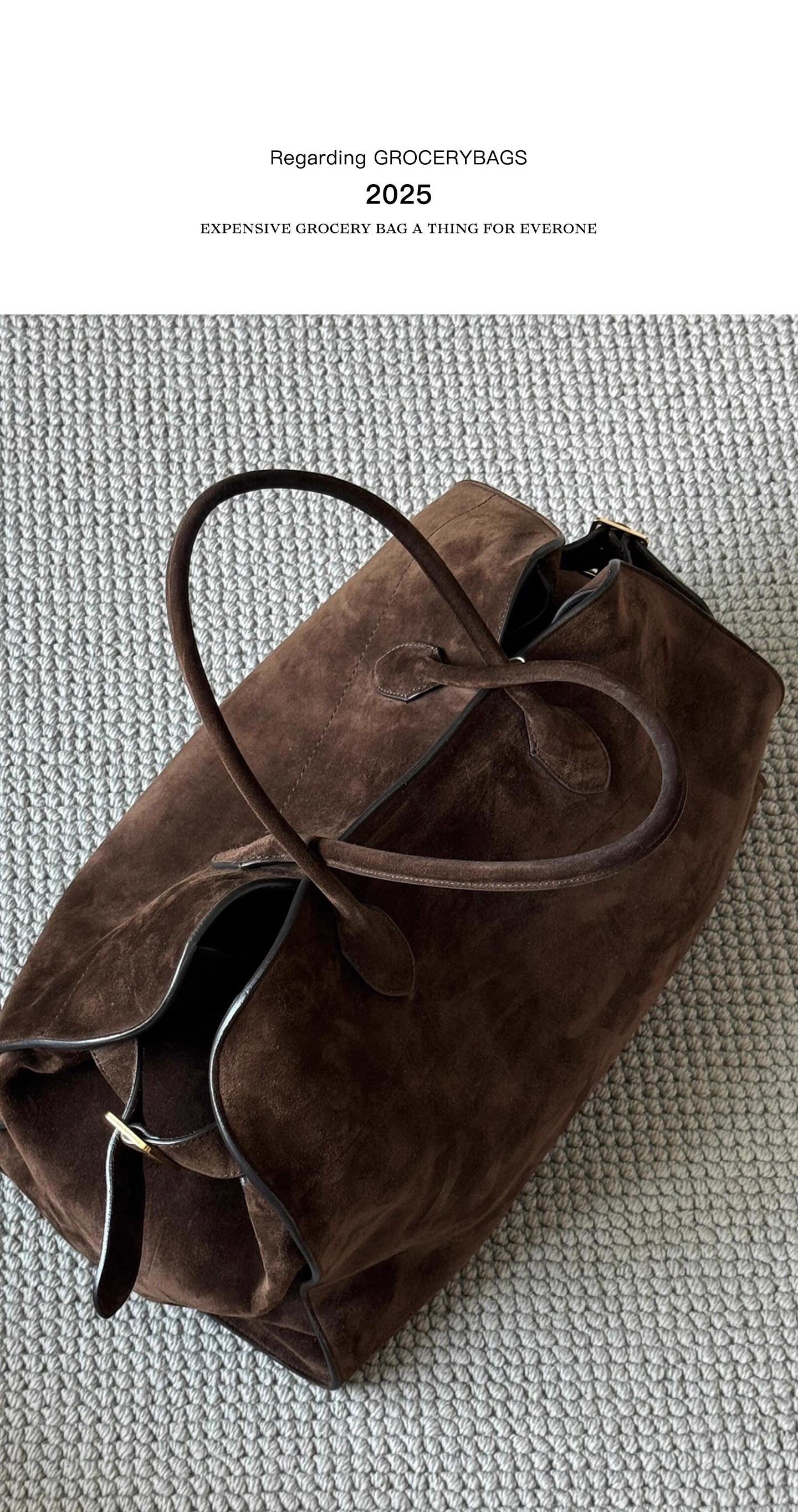 【Kendall Jenner Style】Row-Style Suede Tote Bag, First-Layer Genuine Leather Handbag, Brown Suede Large Bag
