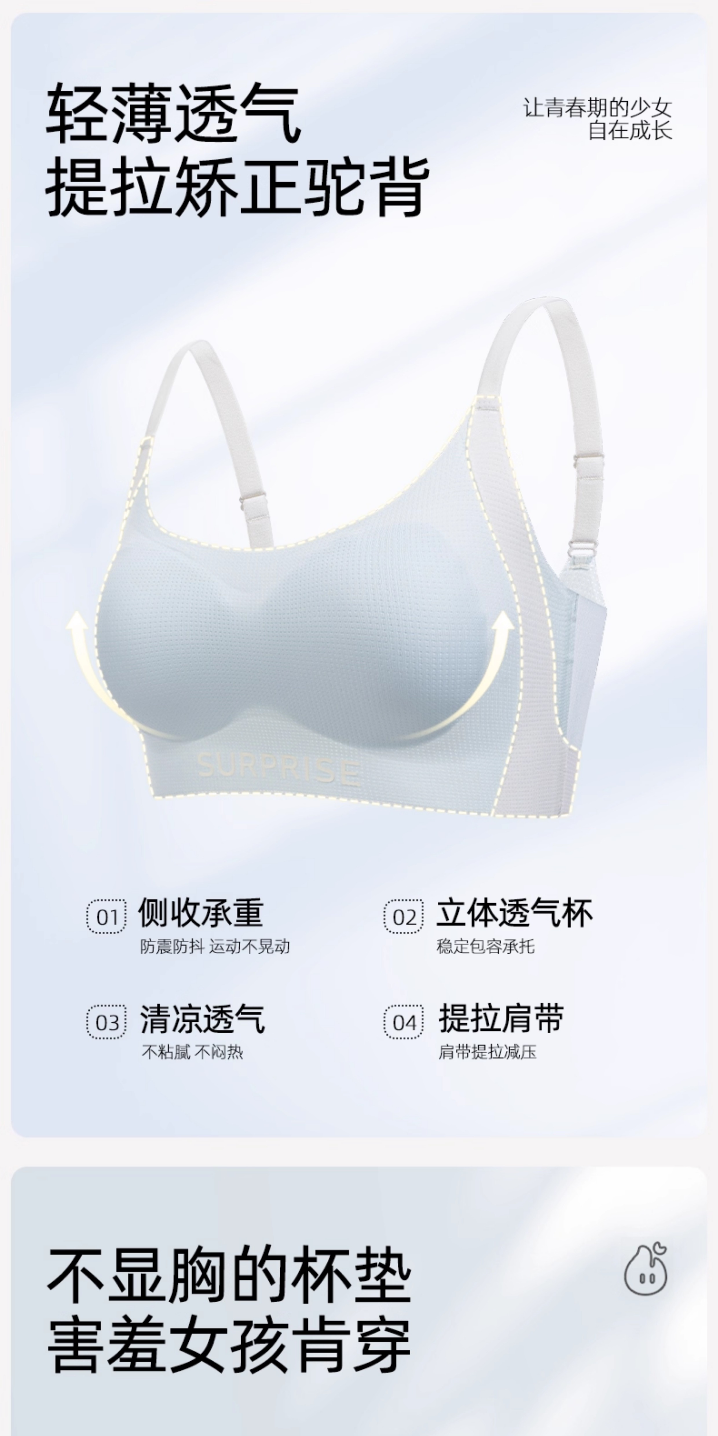 Underwear for Young Girls in Middle and High School, 15-Year-Old Girls' Developmental Stage Tank Tops, Teenage Second-Stage High School Student Bras